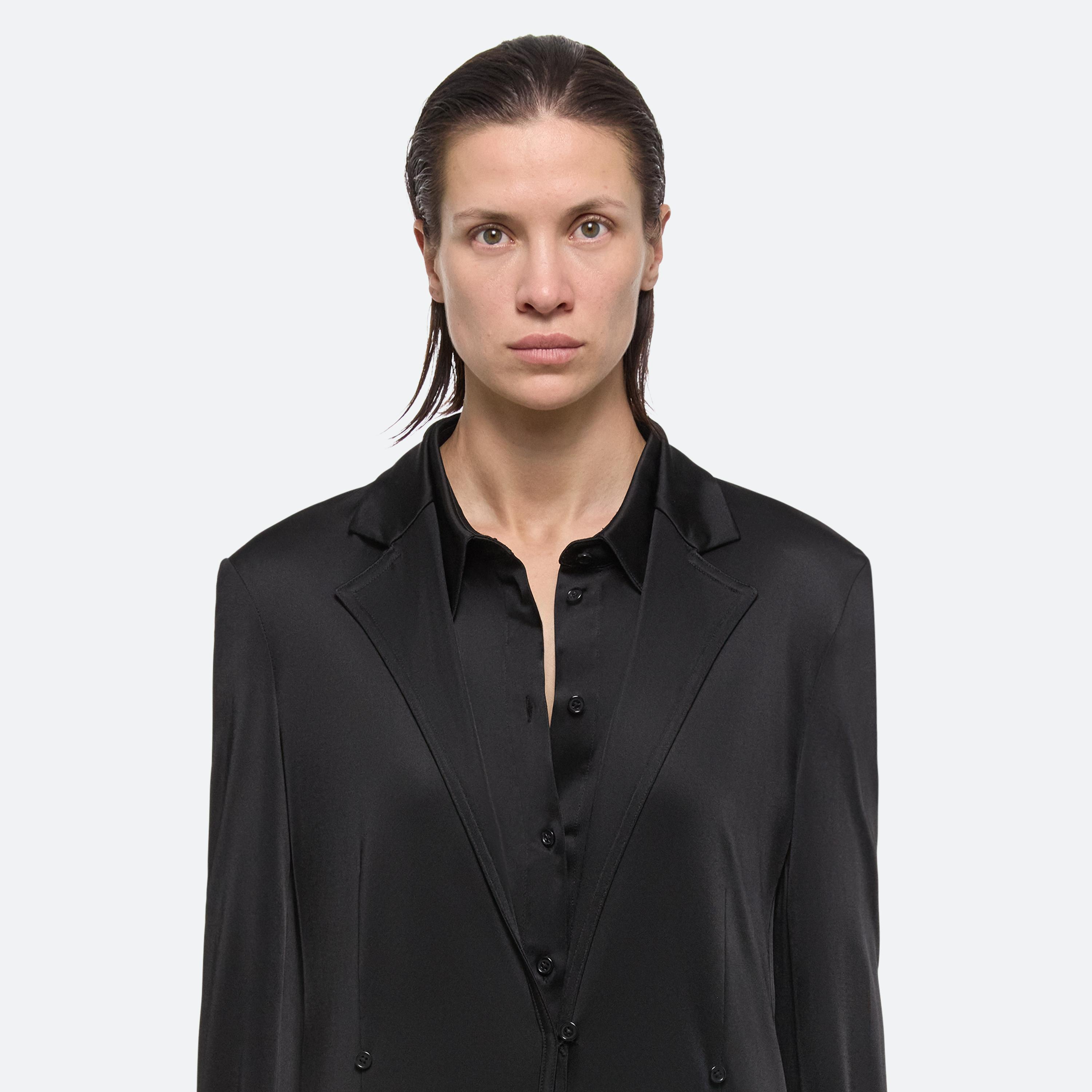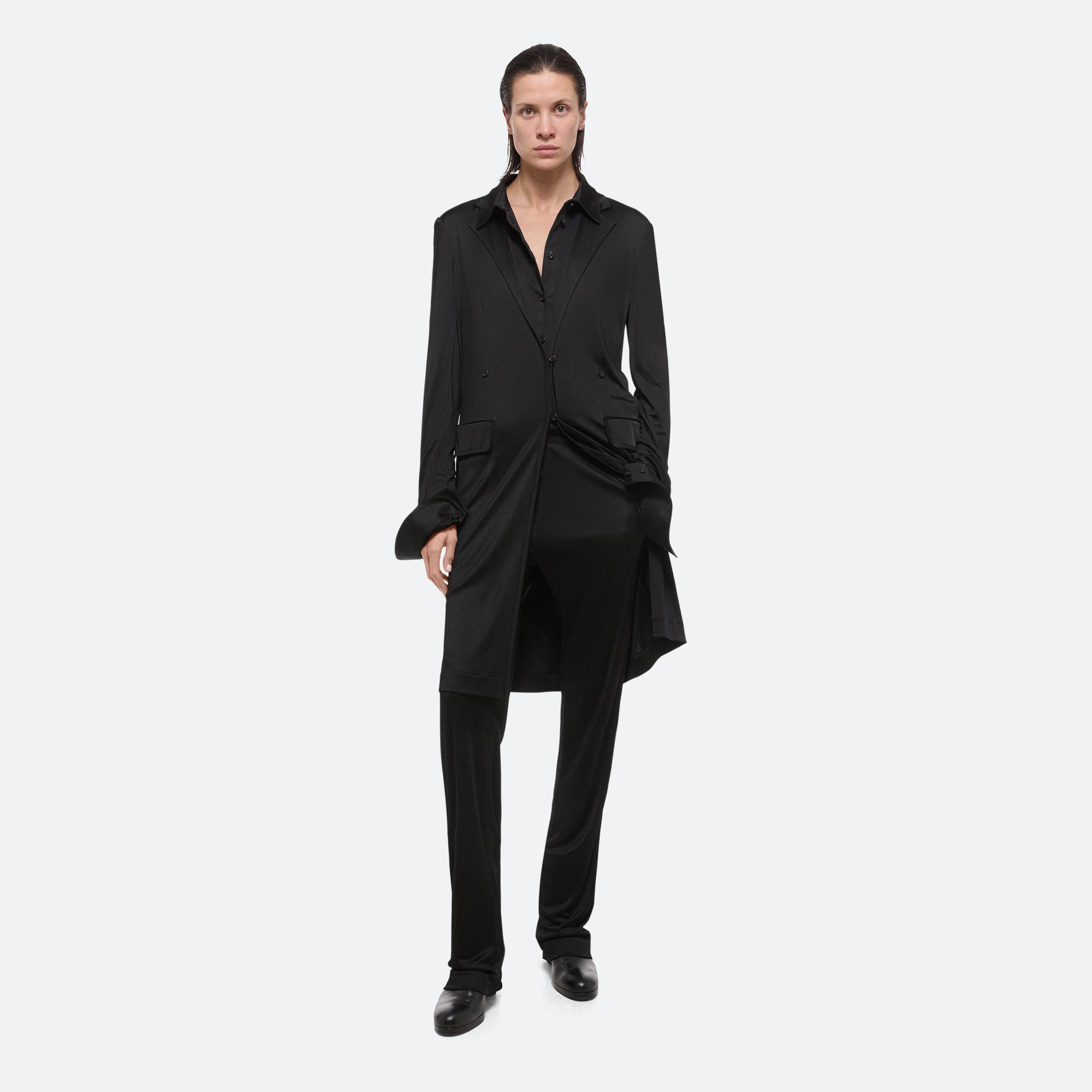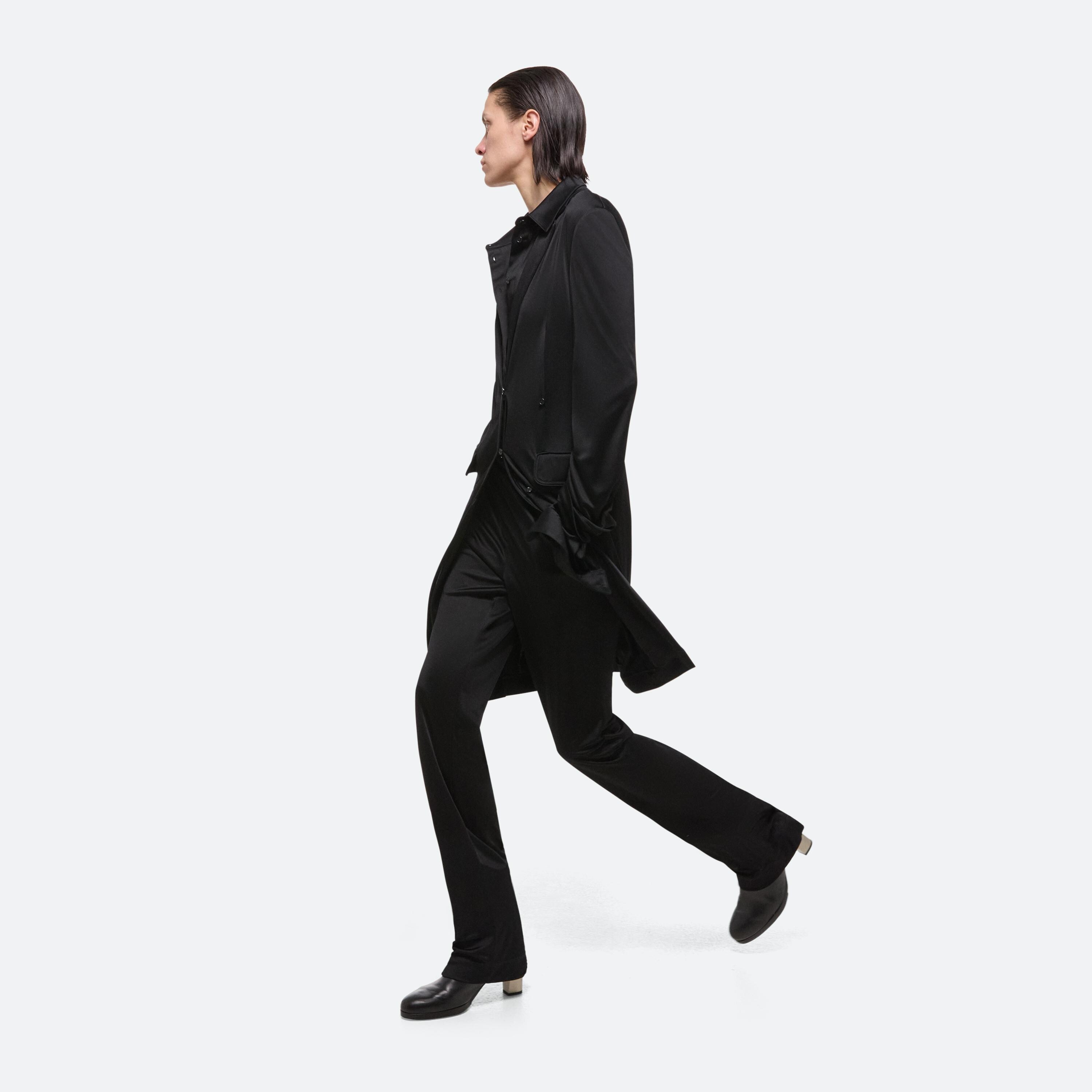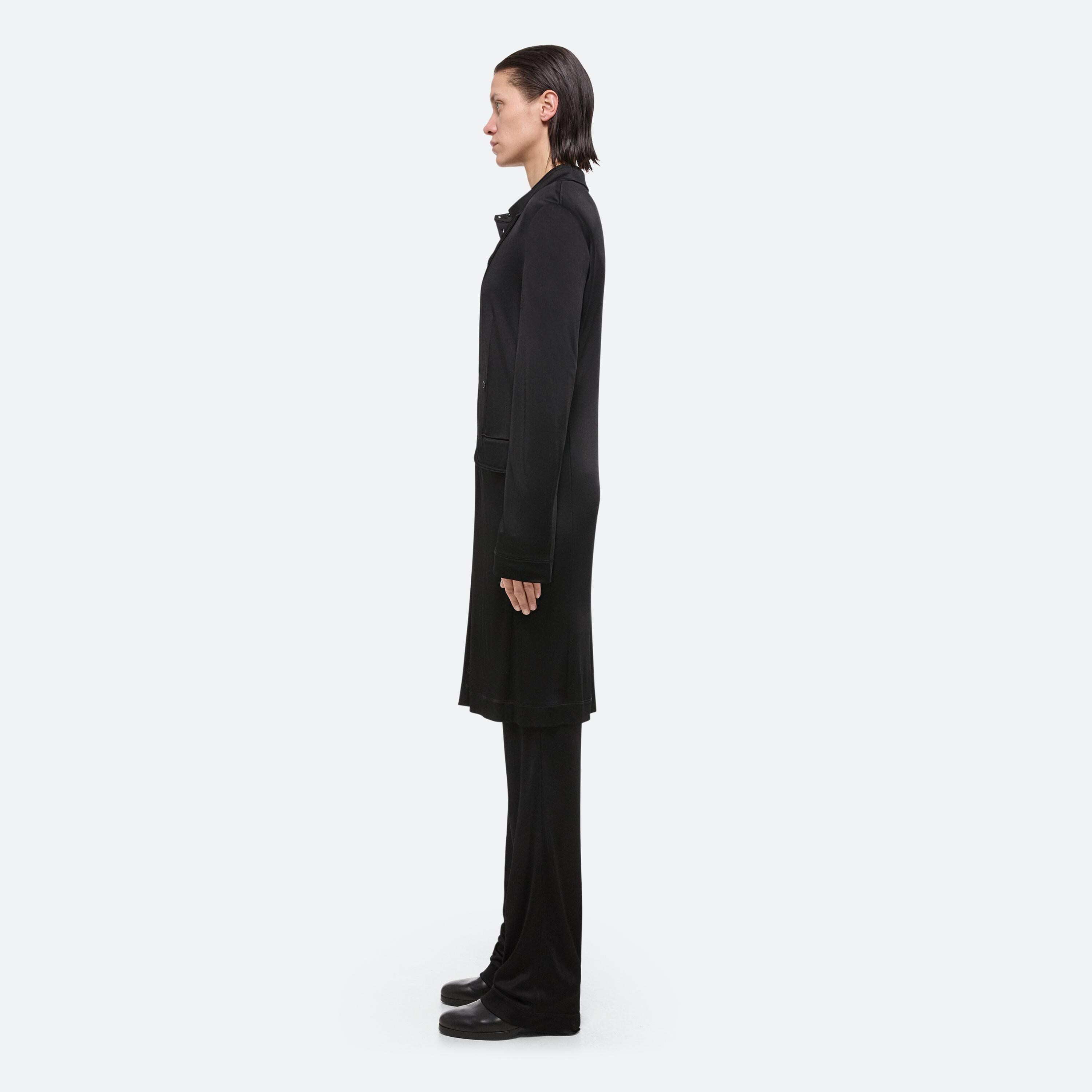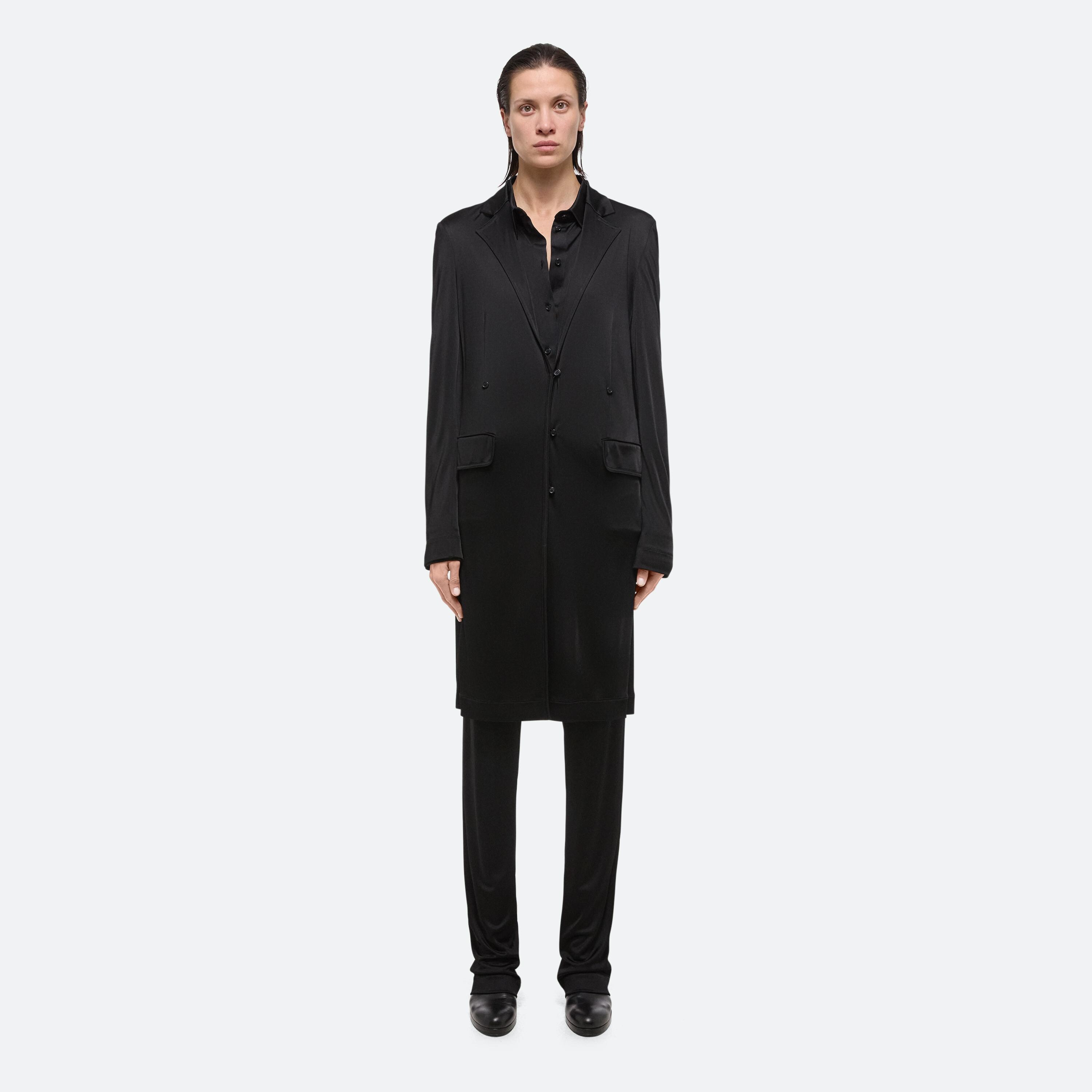 Classic coat in fluid viscose jersey. This coat has multiple buttons to be worn single or double-breasted.