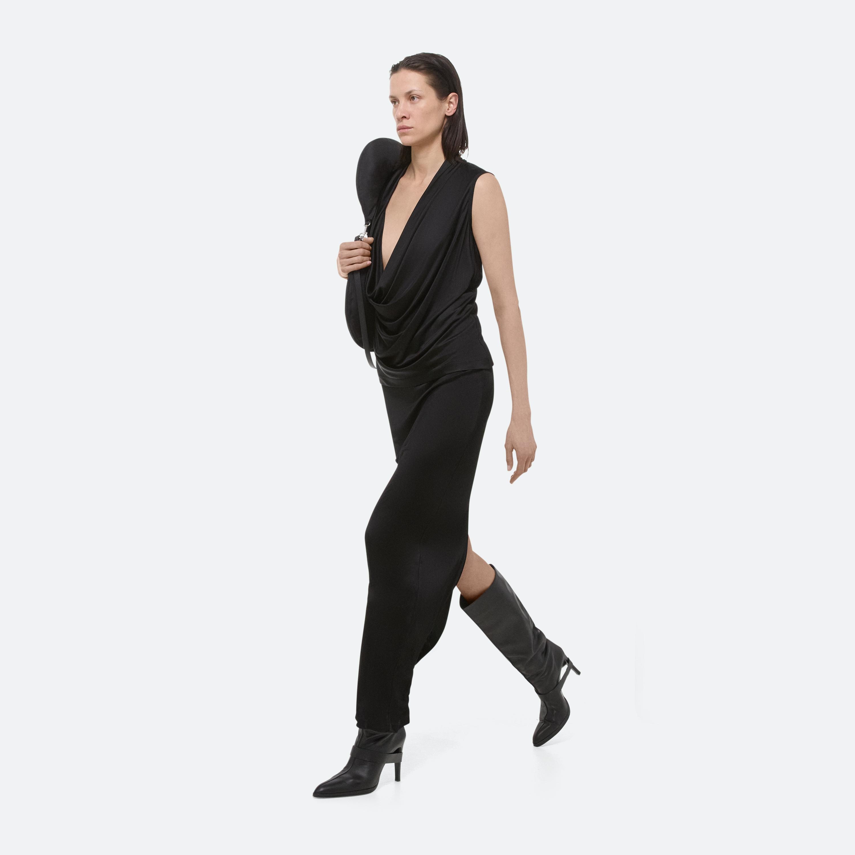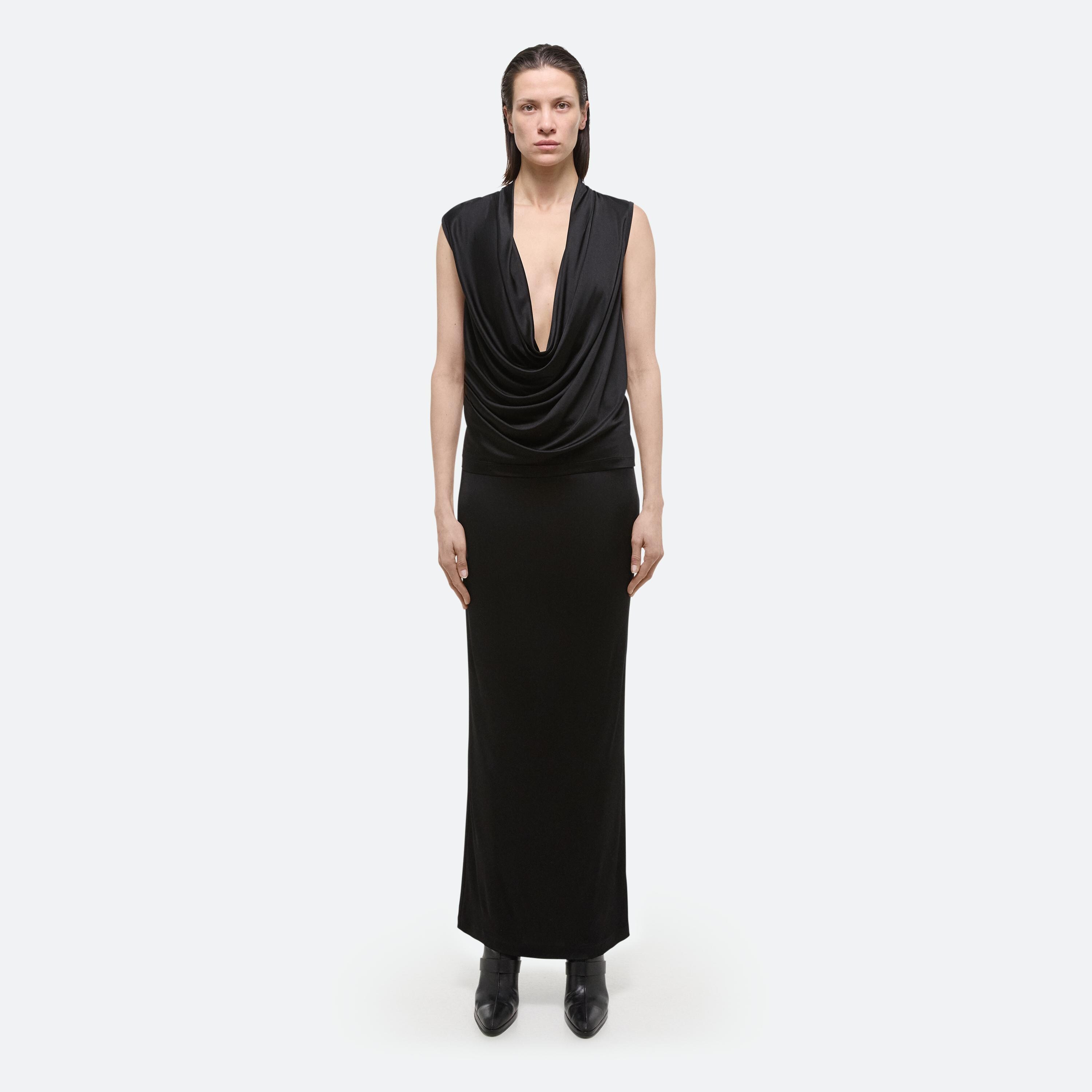 Maxi skirt in fluid Italian viscose jersey. Cut in a refined column shape with a high slit at the back.