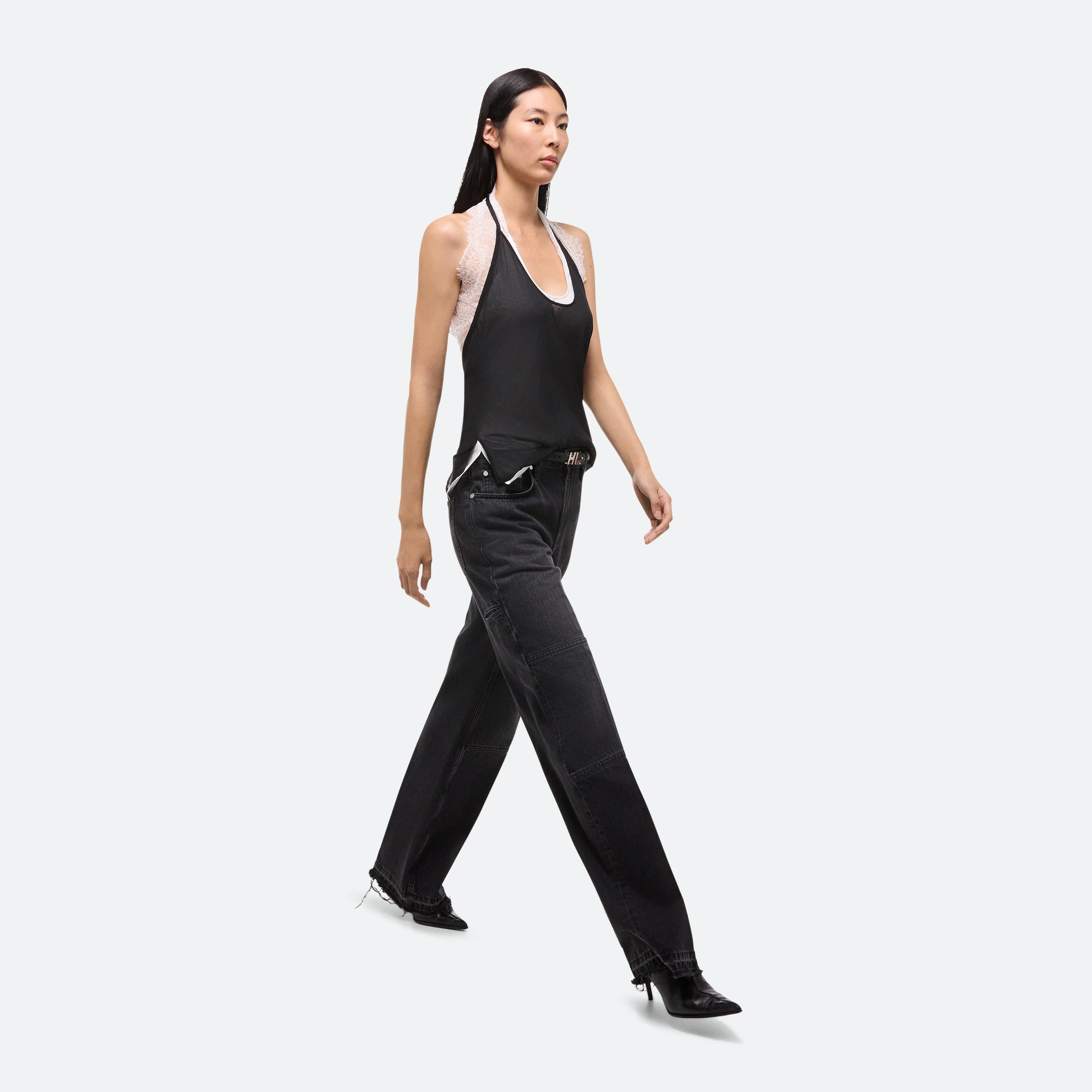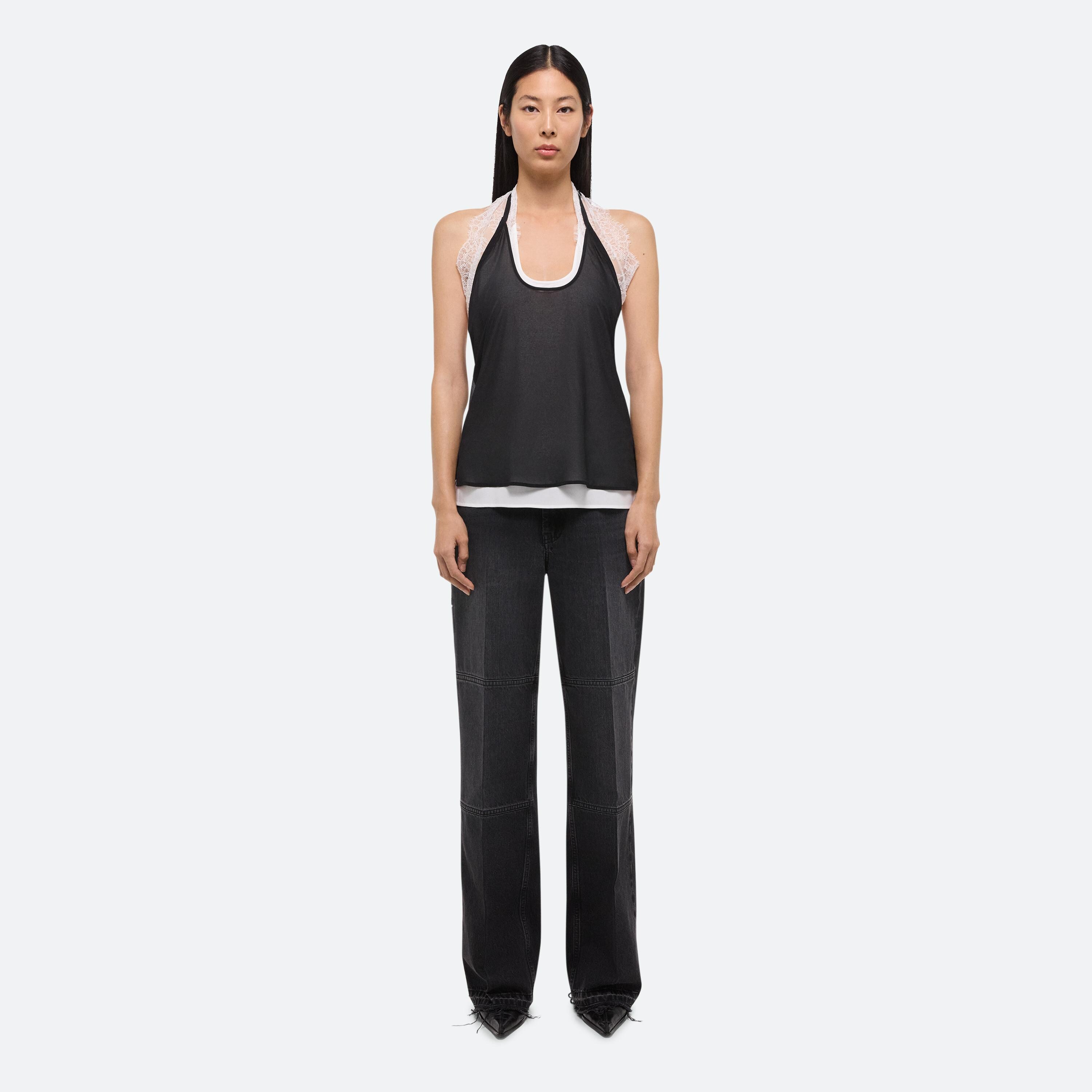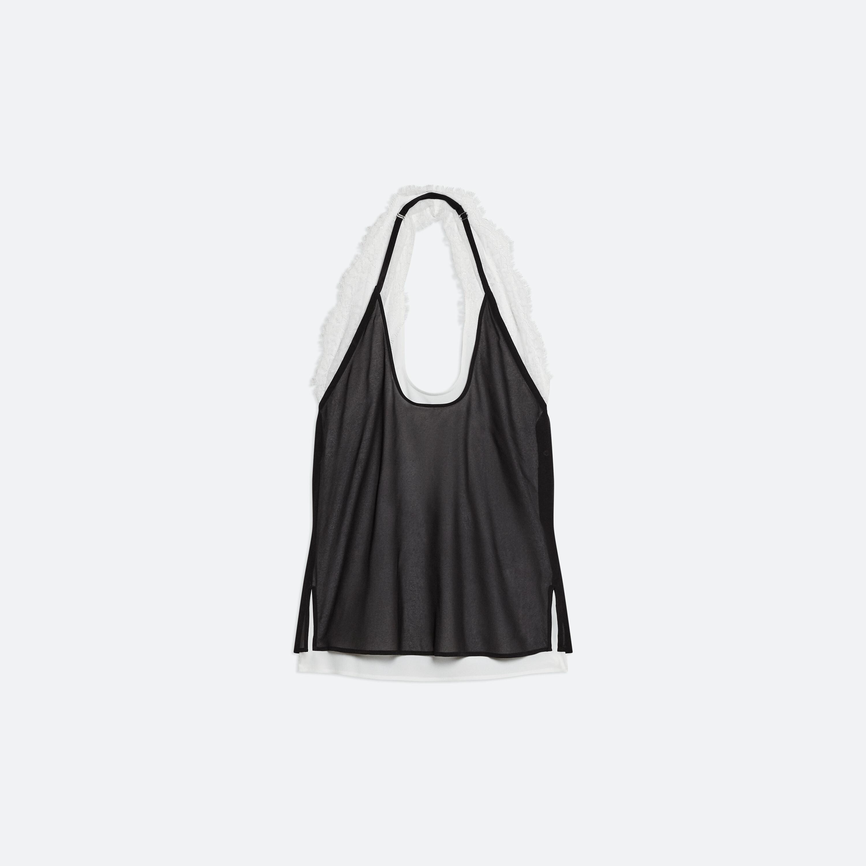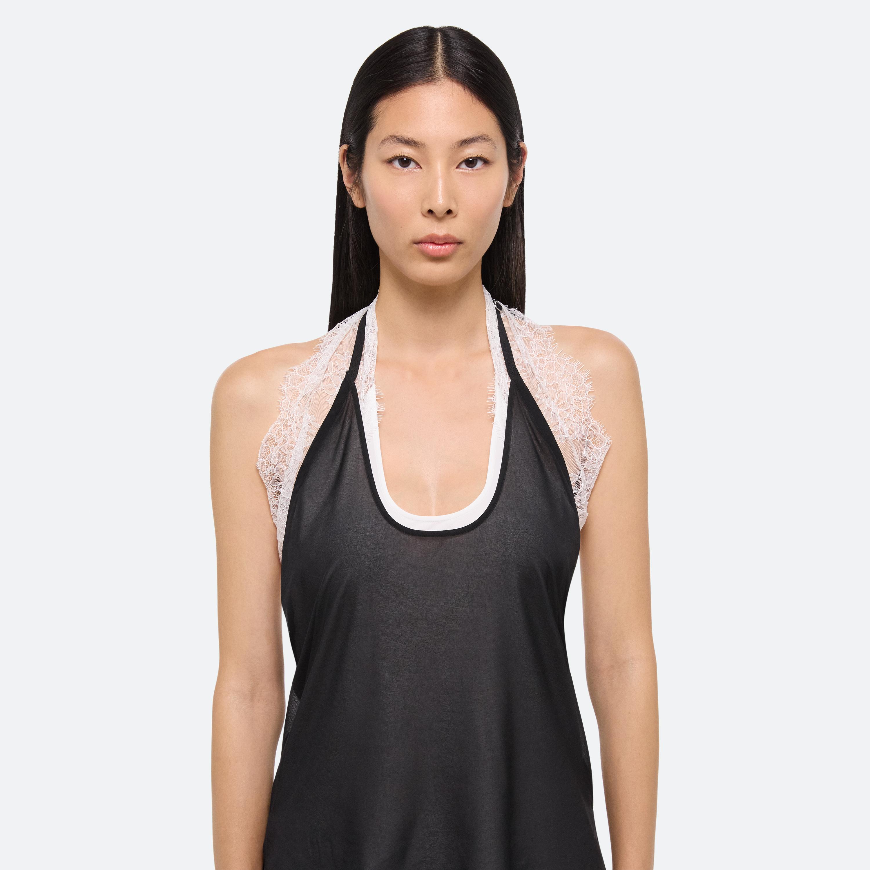 Lace halter-neck top with a layered design. Wear the layers together for moments of sheer exposure, on their own, or layered with other pieces.