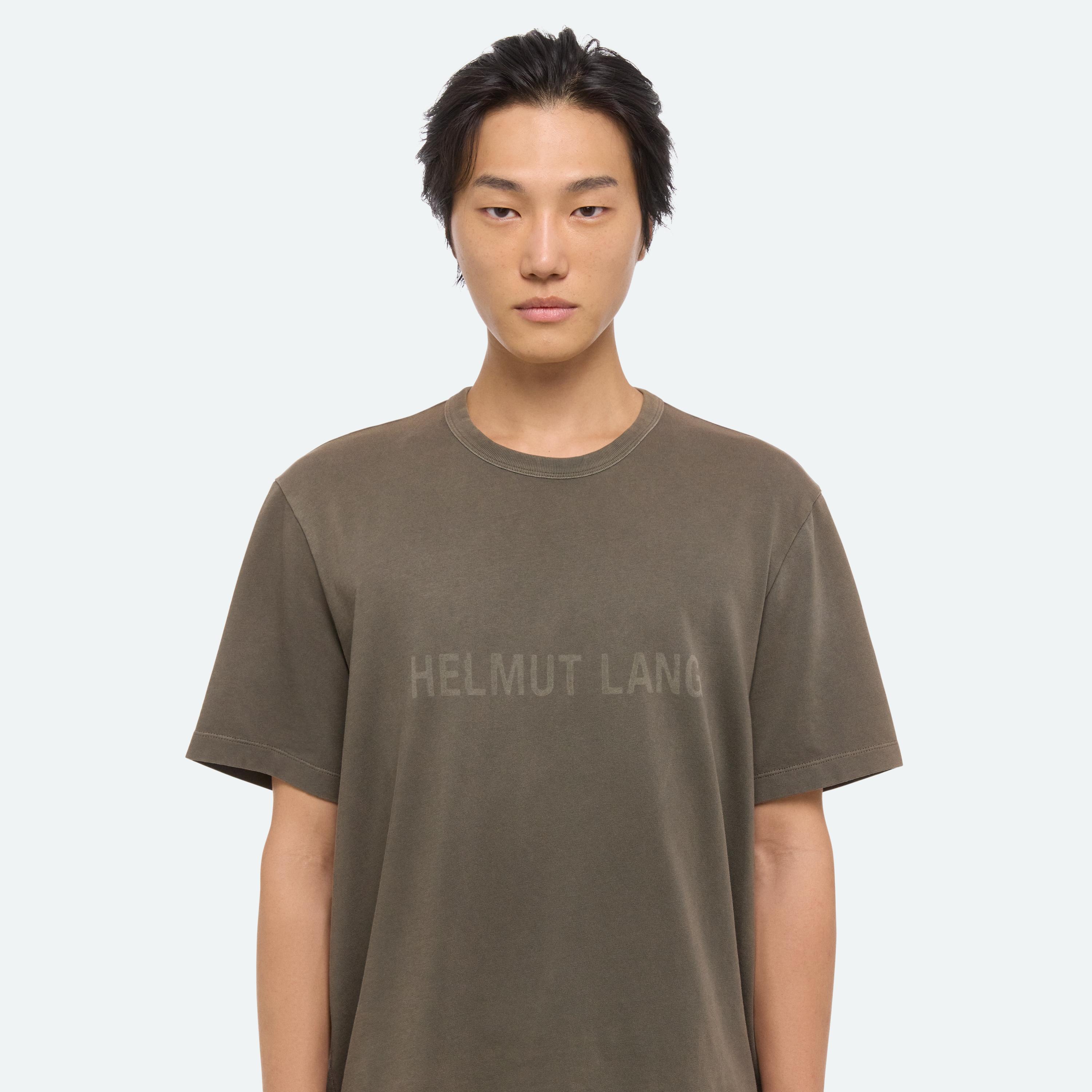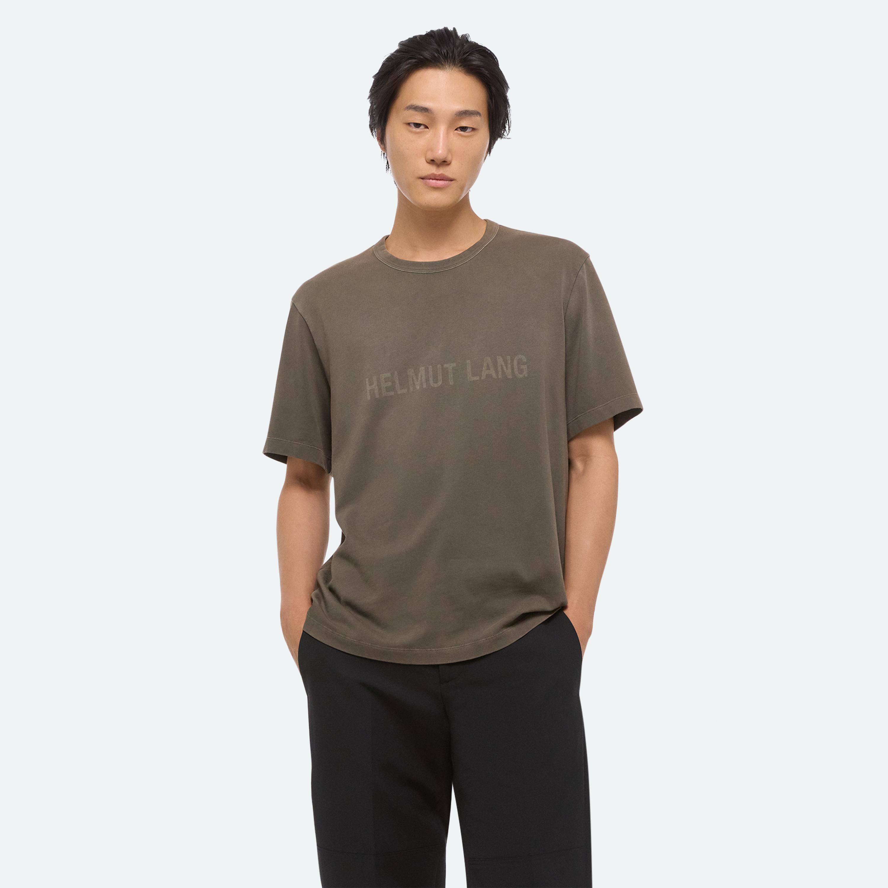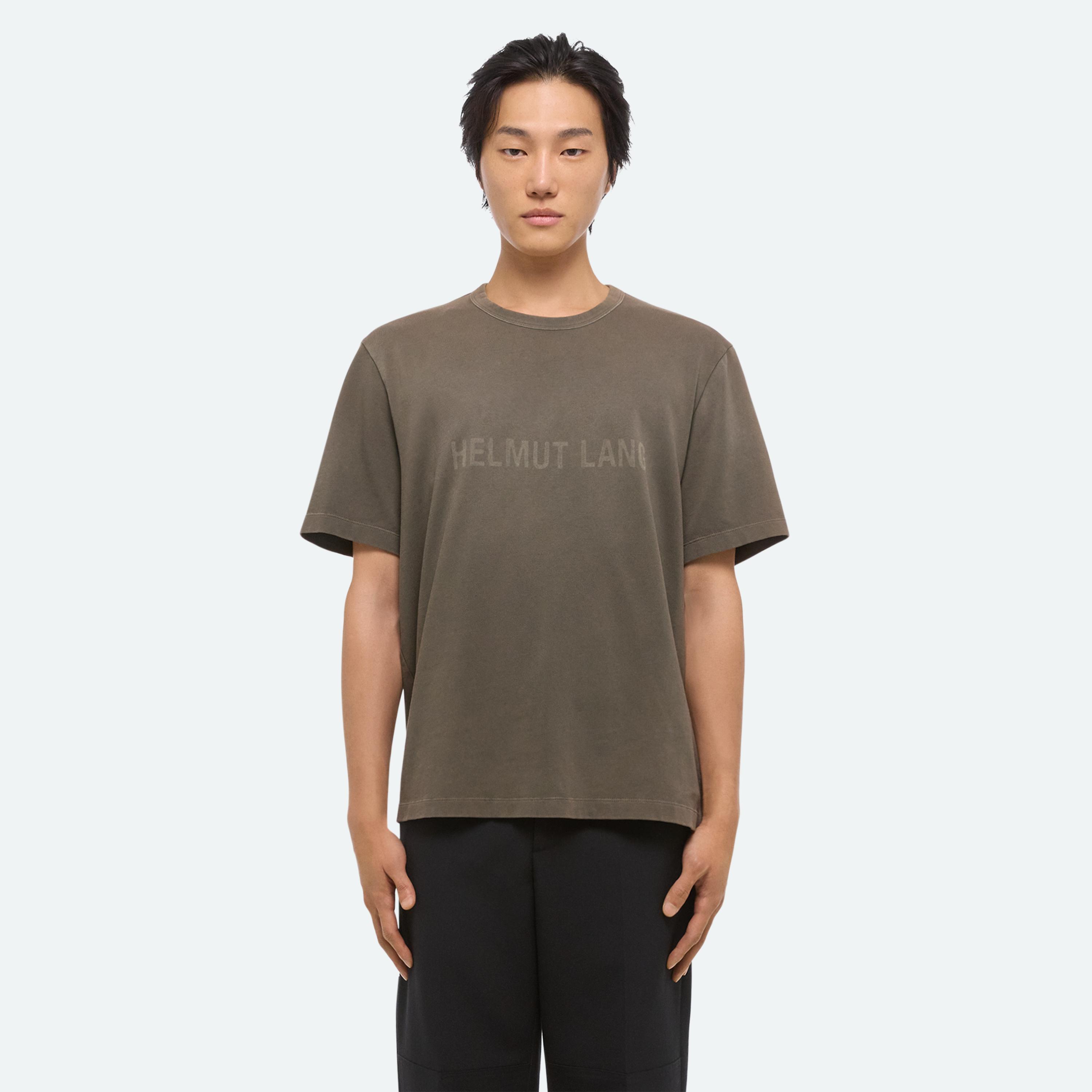 Relaxed-fit crewneck tee with laser-distressed logo detail on front. Finished with a garment dye process for a subtle ombre wash and vintage feel.