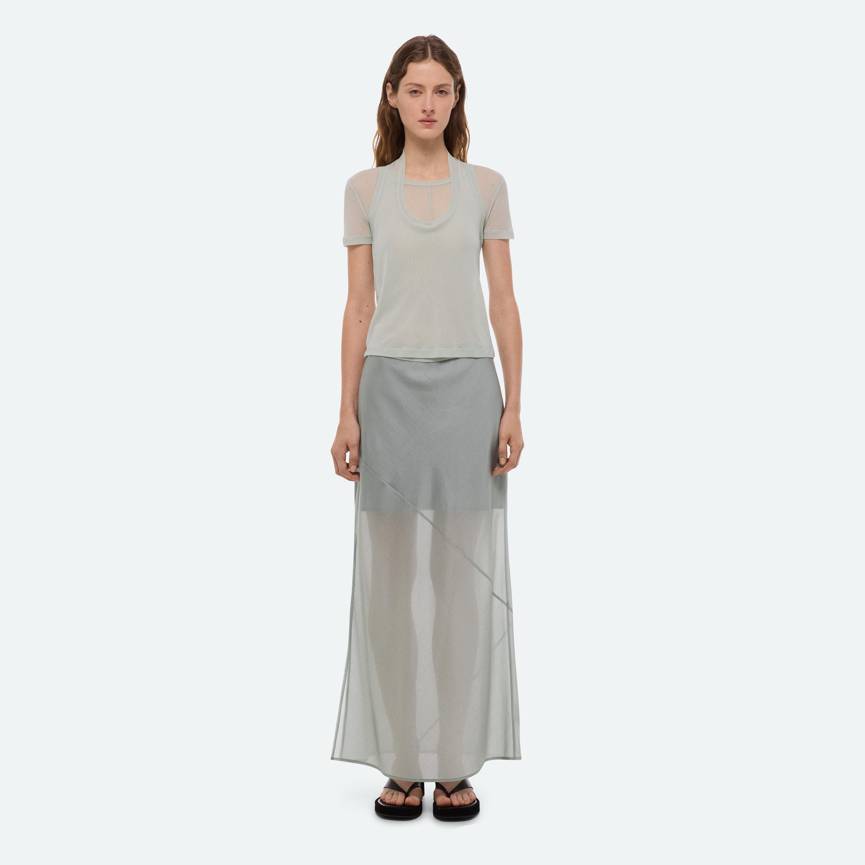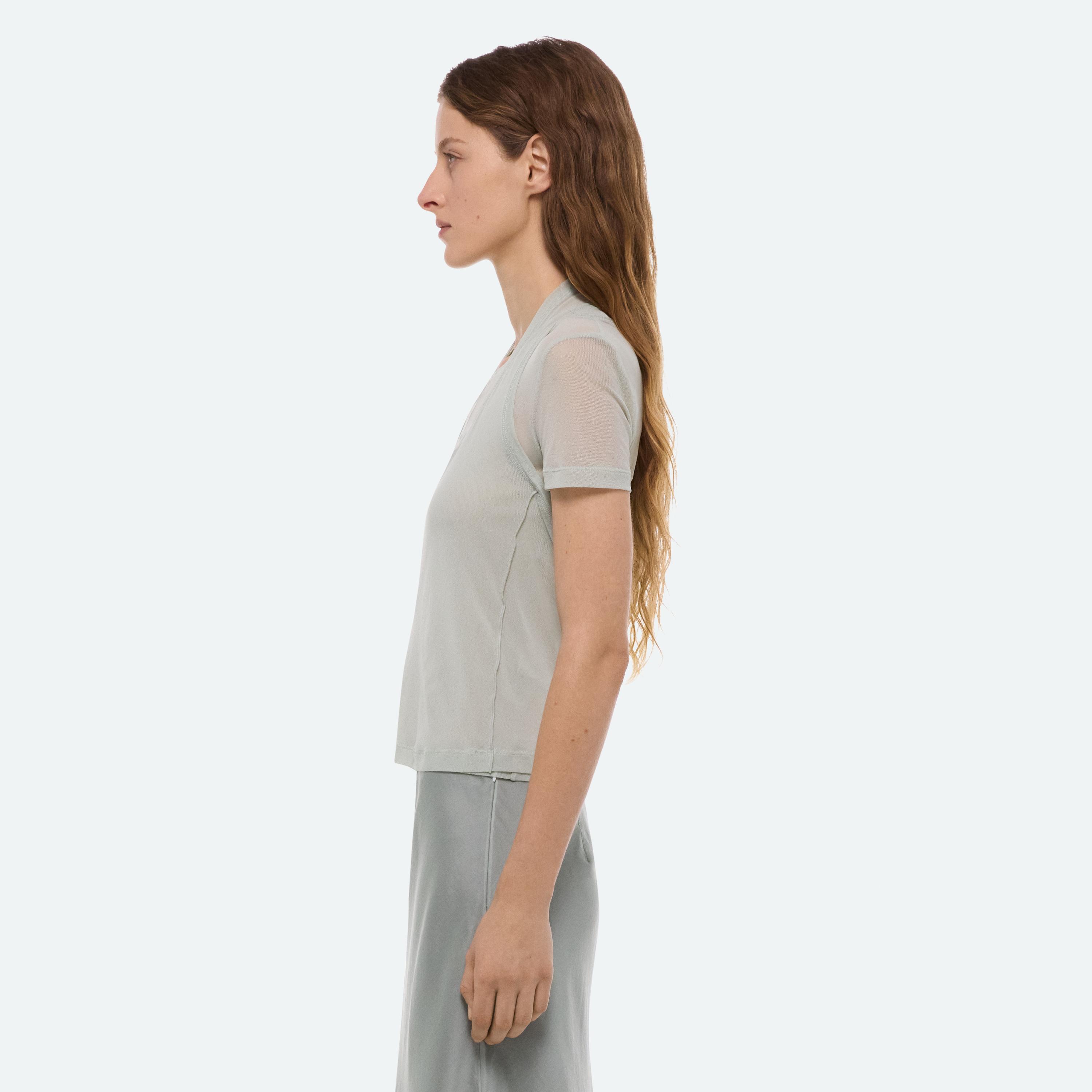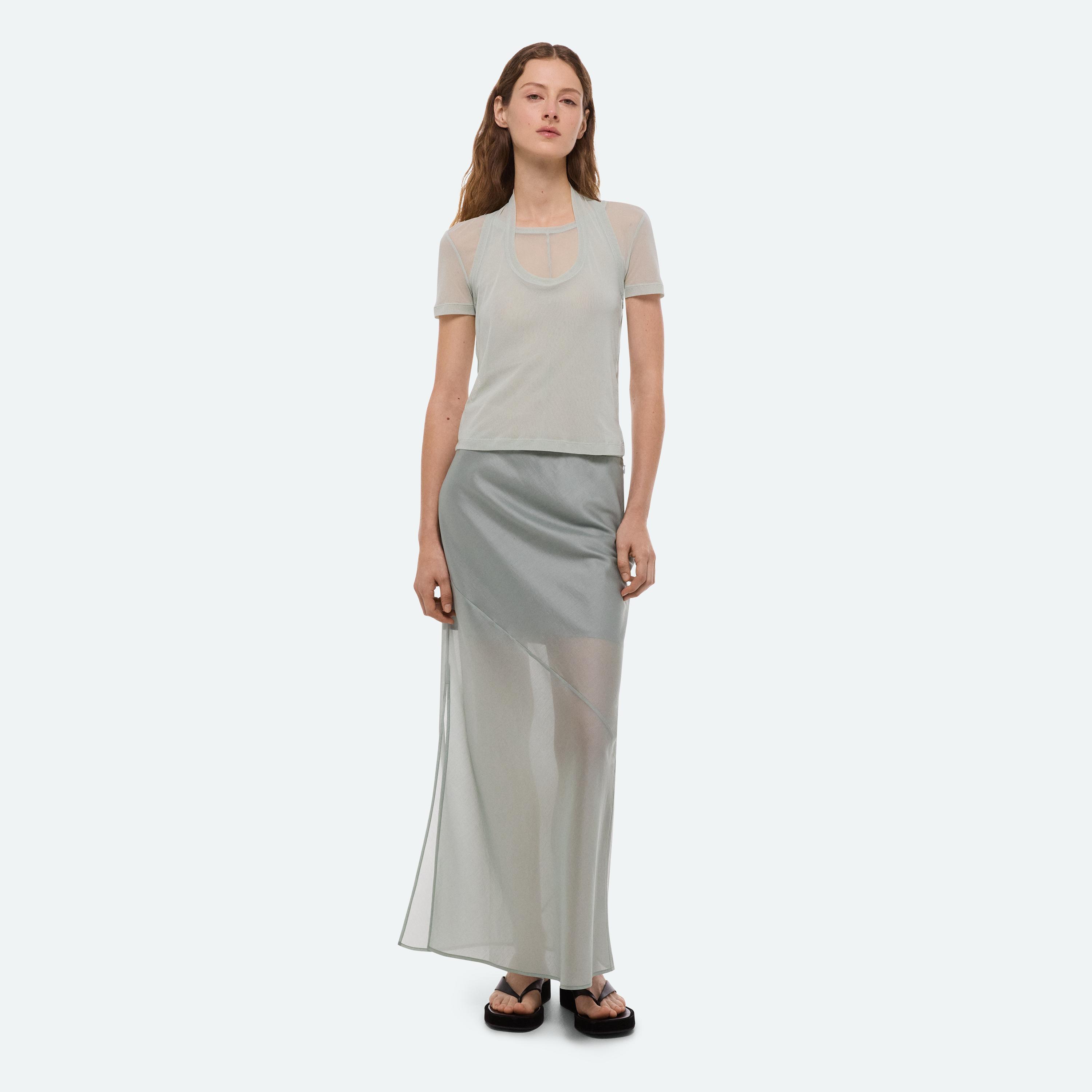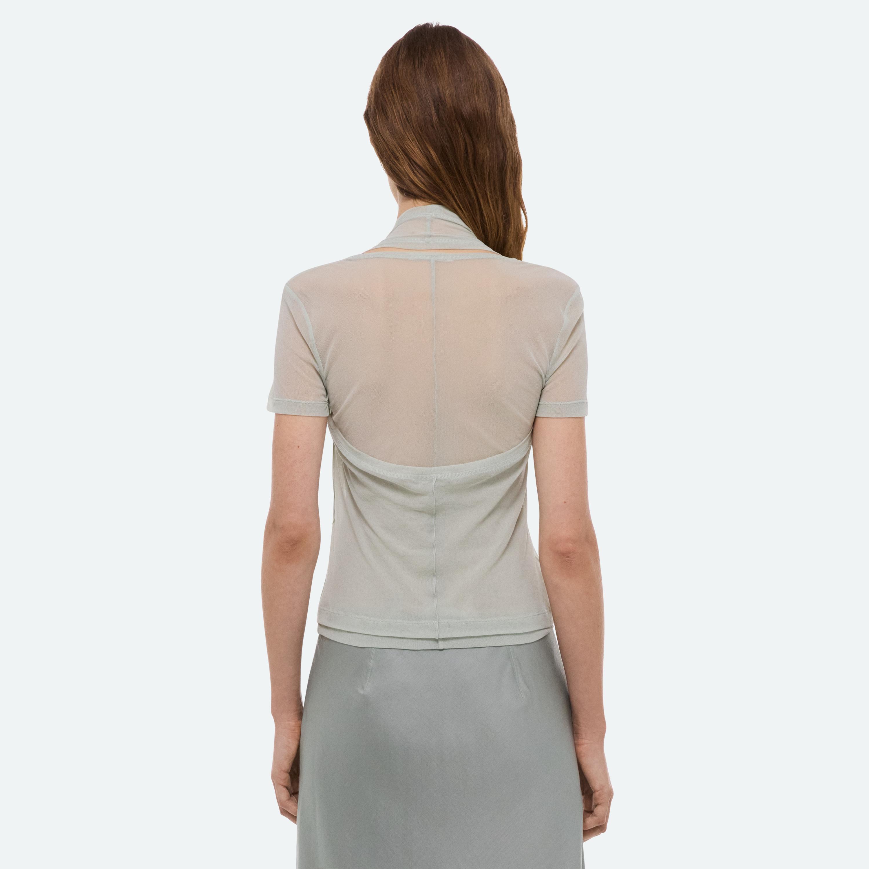 A sheer halterneck layered over a fitted mesh baby tee. Wear each piece on its own, or together for a look with contrasting sheer and opaque elements.