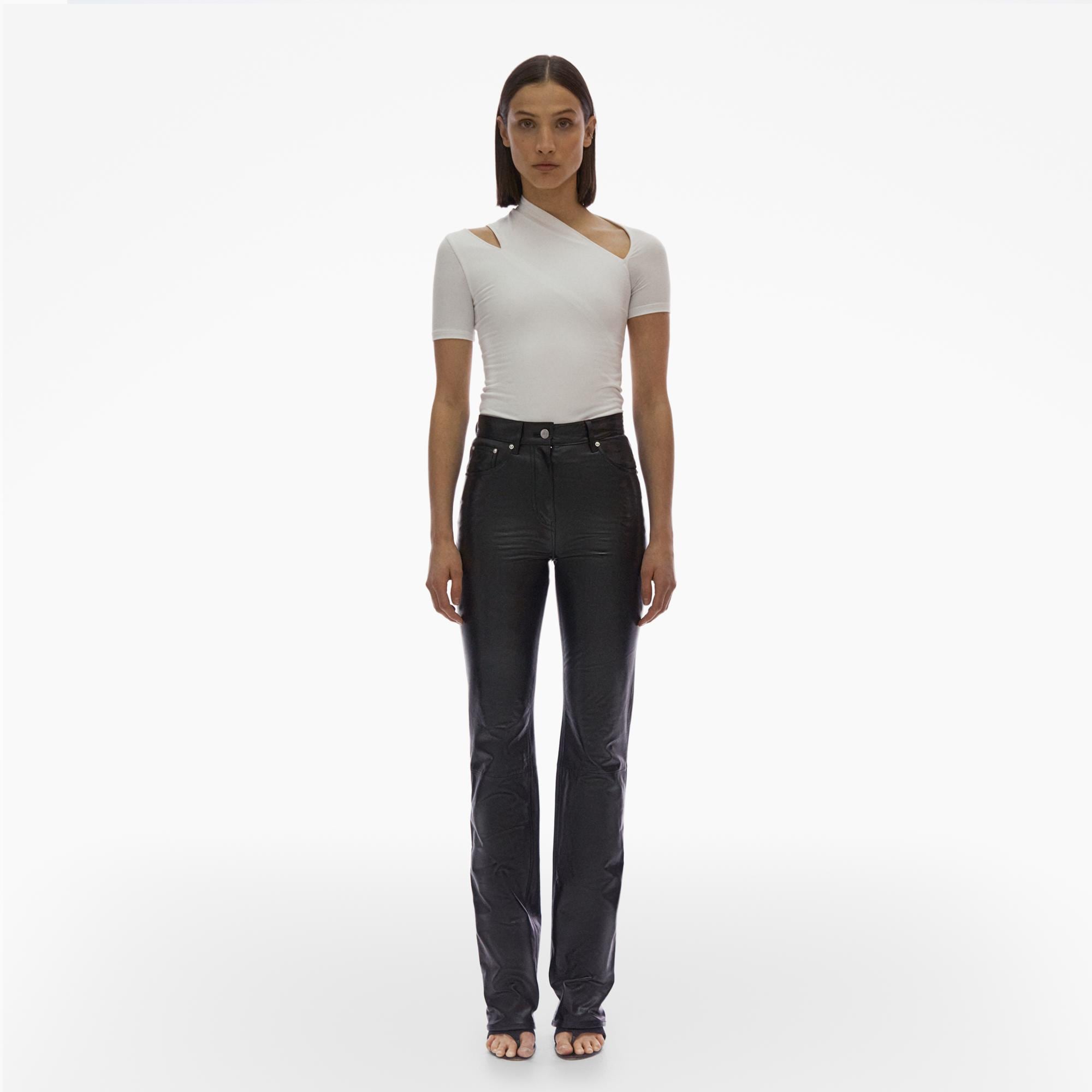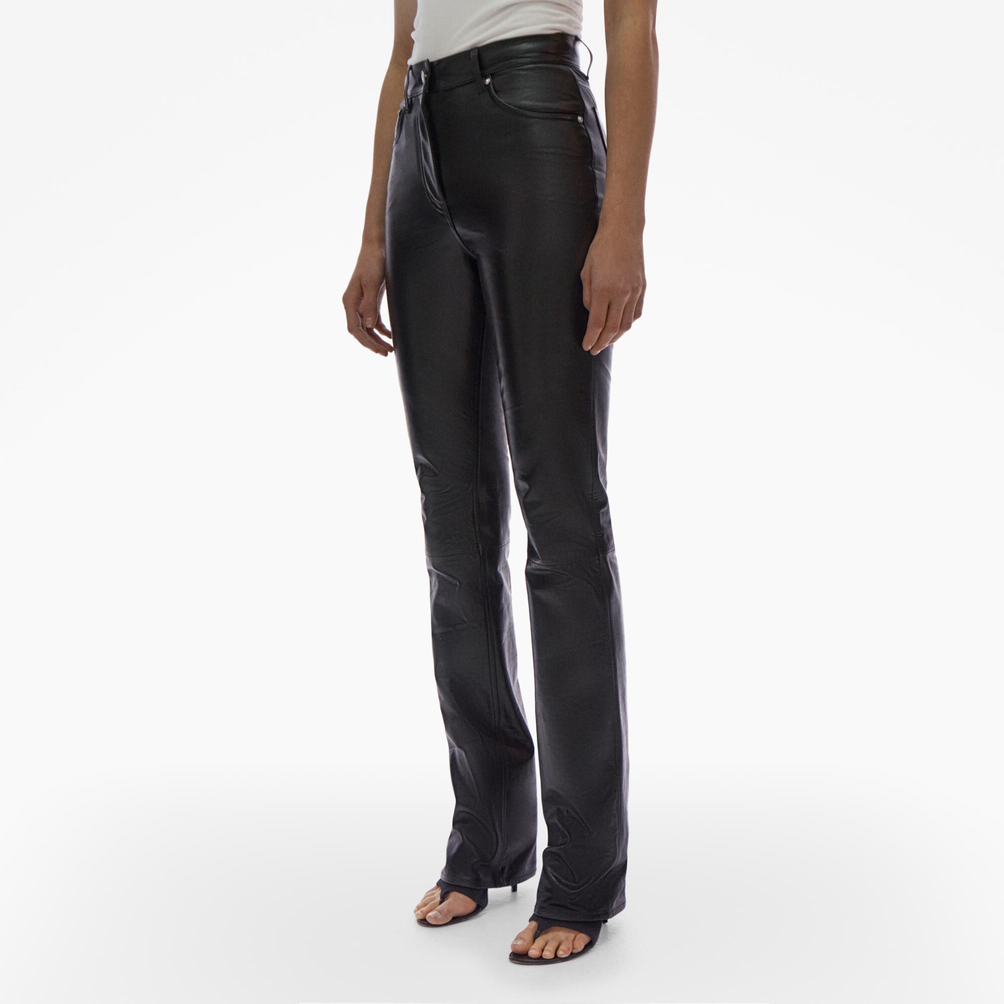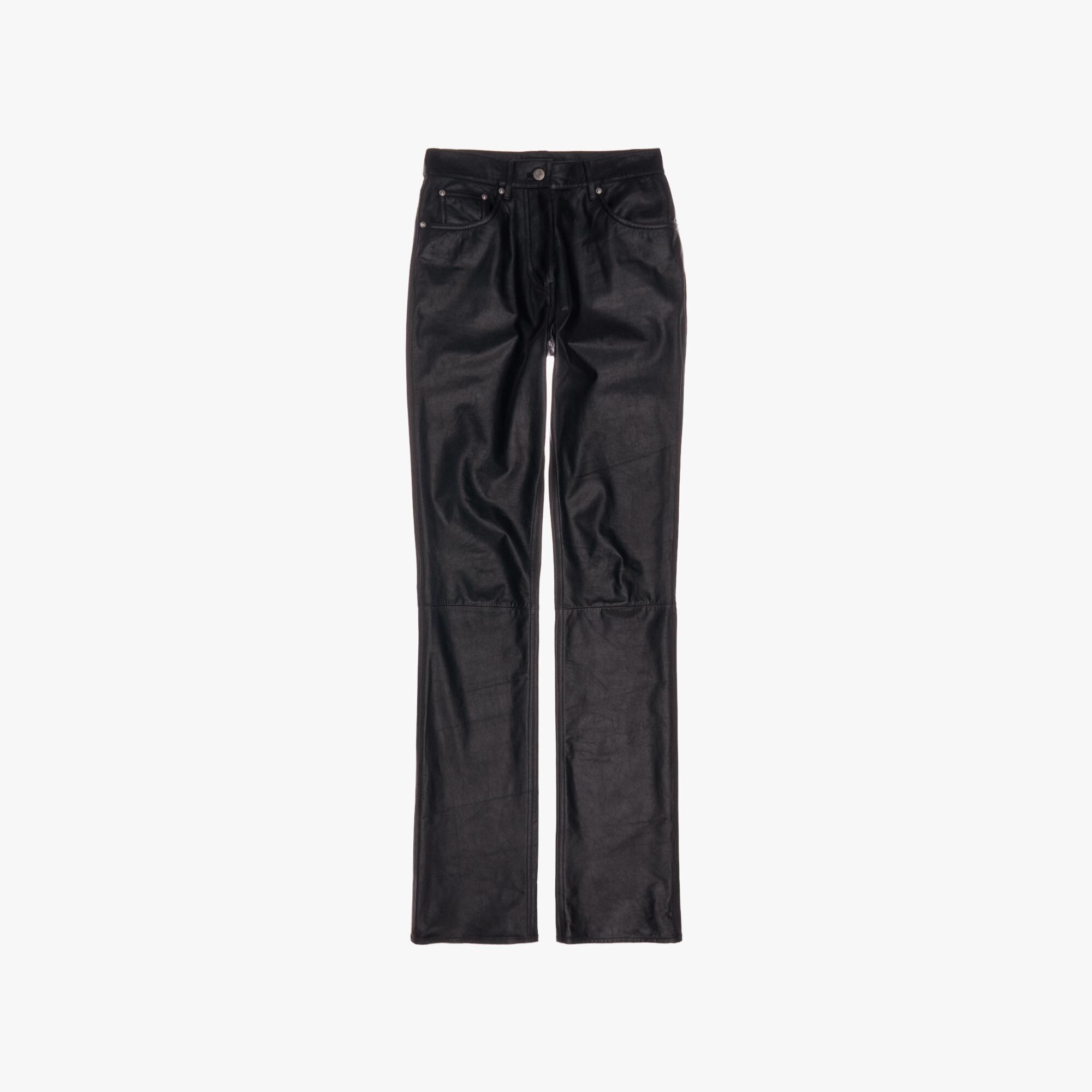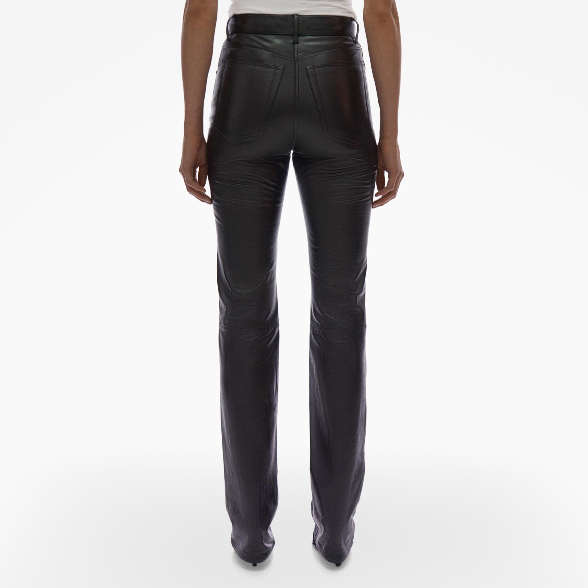 The Helmut Lang 5-Pocket Pant is a straight-leg pant in smooth leather with belt loops and zip fly and button closure.