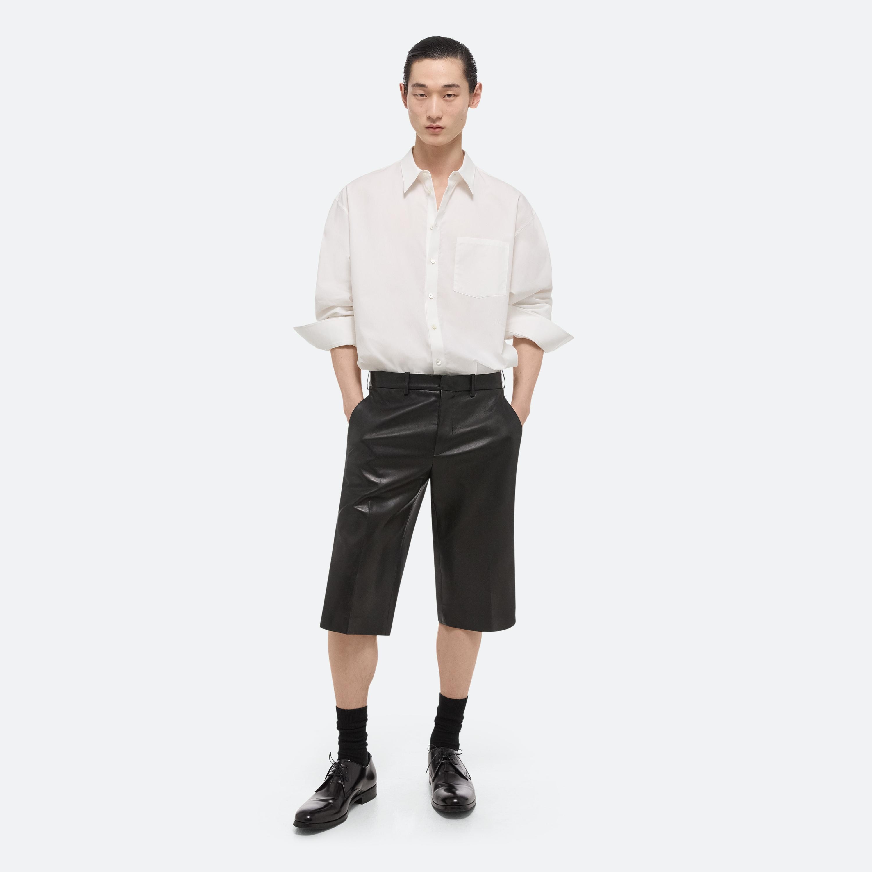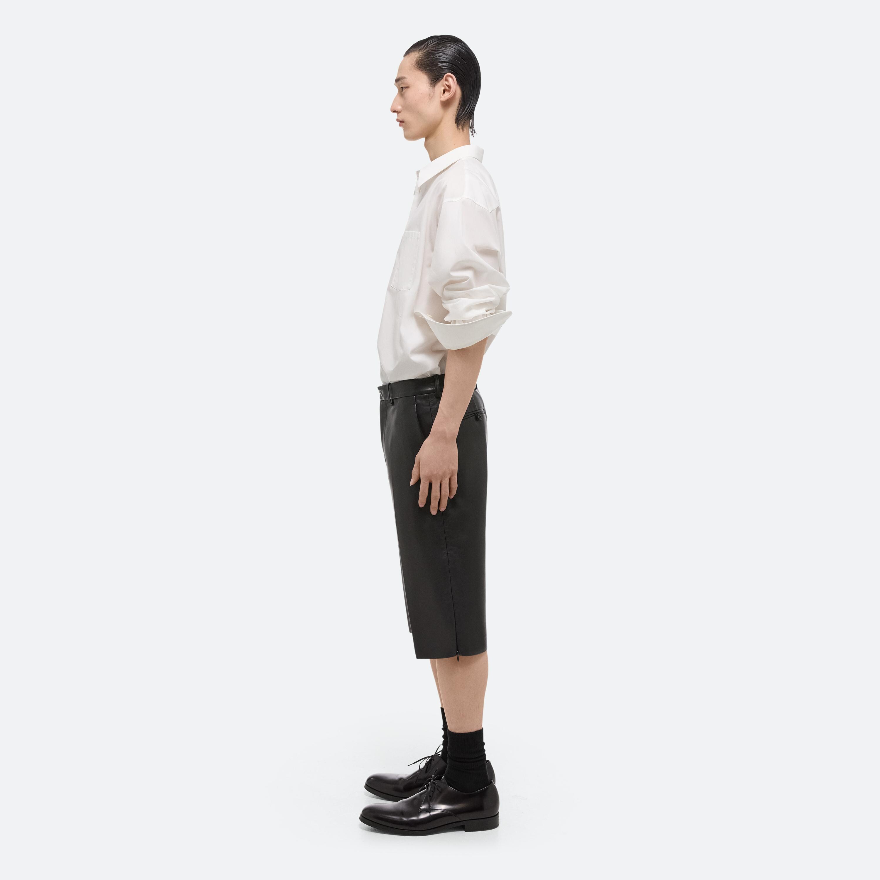 Tailored car short in Nappa leather. A straight leg cut with side zip, allowing for a more relaxed and stylized look when unzipped.