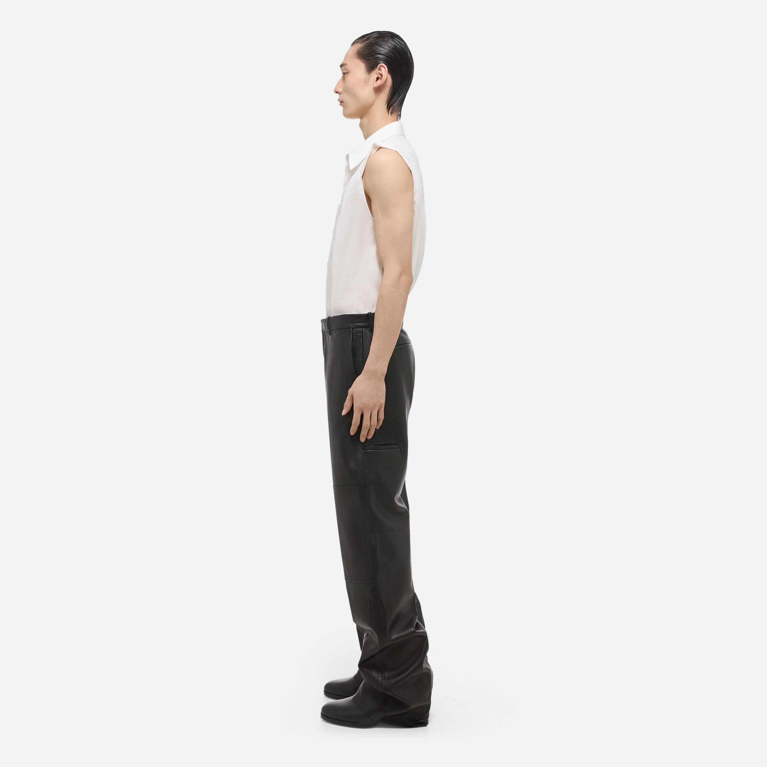Carpenter pants with a relaxed leg in nappa leather featuring classic utilitarian details.