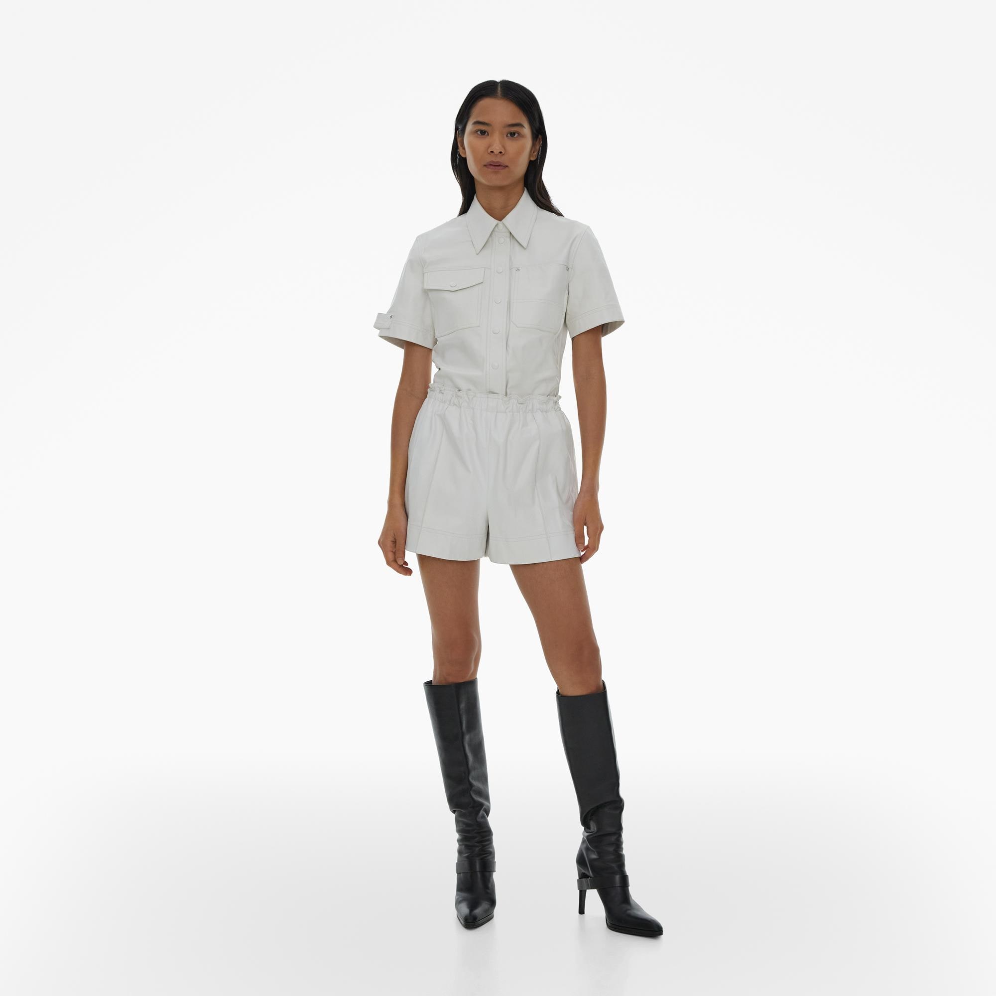 The Helmut Lang Pull-On Short is a relaxed style in smooth leather with an elasticized paperbag waistband and on-seam pockets.