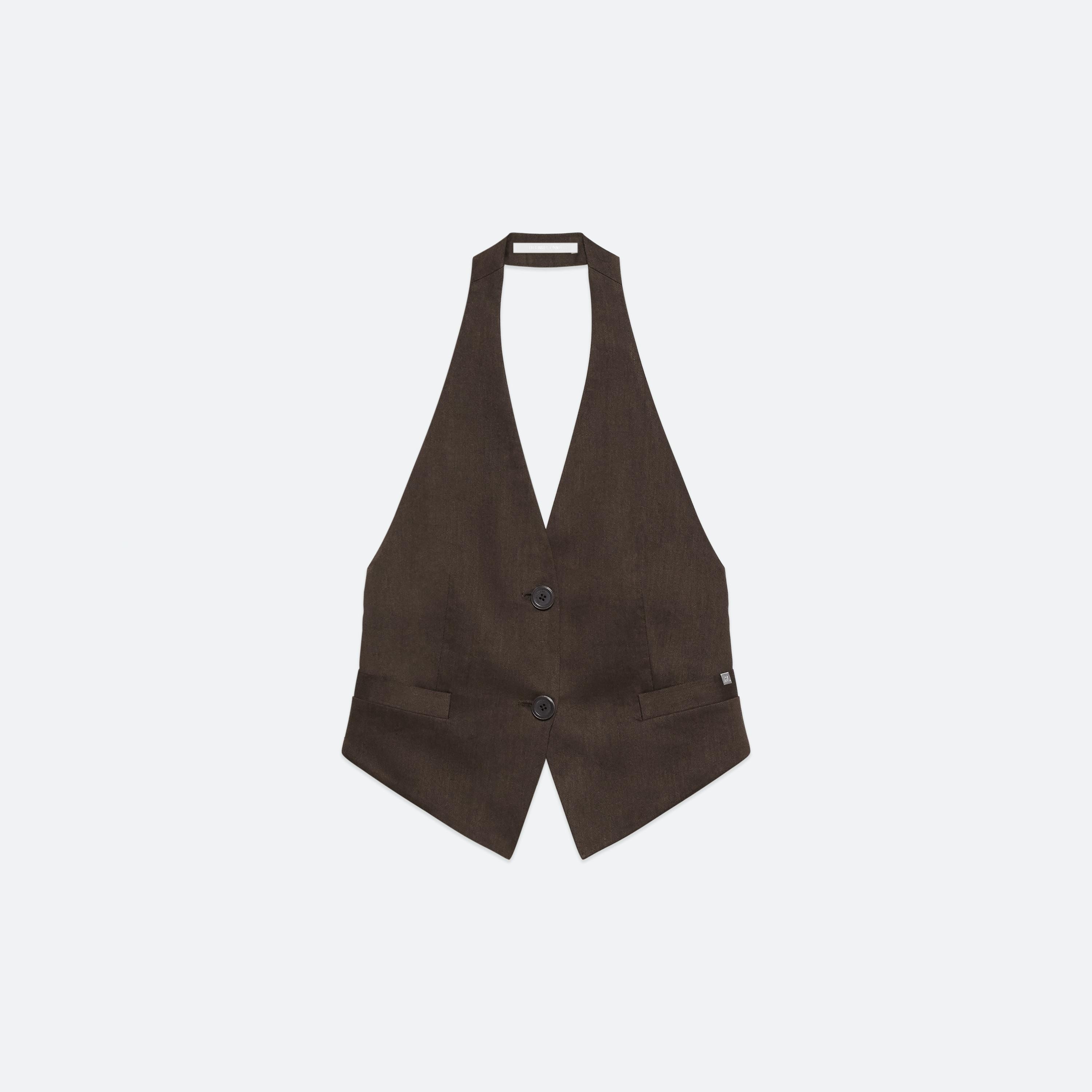 High-waisted linen trousers with an ultra-wide leg. Comes with matching D-ring belt with double-stitch detail. Matches the Linen Halter Vest.