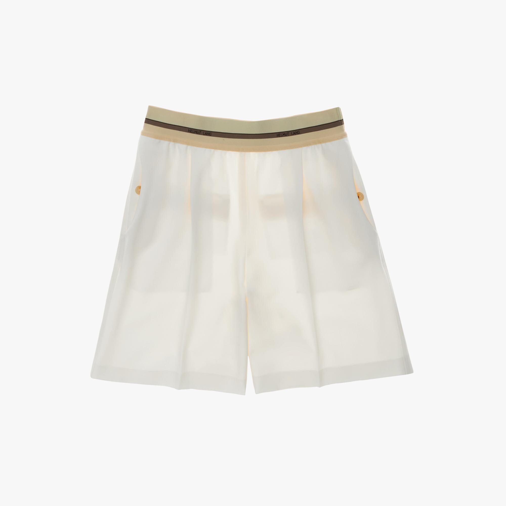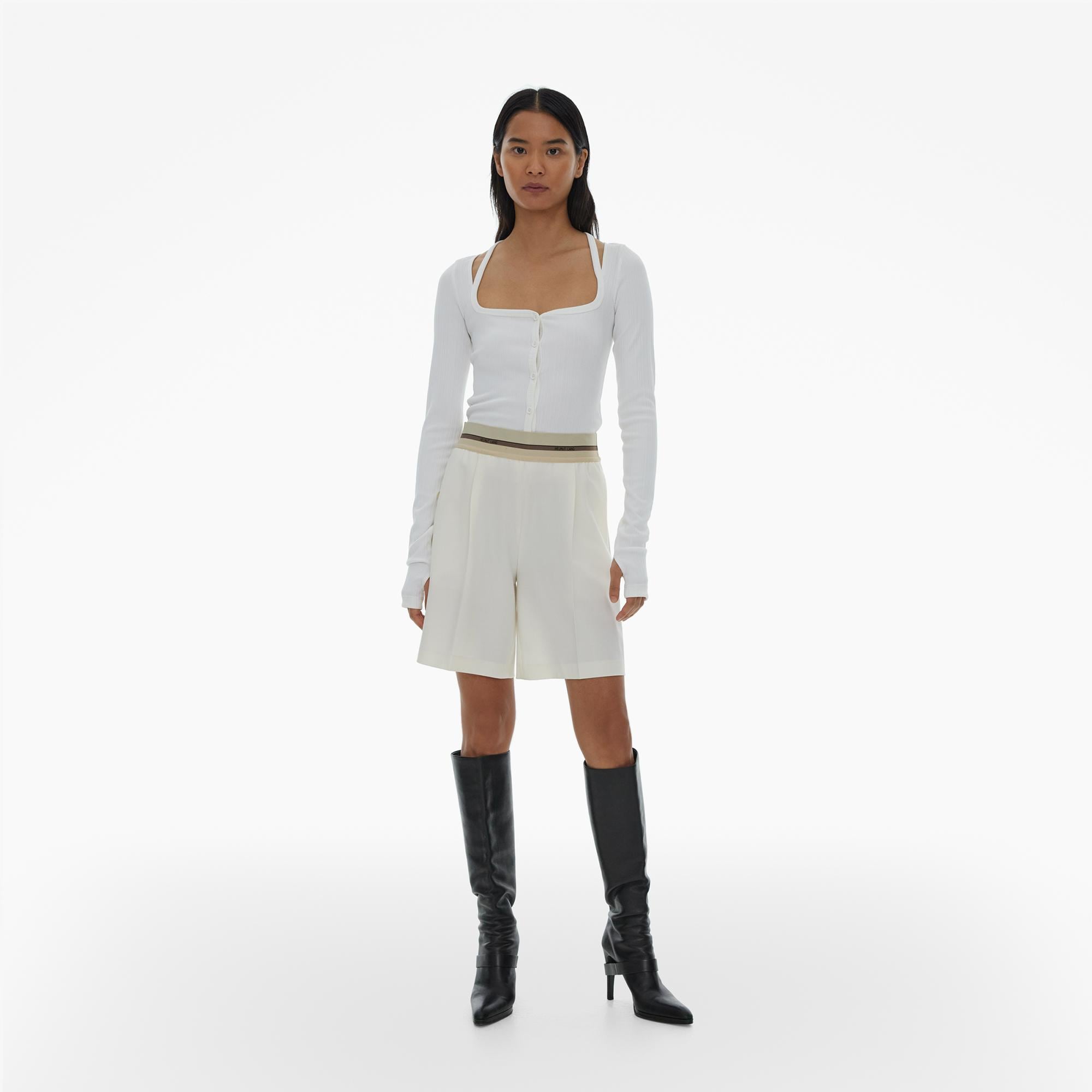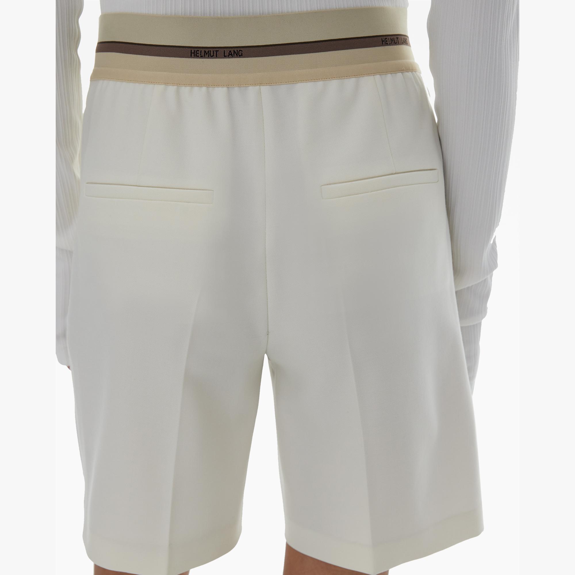 The Helmut Lang Pull On Short is a high-rise short in stretch wool-blend with a pleated elasticized logo waistband.