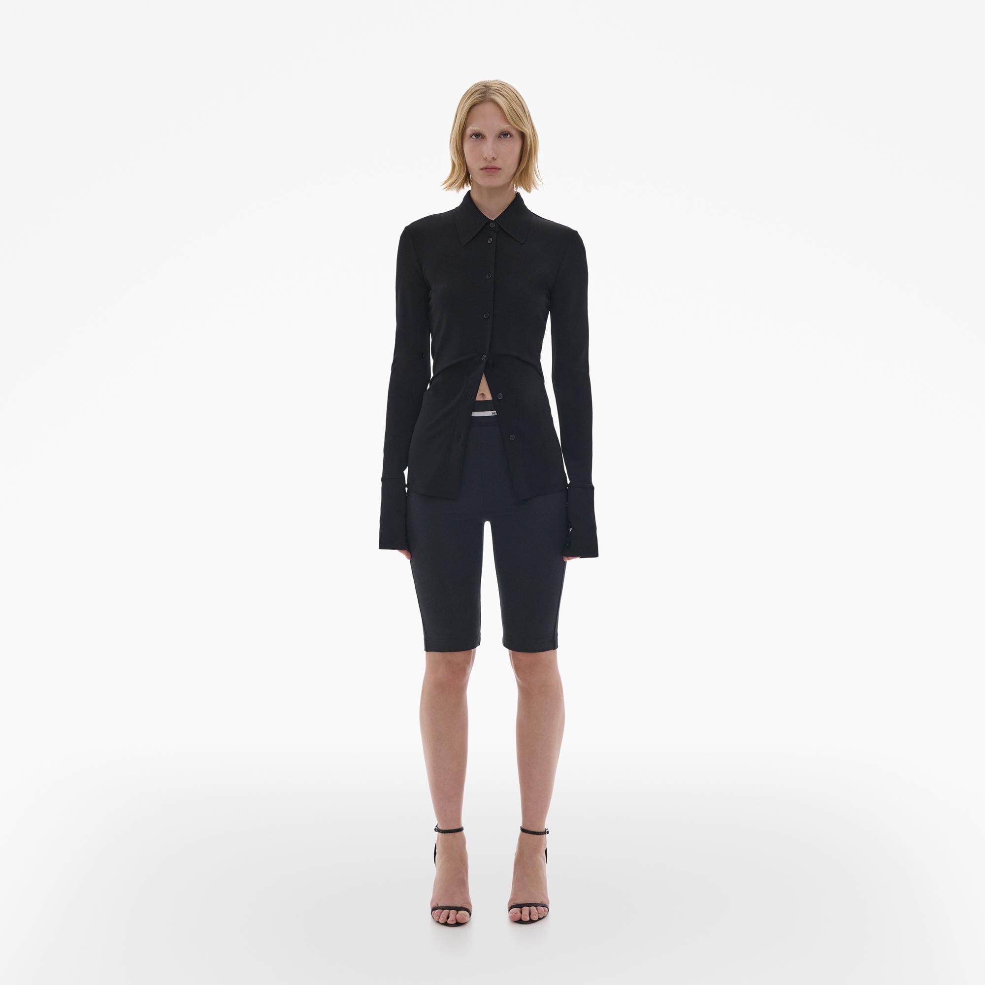 The Helmut Lang Biker Short is a slim-fitting style in a light cotton-modal jersey with an elasticized logo waistband.