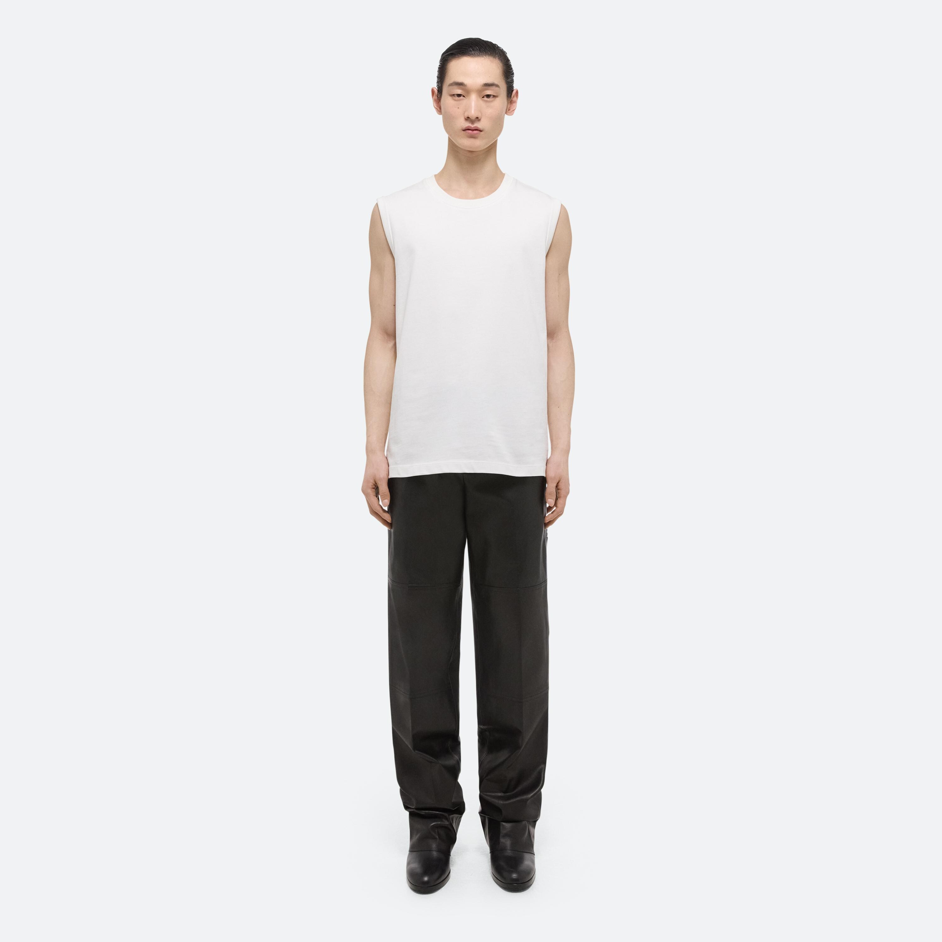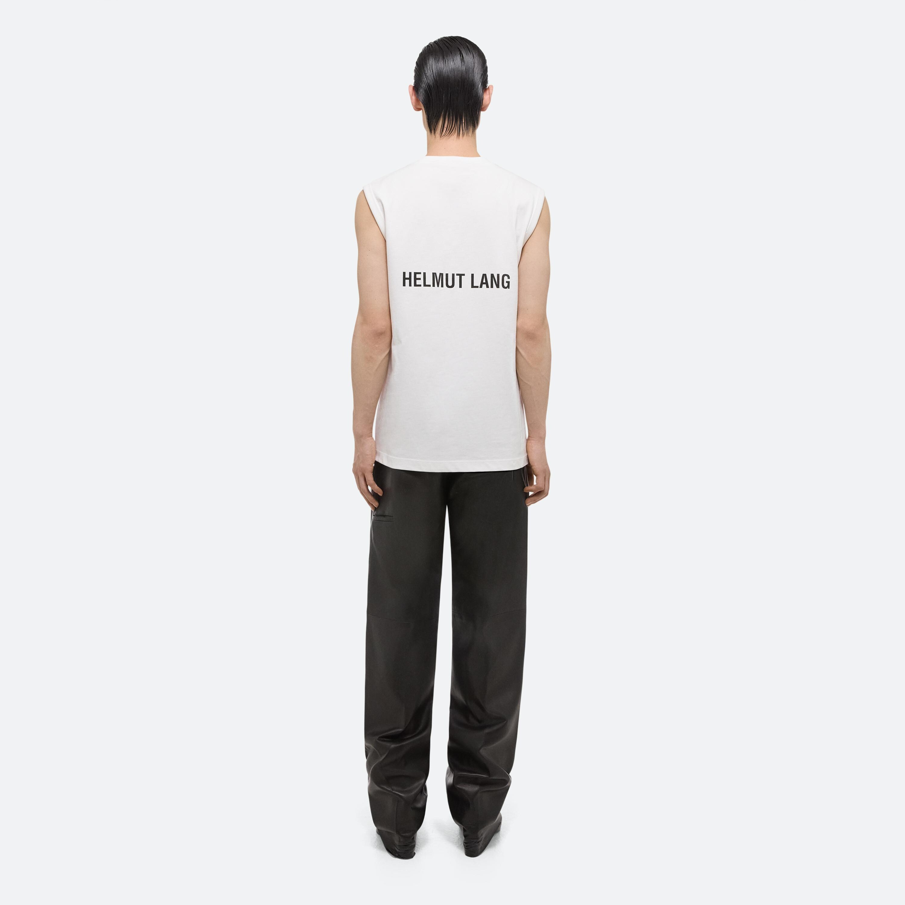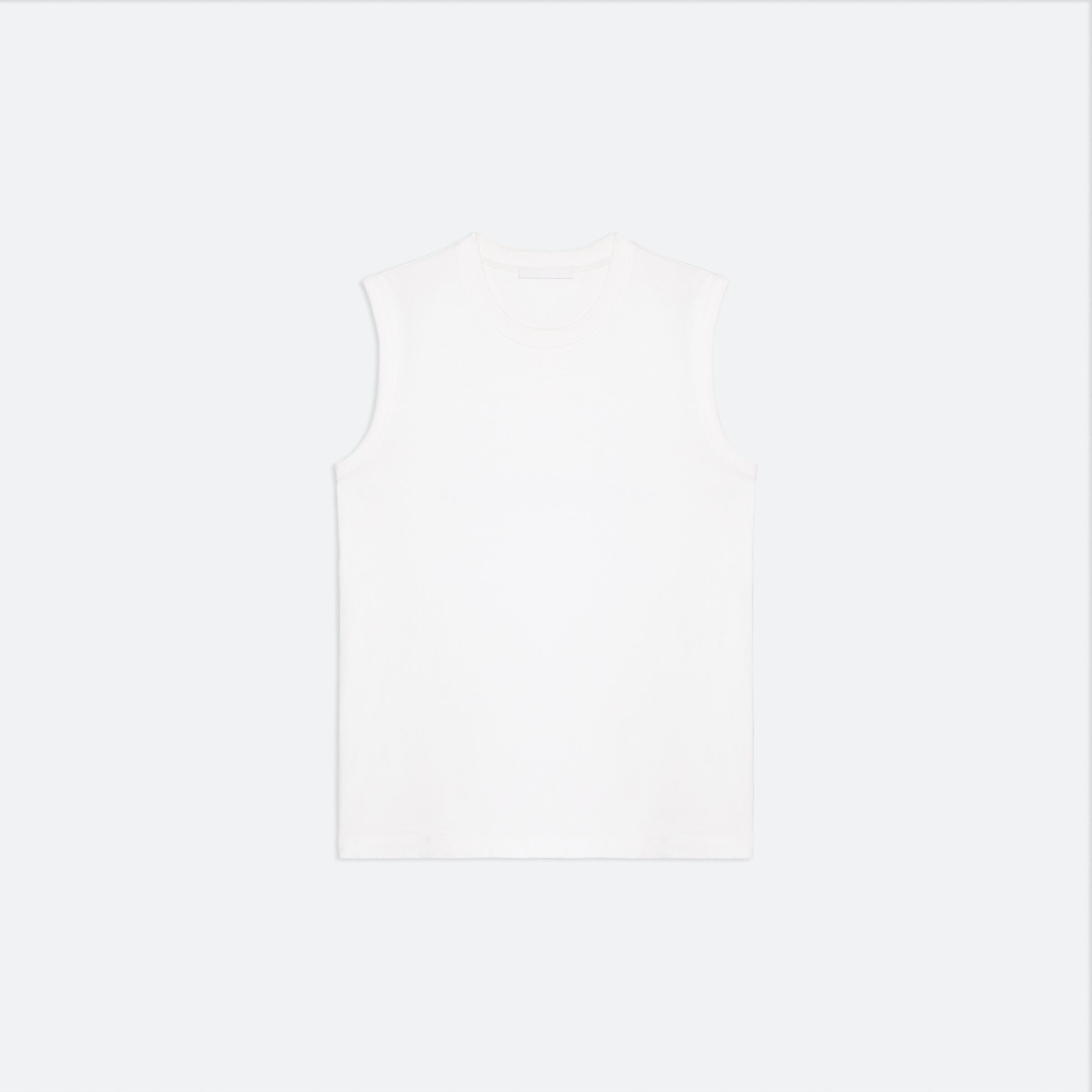 Heavyweight relaxed fit crewneck tank in cotton jersey with logo print on back. This garment was designed with many body types and gender expressions in mind.