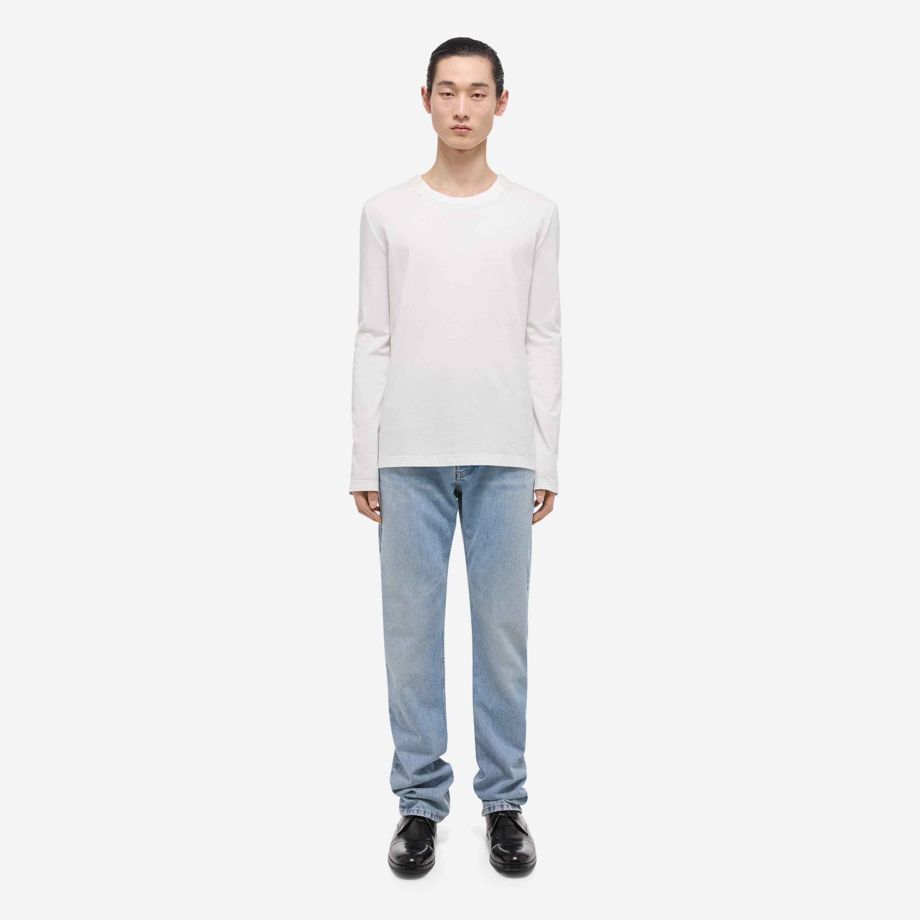 Lightweight crewneck tee with long sleeves and seatbelt tape details at shoulder.