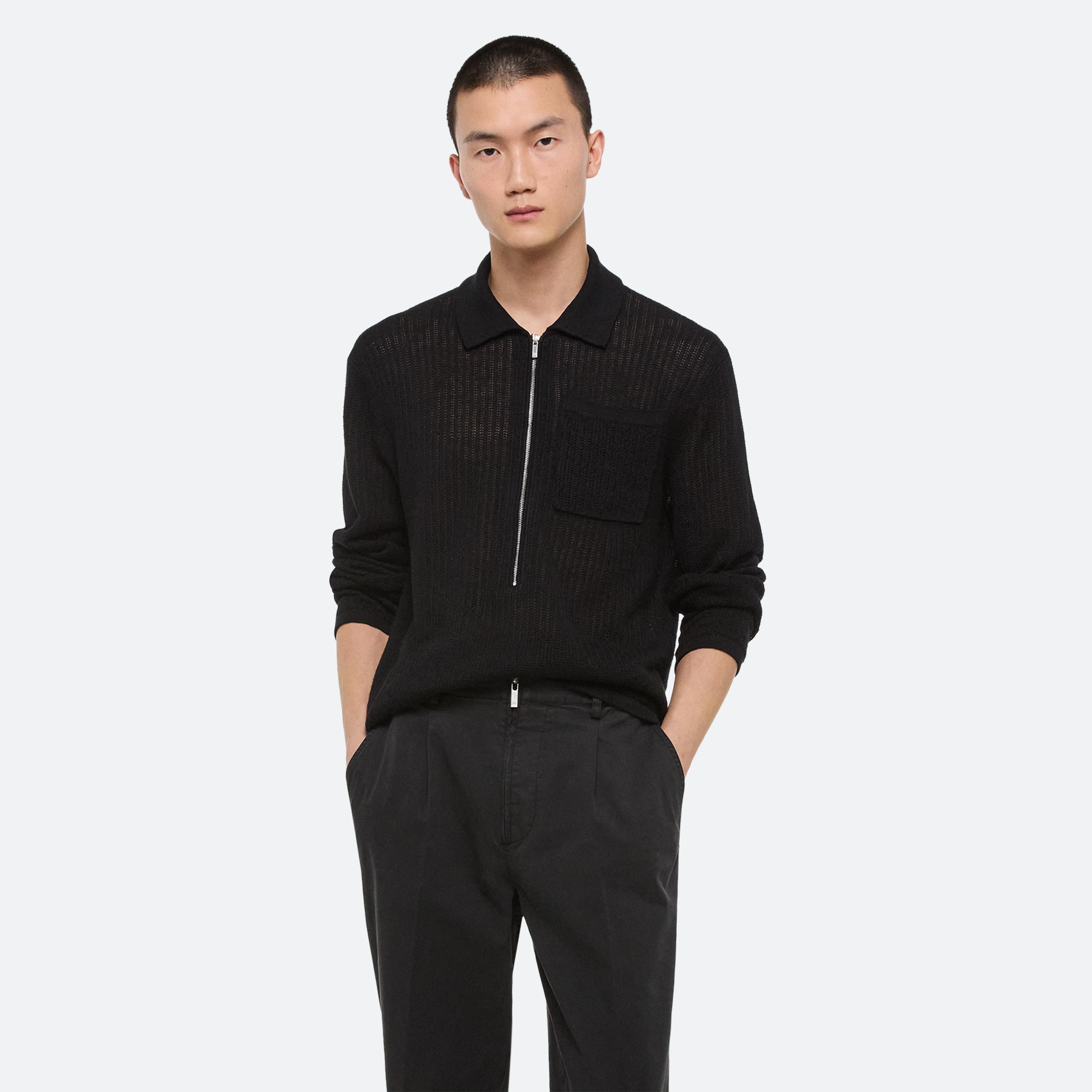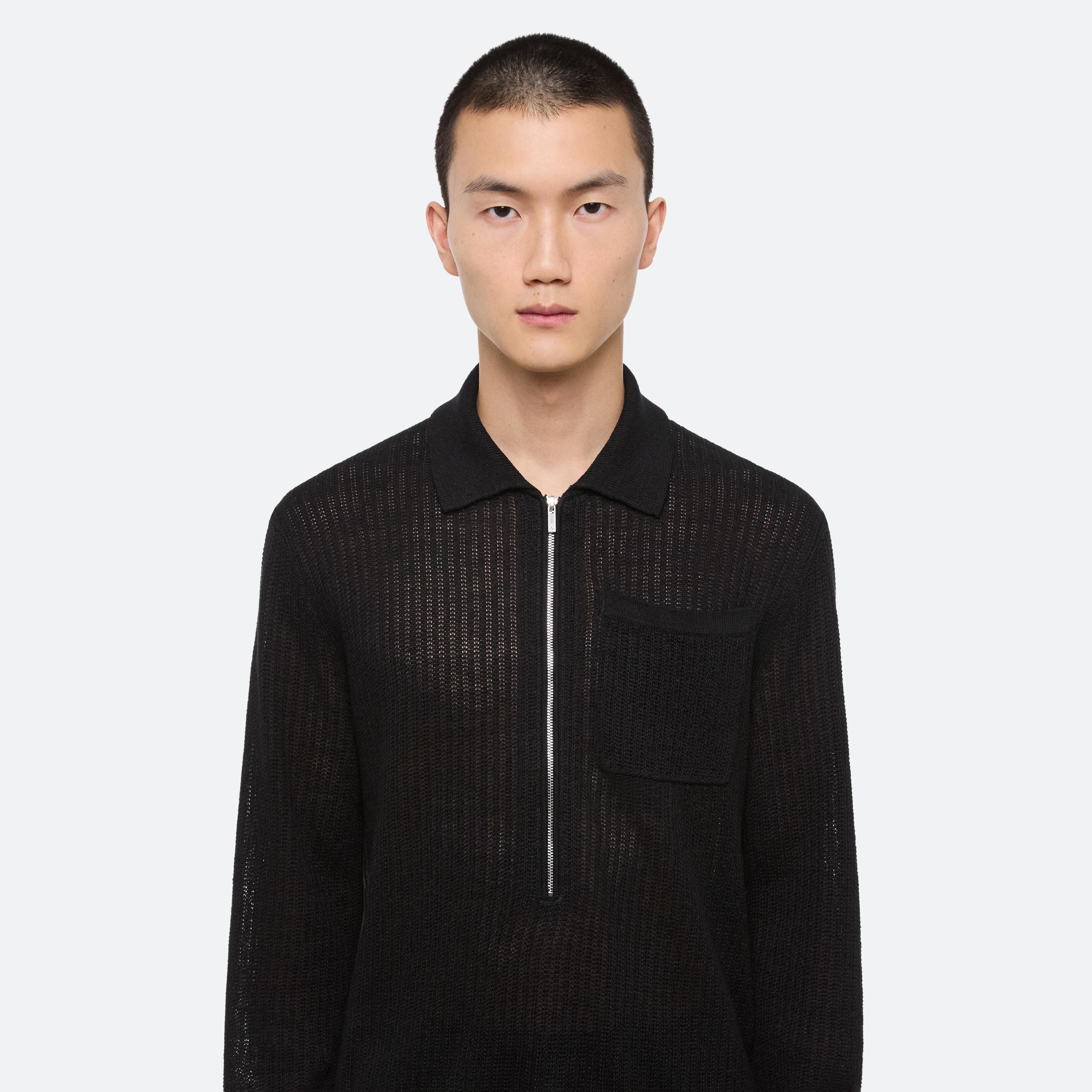 Relaxed polo sweater in a textured knit, made in an airy linen.