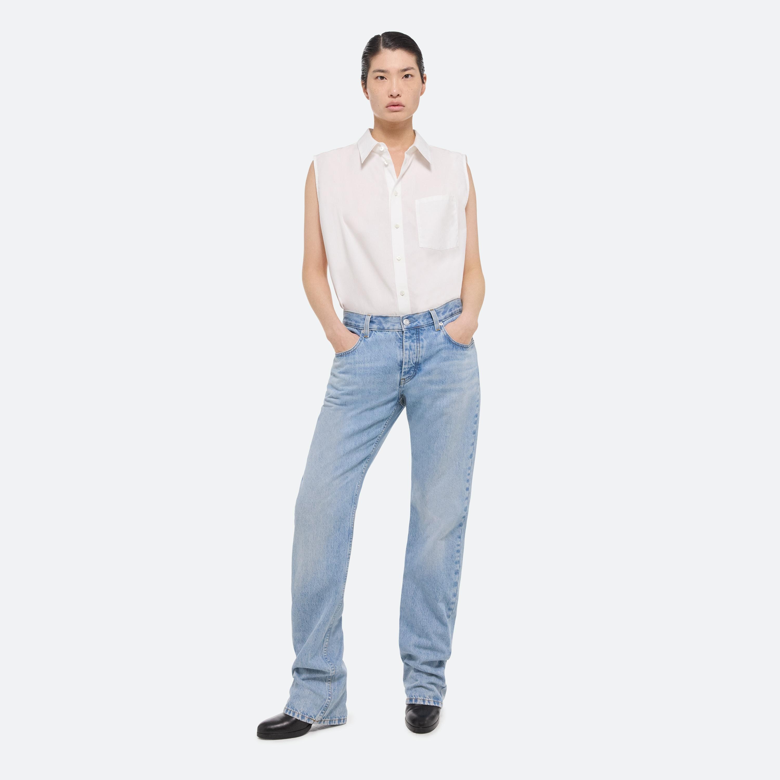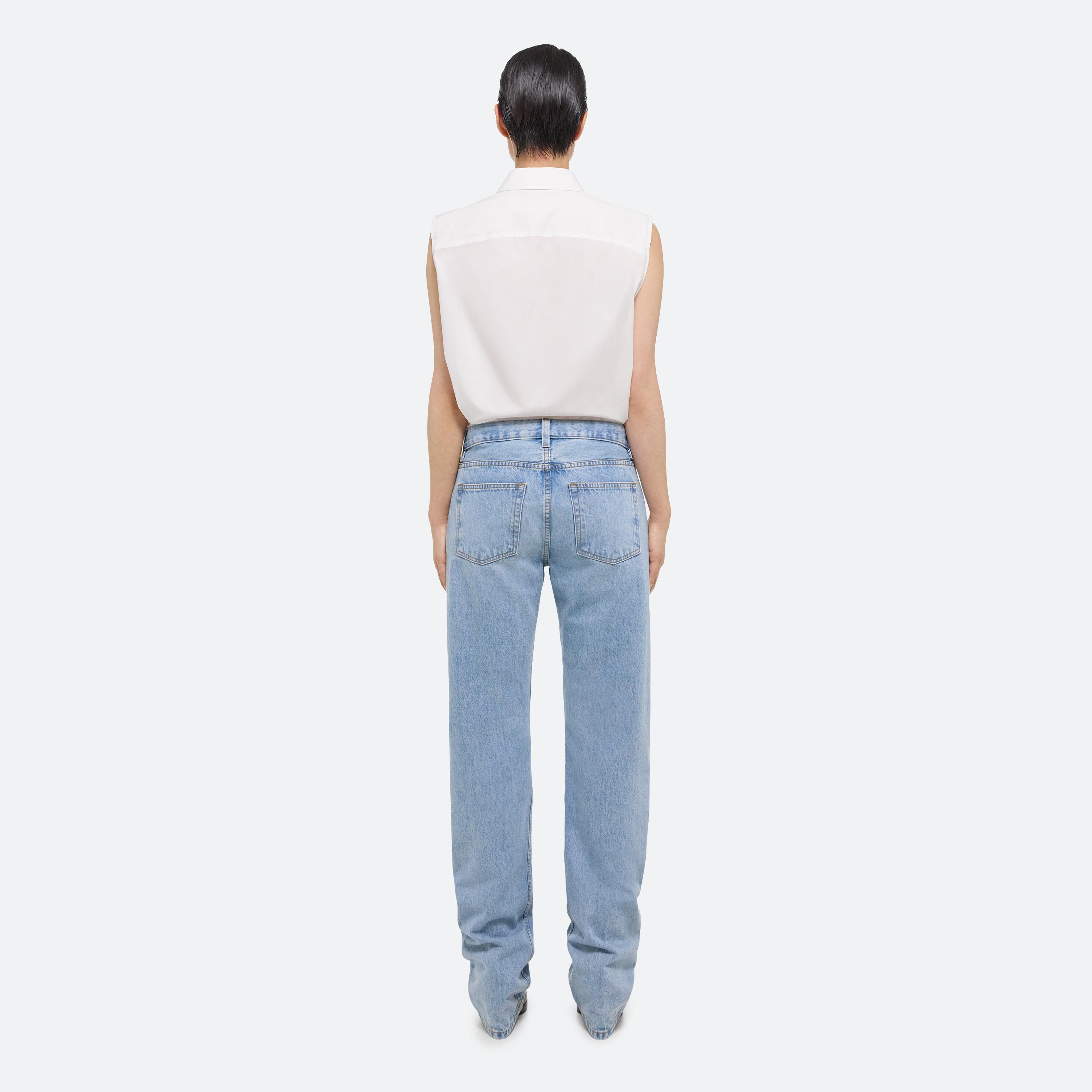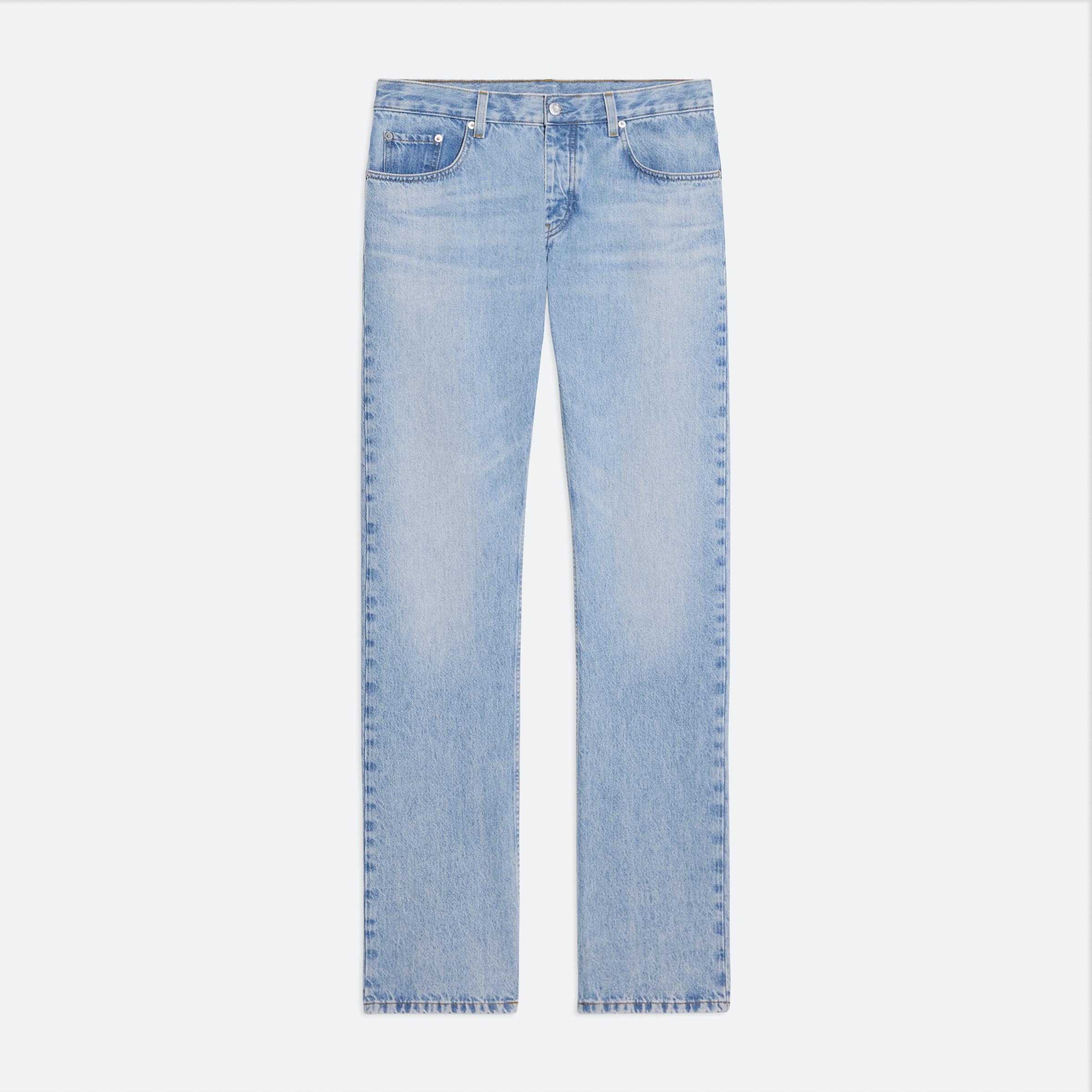 Low rise five pocket jeans in light indigo denim. Cut with a straight leg, with a relaxed fit