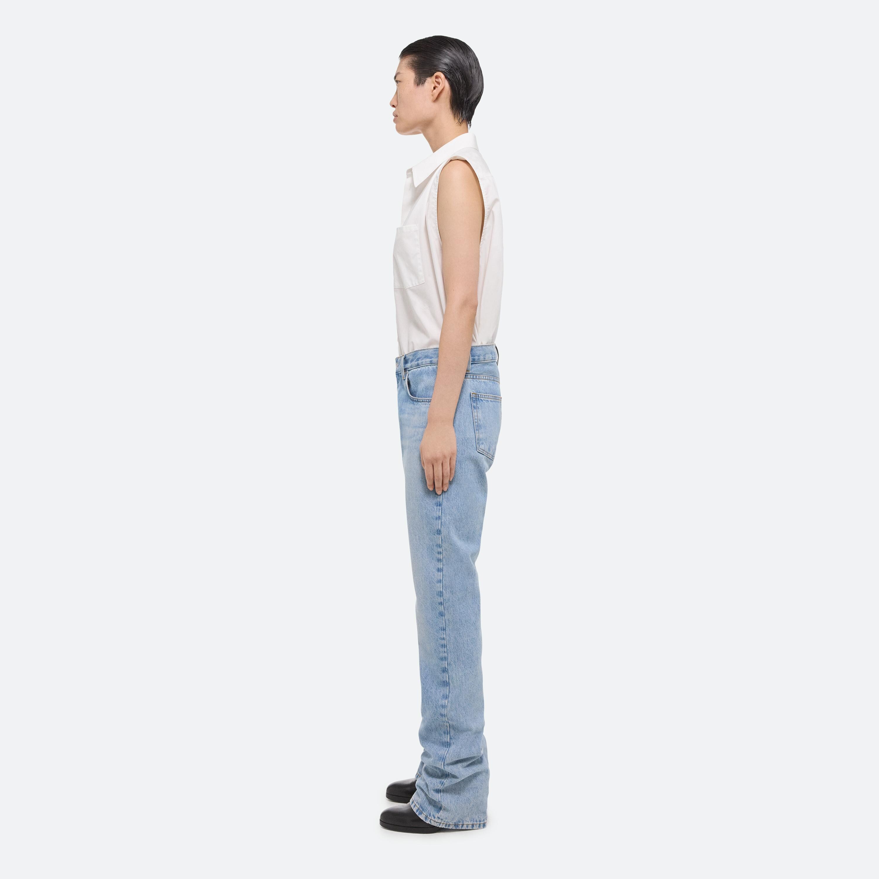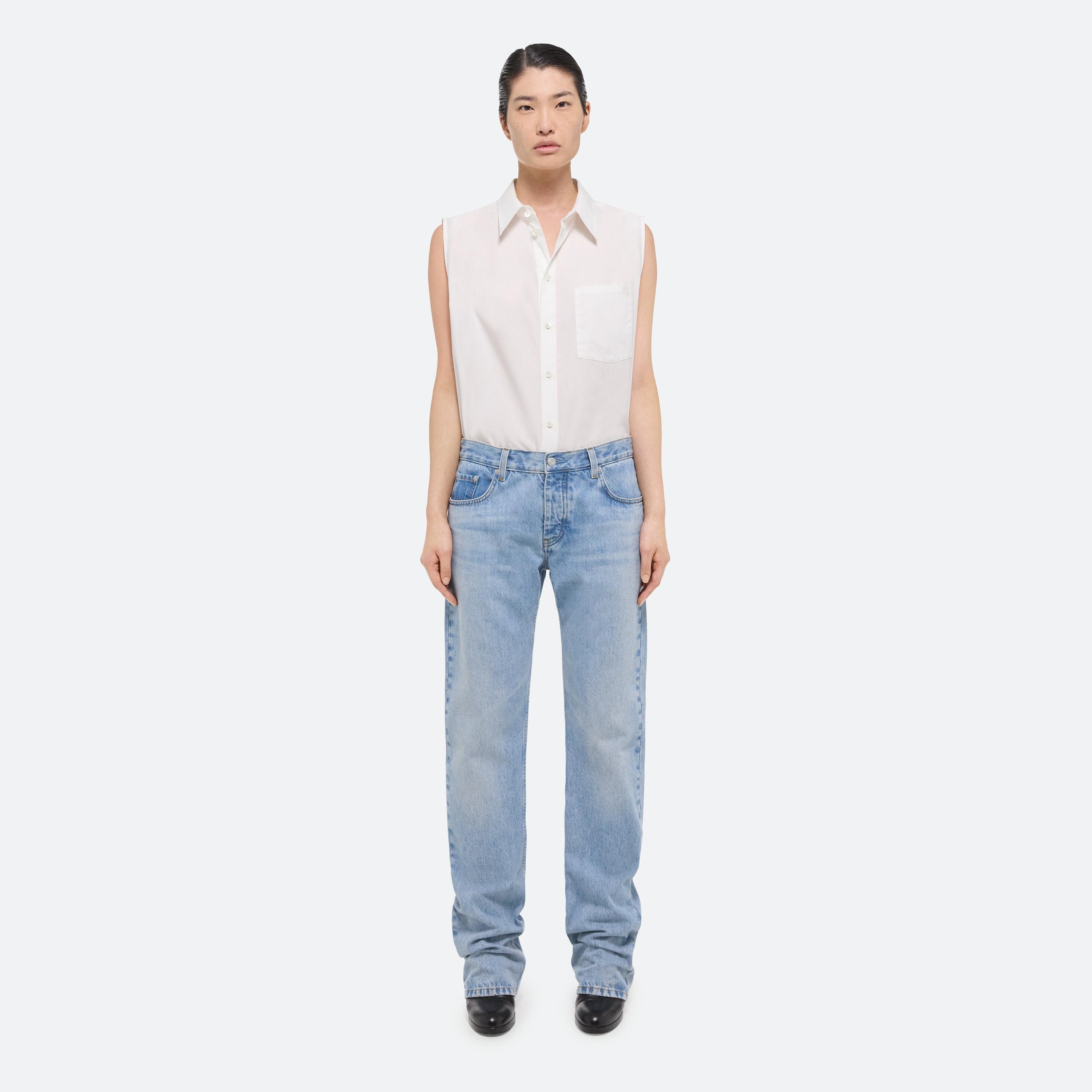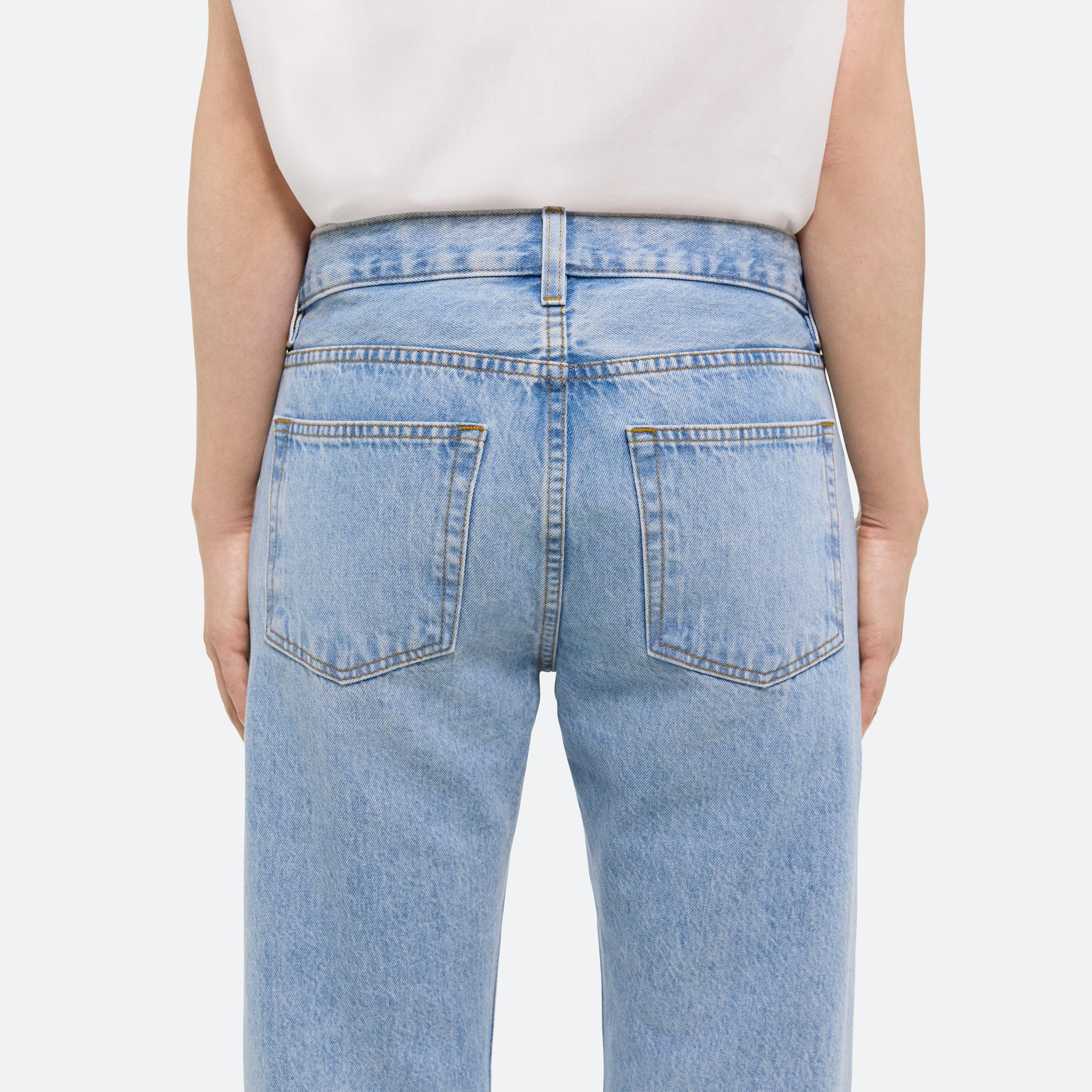 Low rise five pocket jeans in light indigo denim. Cut with a straight leg, with a relaxed fit