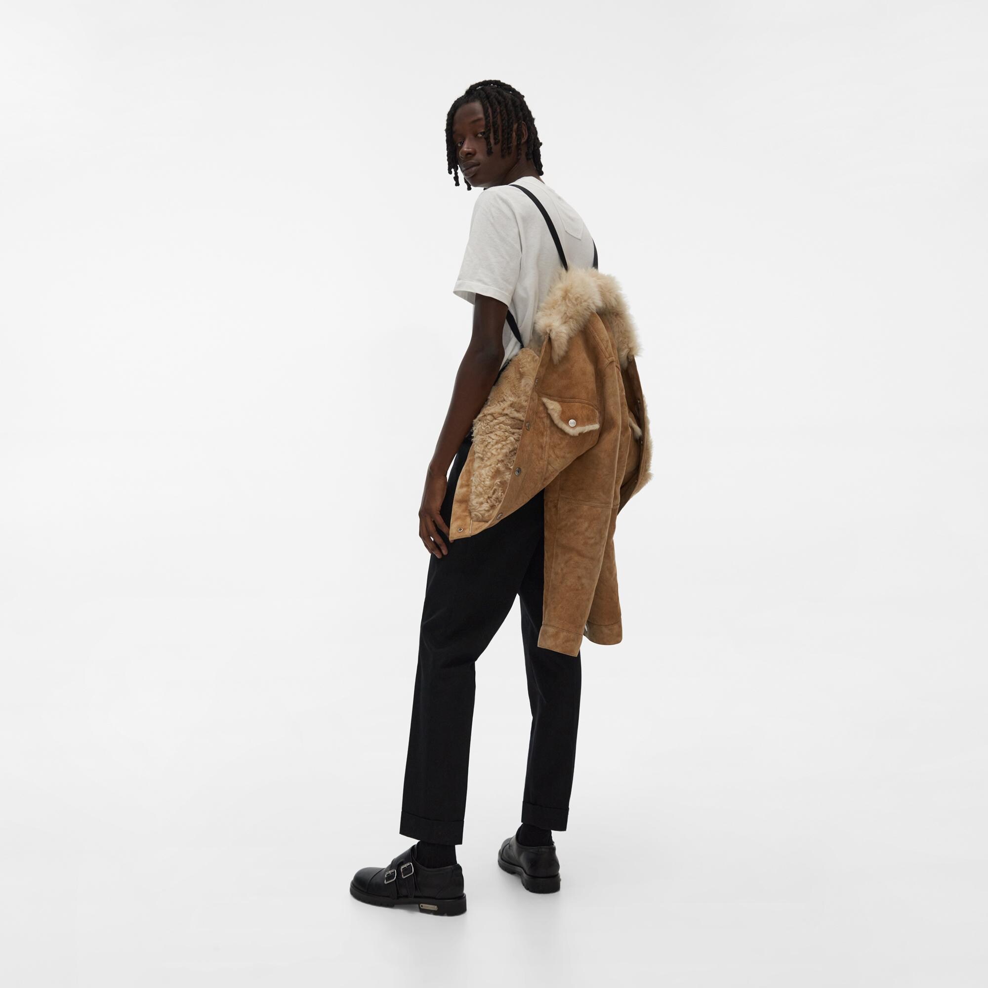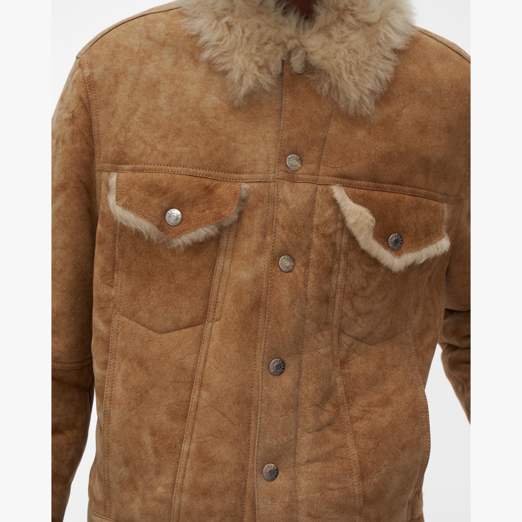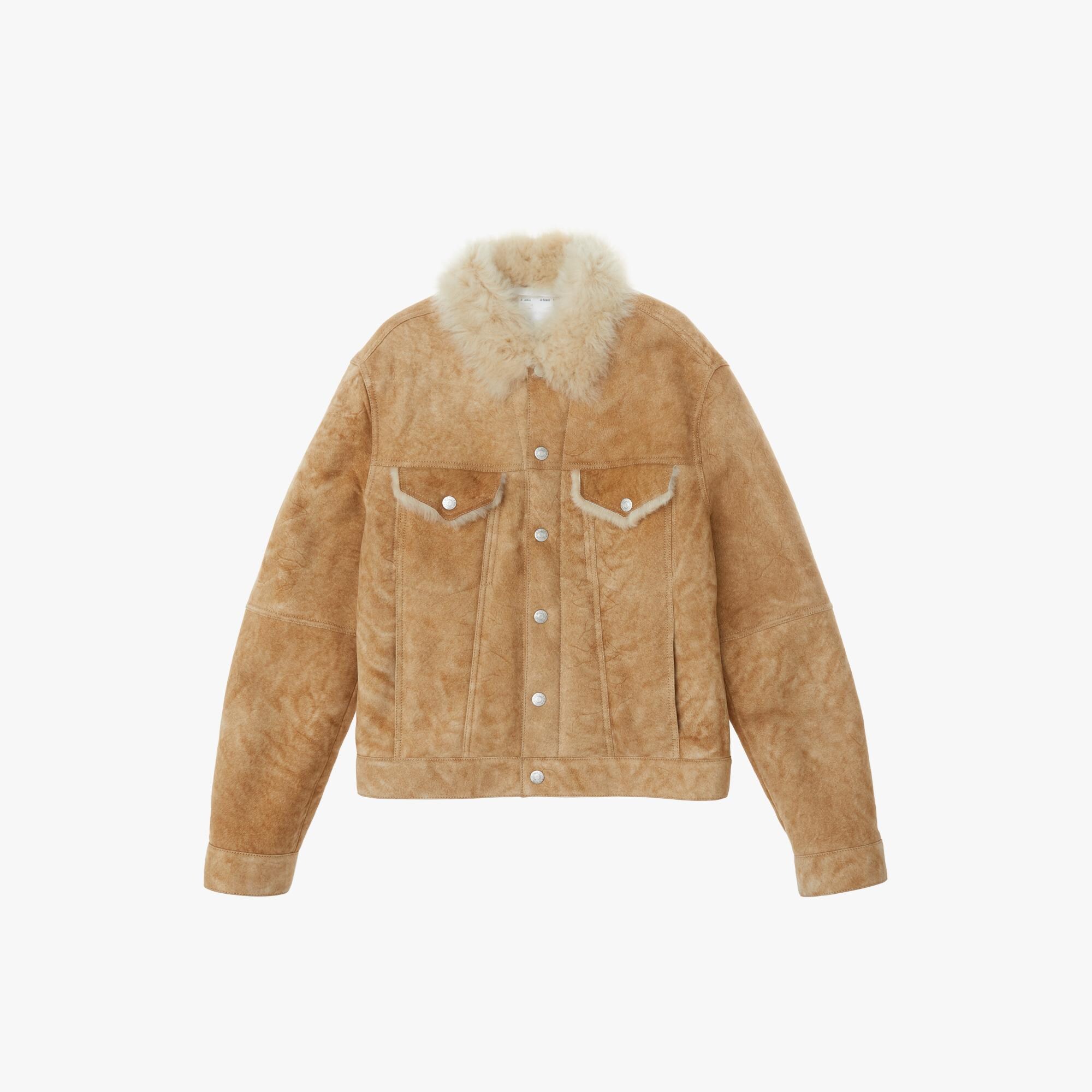 The Helmut Lang Masc Big Trucker Shearling Jacket is a classic trucker jacket made of soft shearling