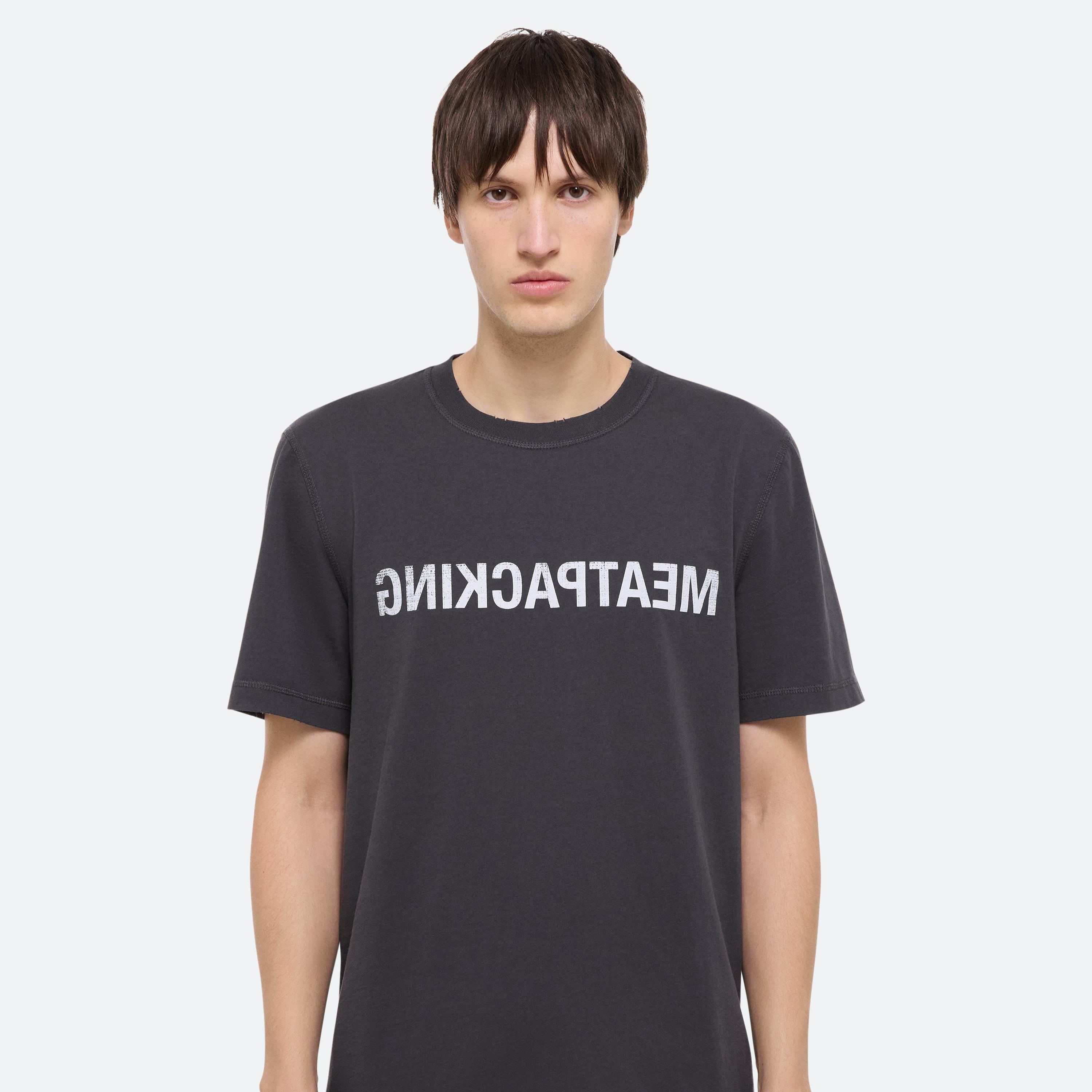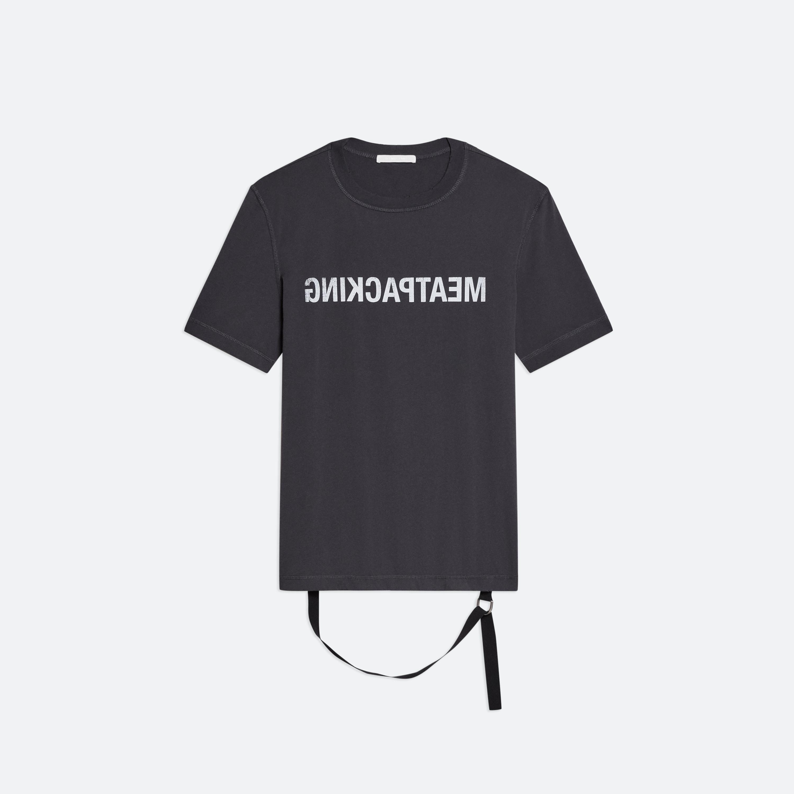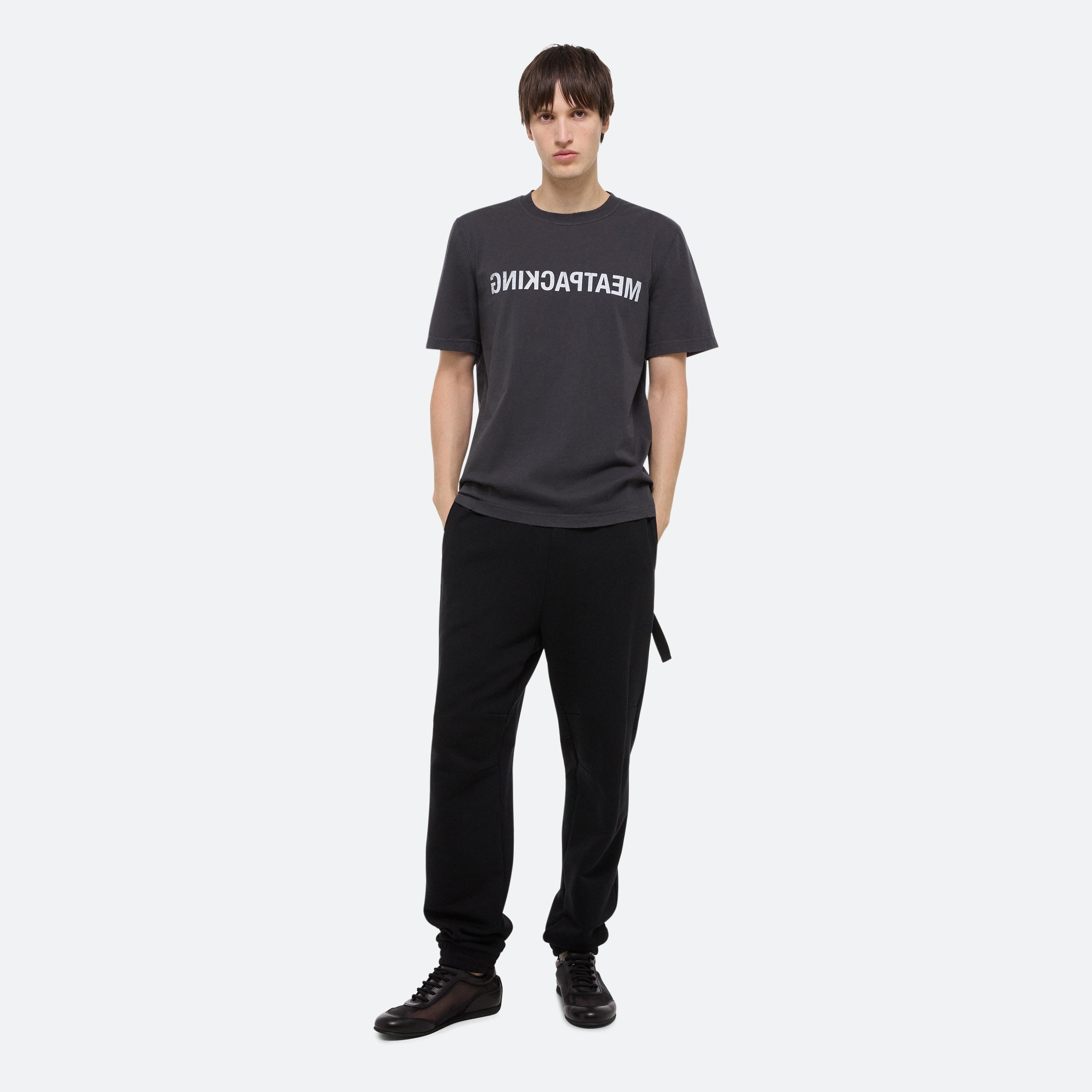 Lightweight crewneck tee in a relaxed fit, with adjustable seatbelt tape at hem. Distressed detailing creates the feeling of a long-time favorite.
