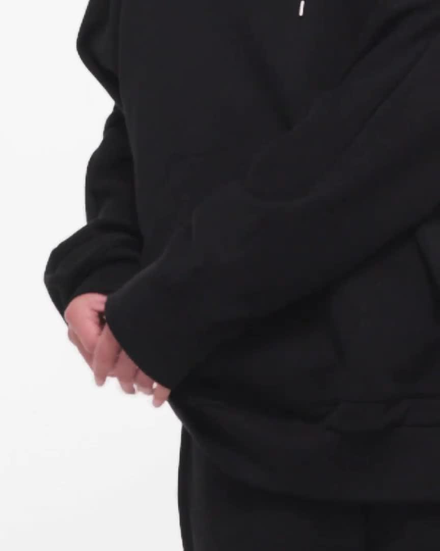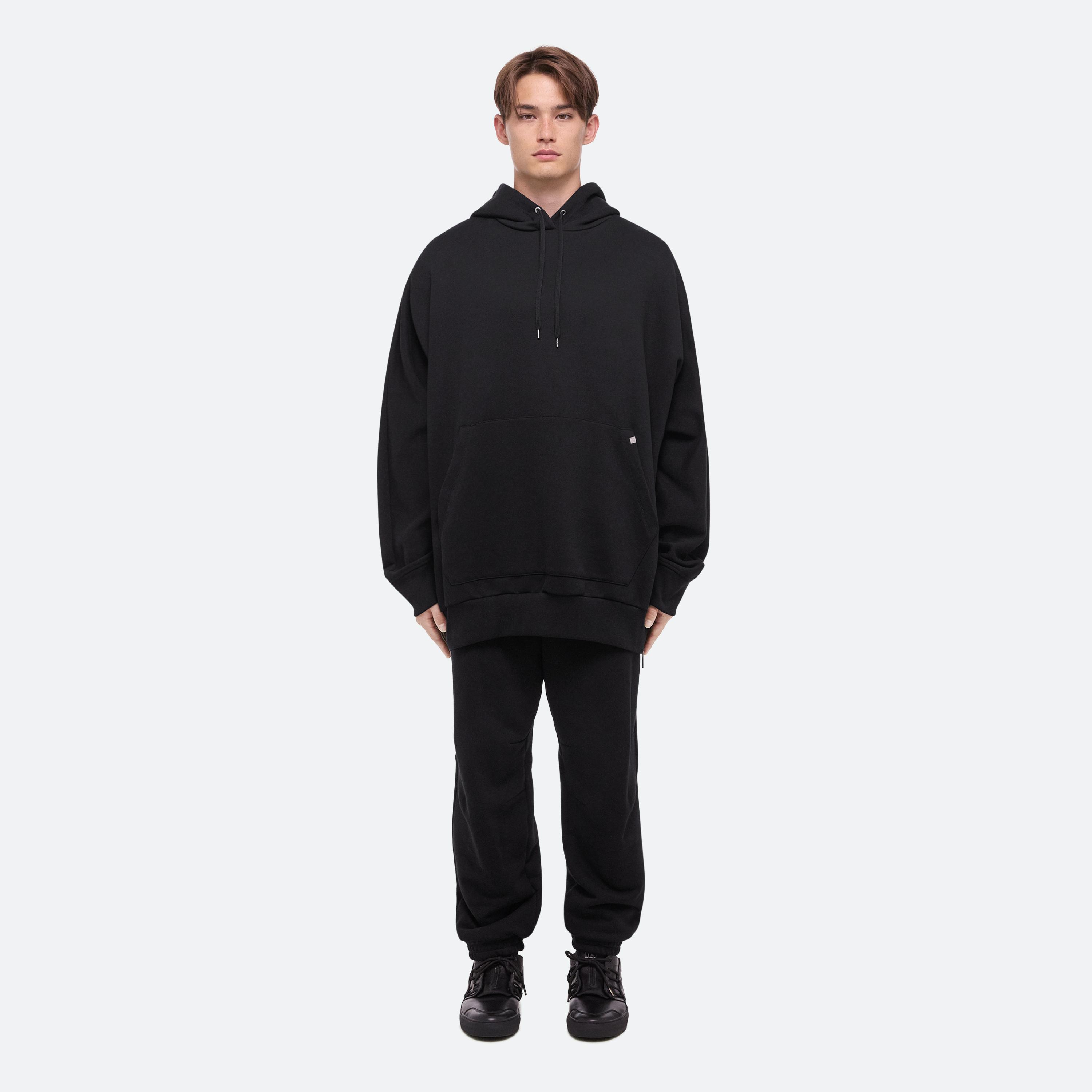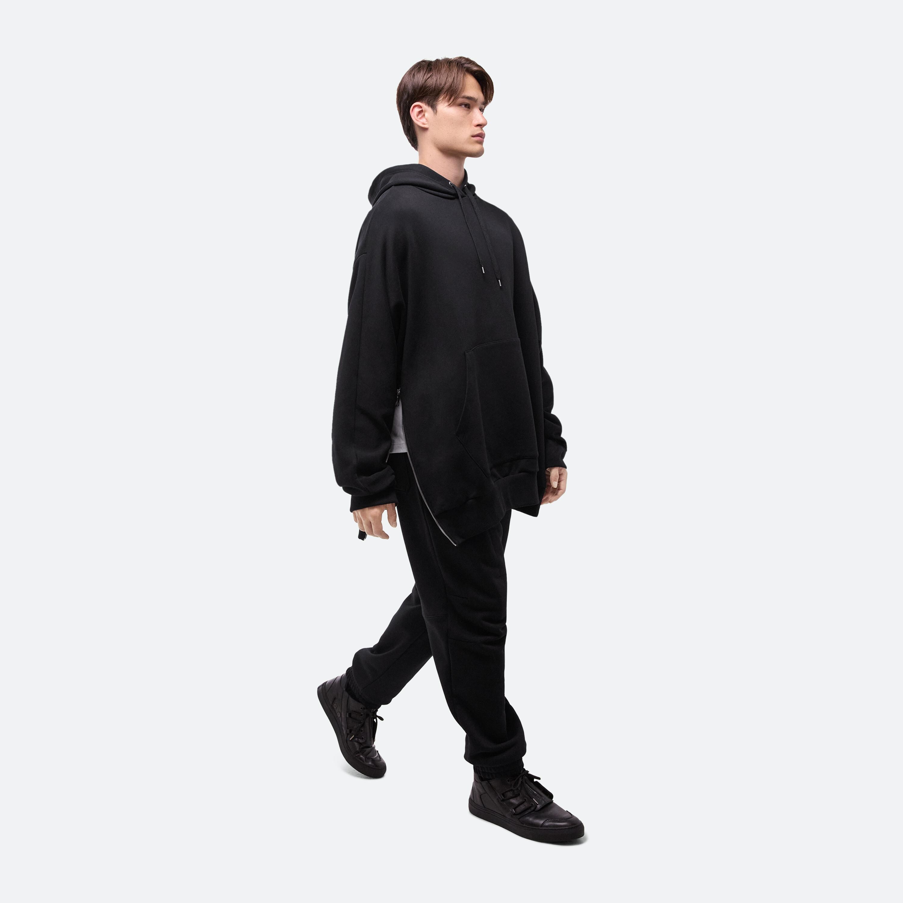 Hooded sweatshirt with exaggerated proportions. Open the side zippers for a more relaxed look.