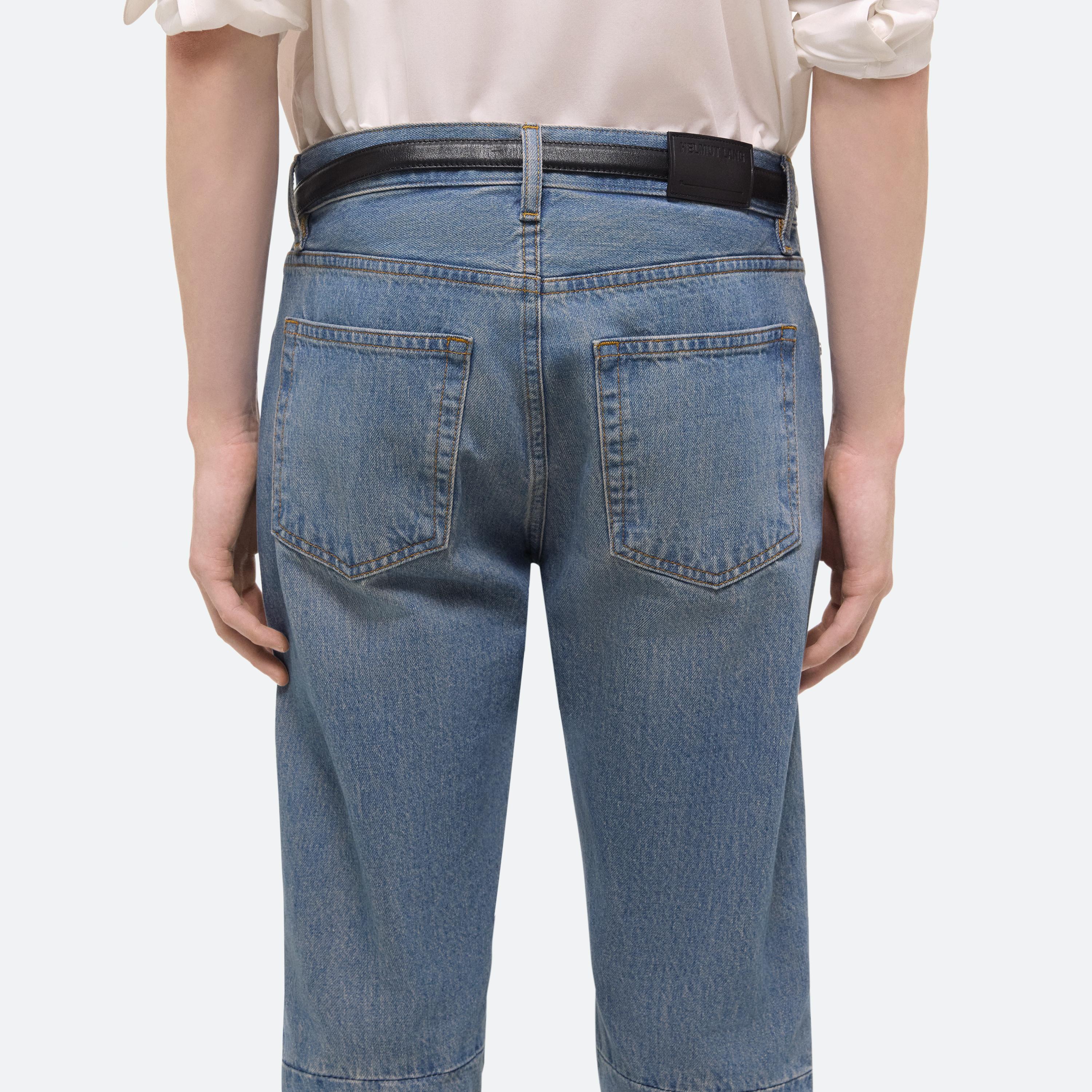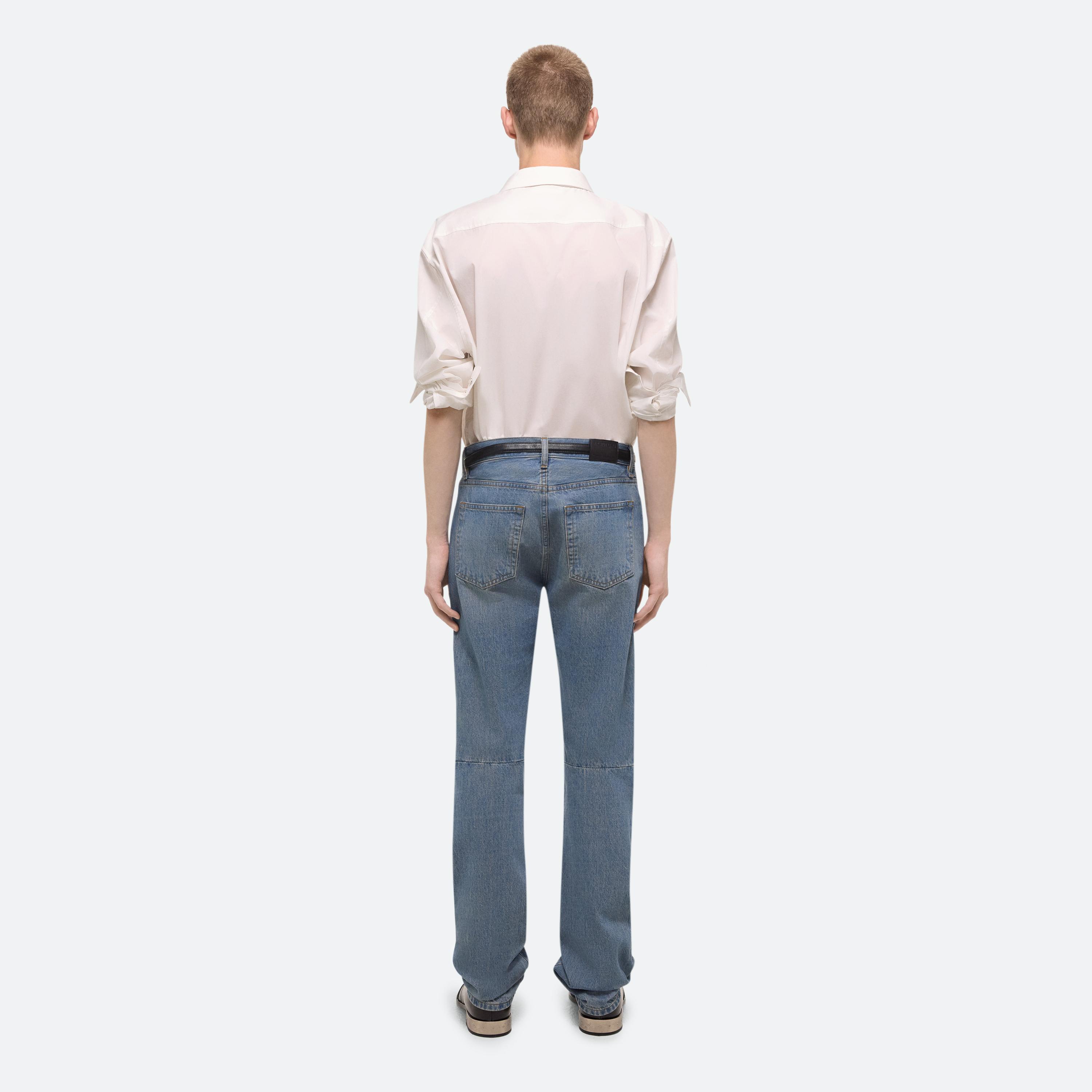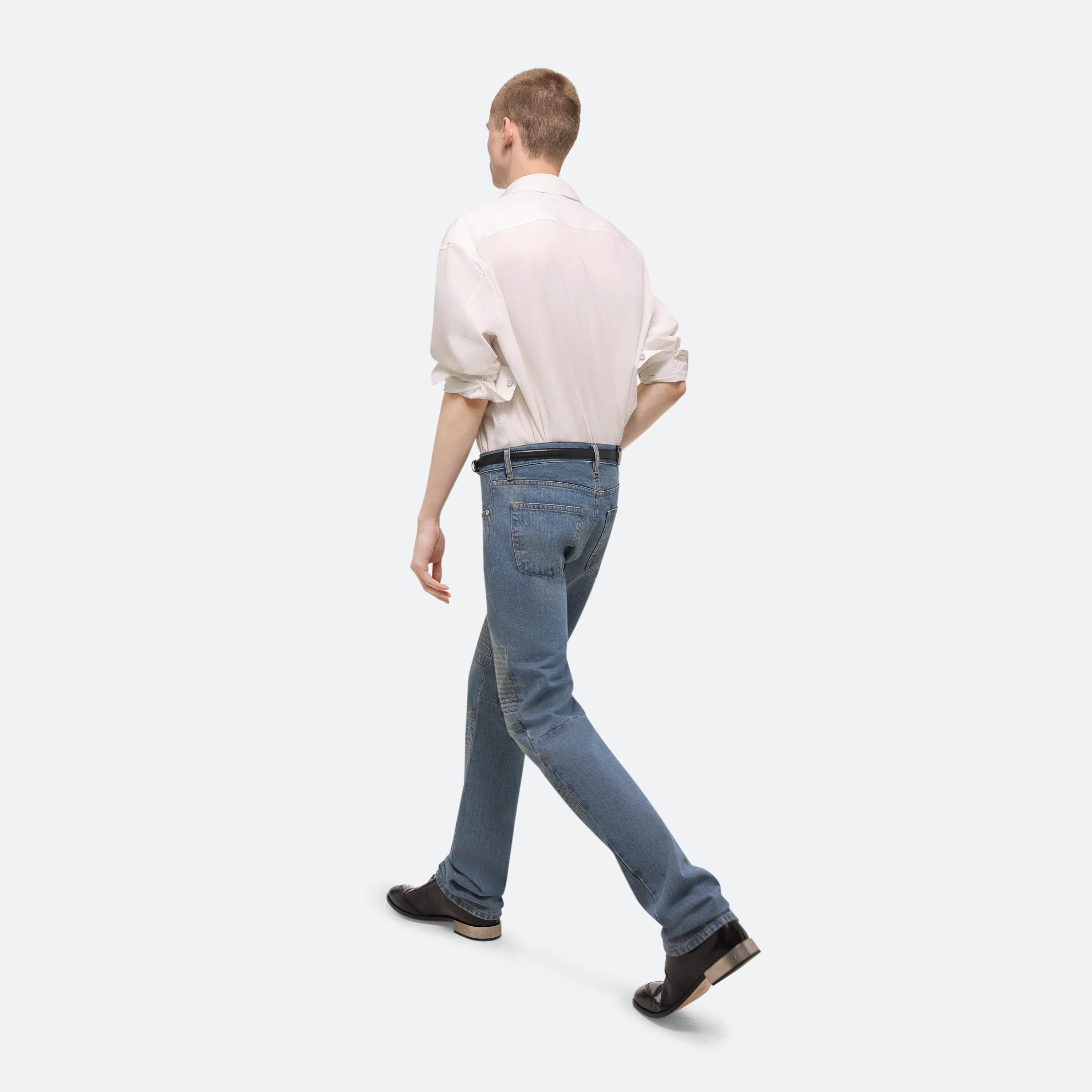 Low-rise five-pocket jeans in mid-wash denim with an articulated leg shape and protective moto details. Cut with an easy, relaxed fit and a straight leg.