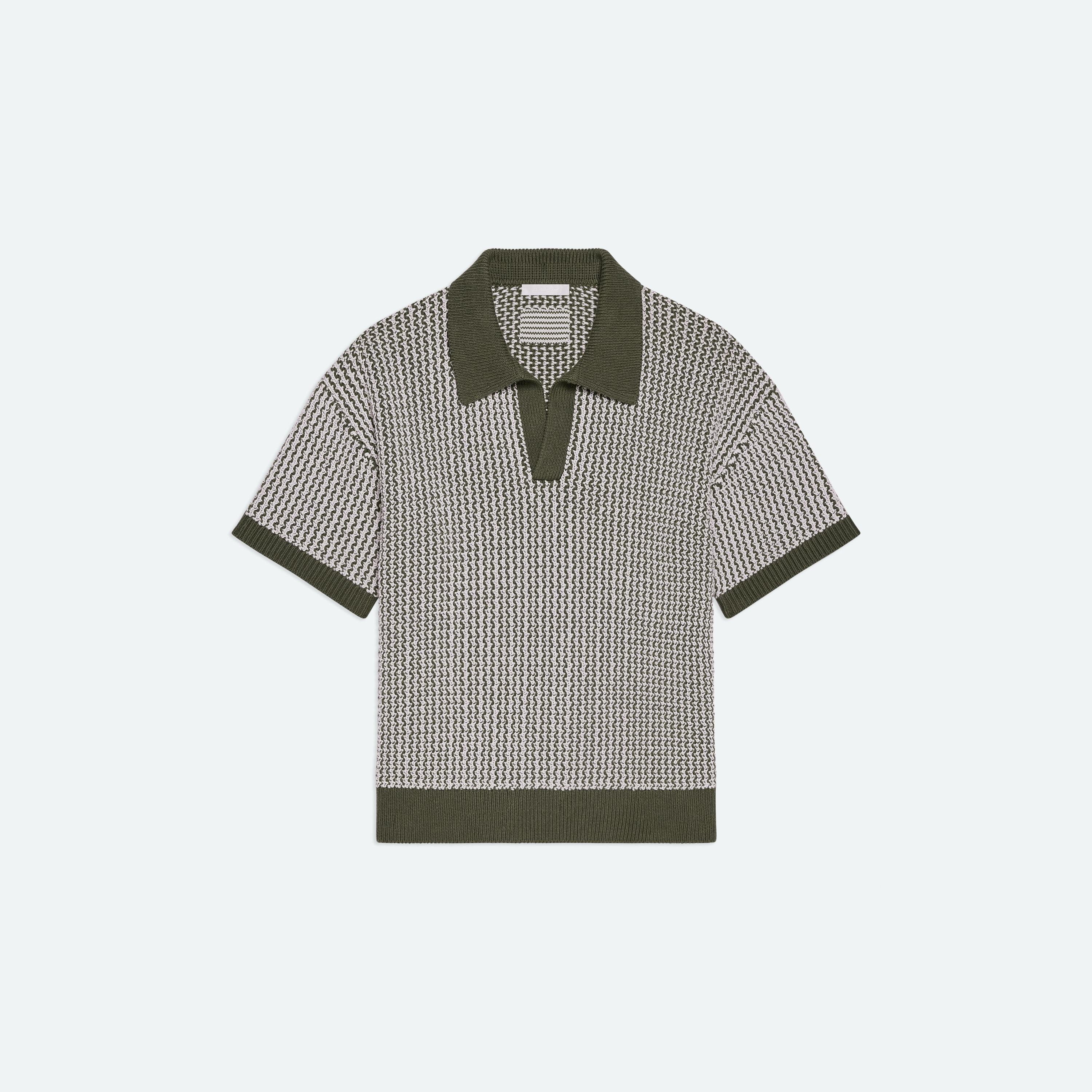 Crewneck sweater in cotton knit. Made with an open stitch that creates a net-like effect. A dropped shoulder adds to the relaxed fit.
