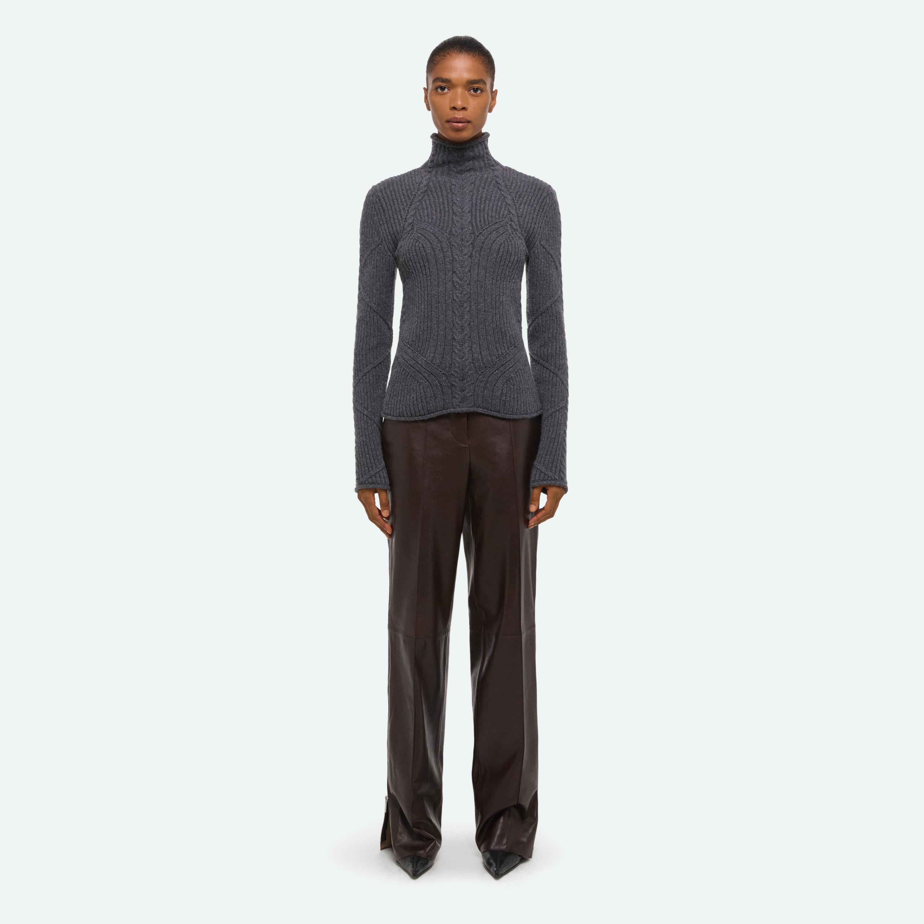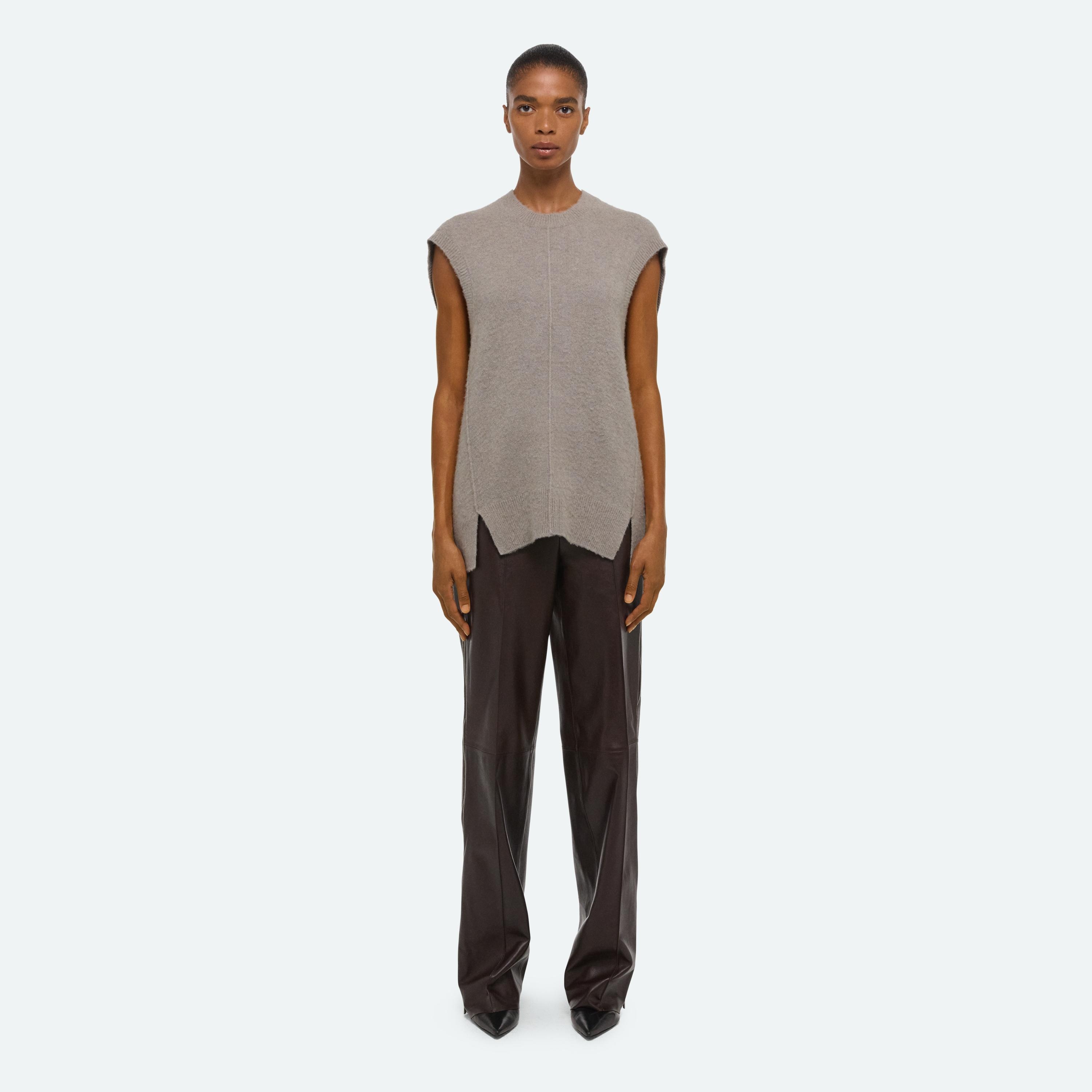 LINDSAY WEARS THE SLOUCHY CREWNECK AND THE PONY HIGH-RISE PANTS
