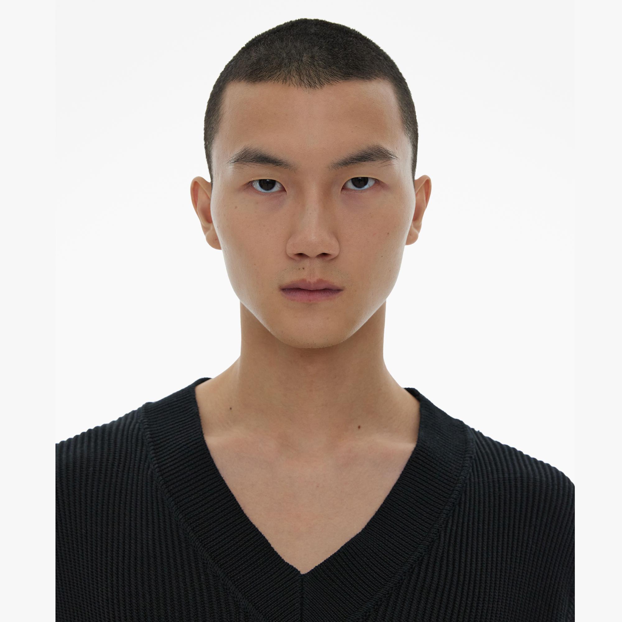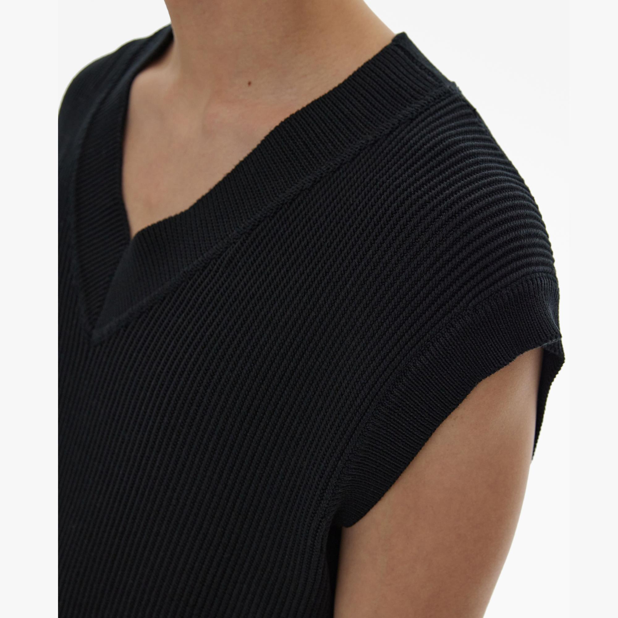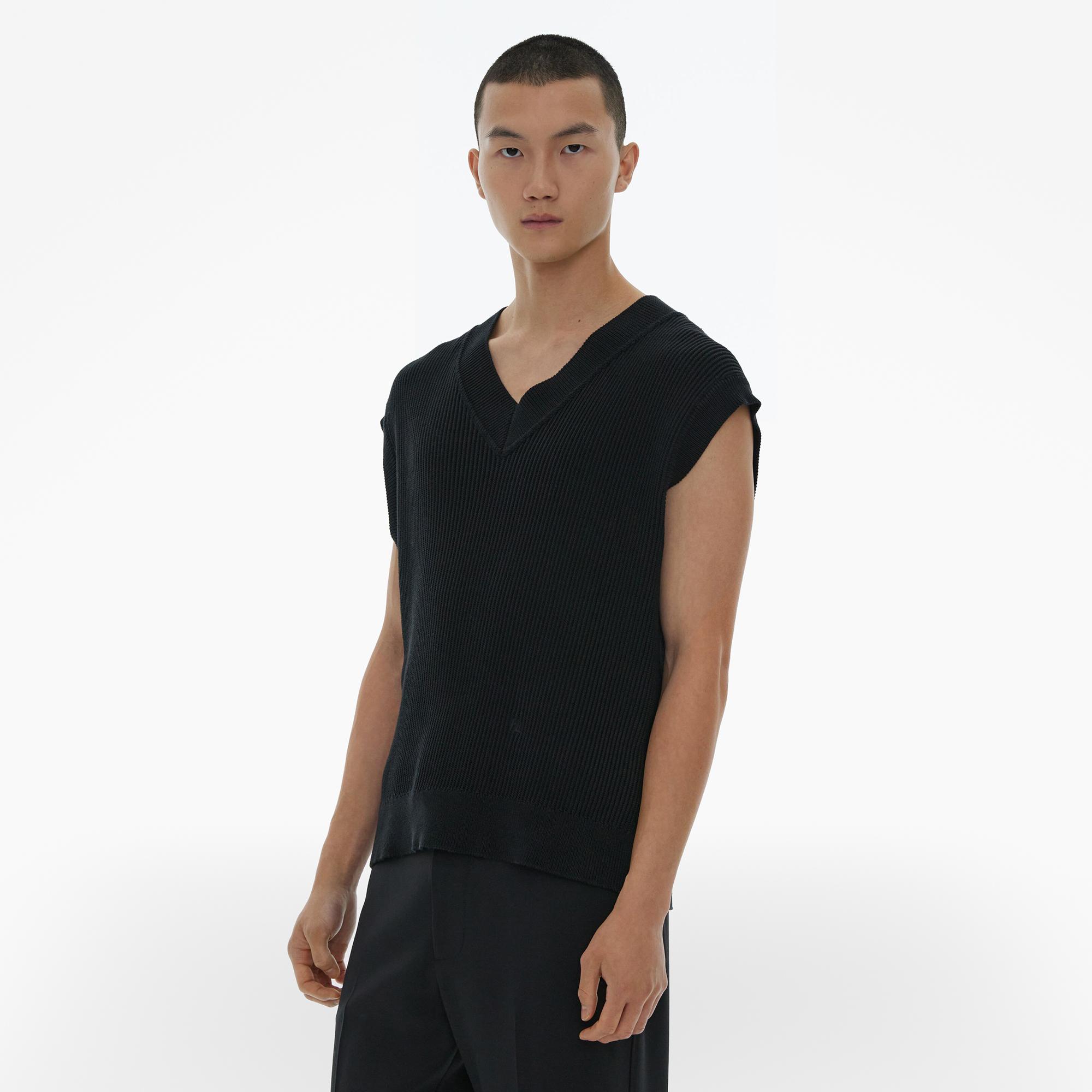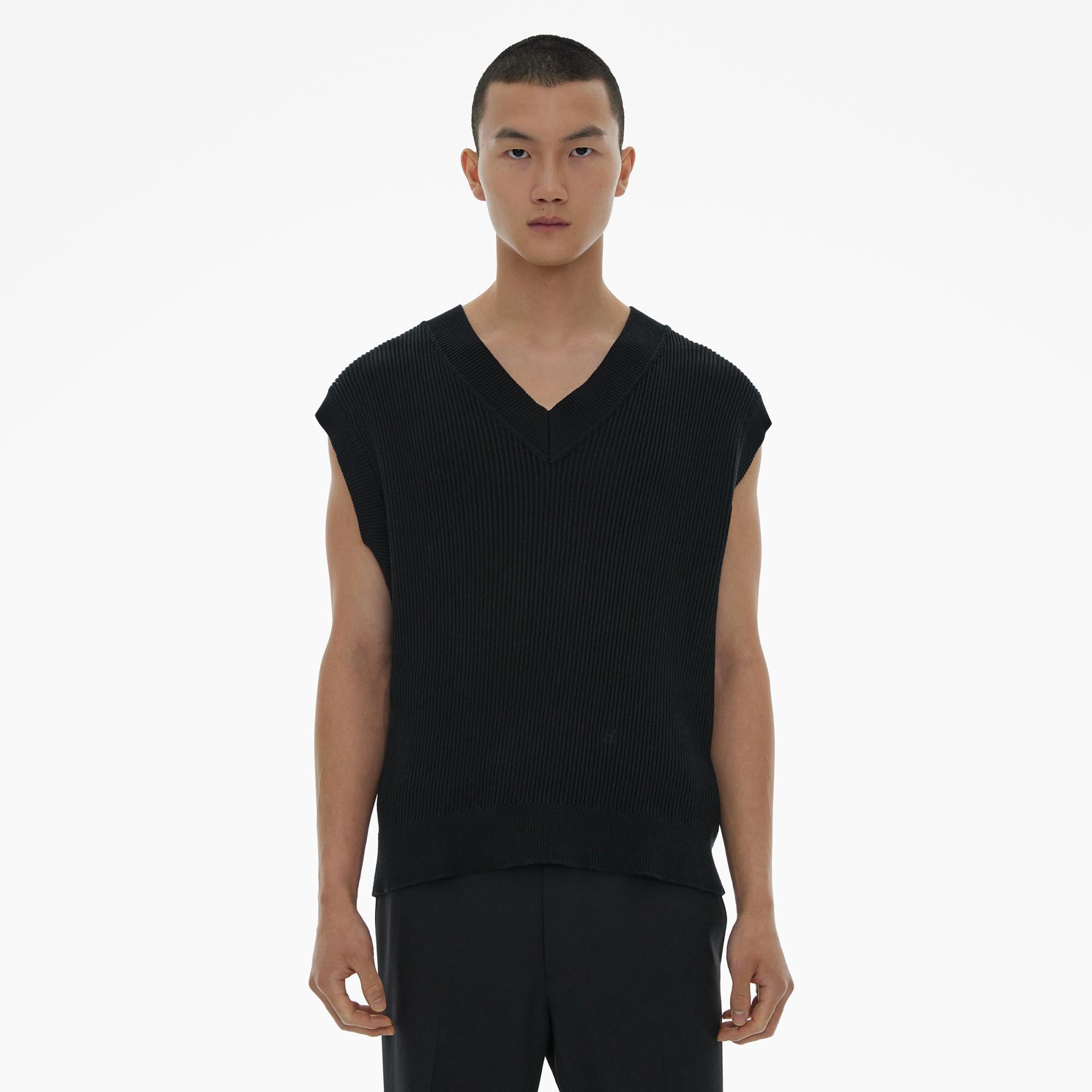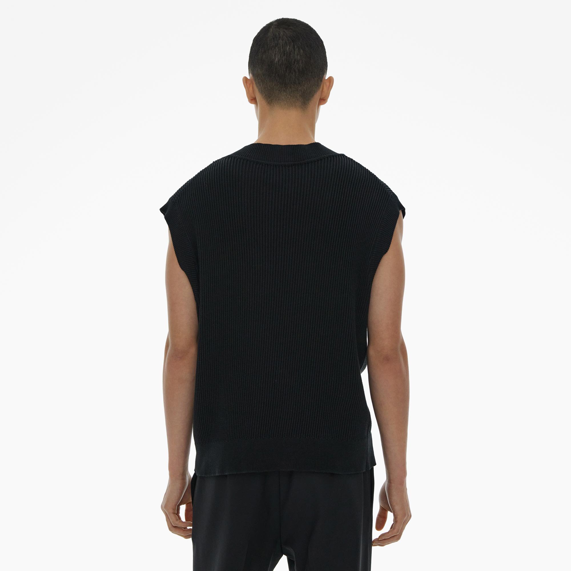The Helmut Lang Sweater Vest is an oversized style in a cotton rib knit with a V-neckline and rib knit trims.