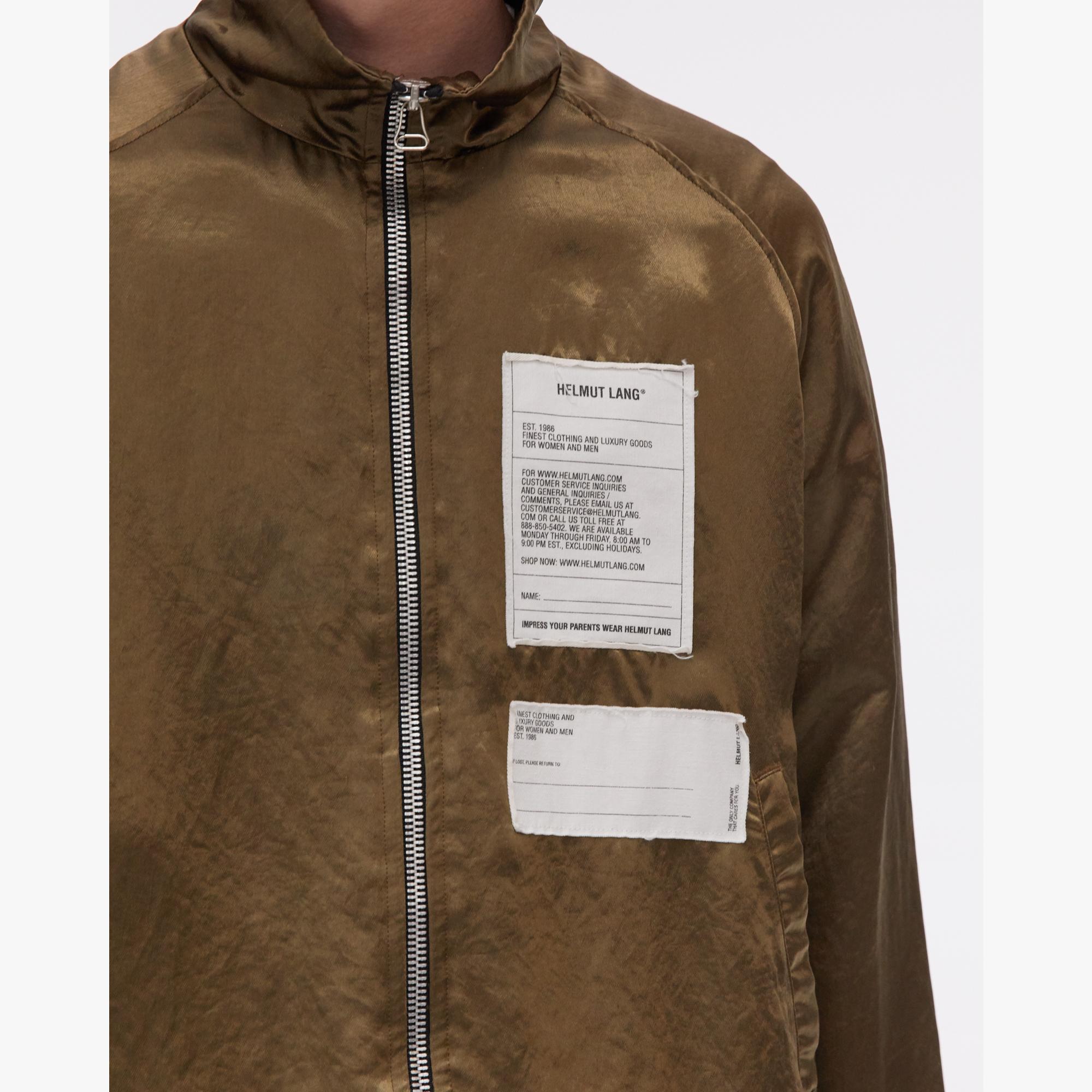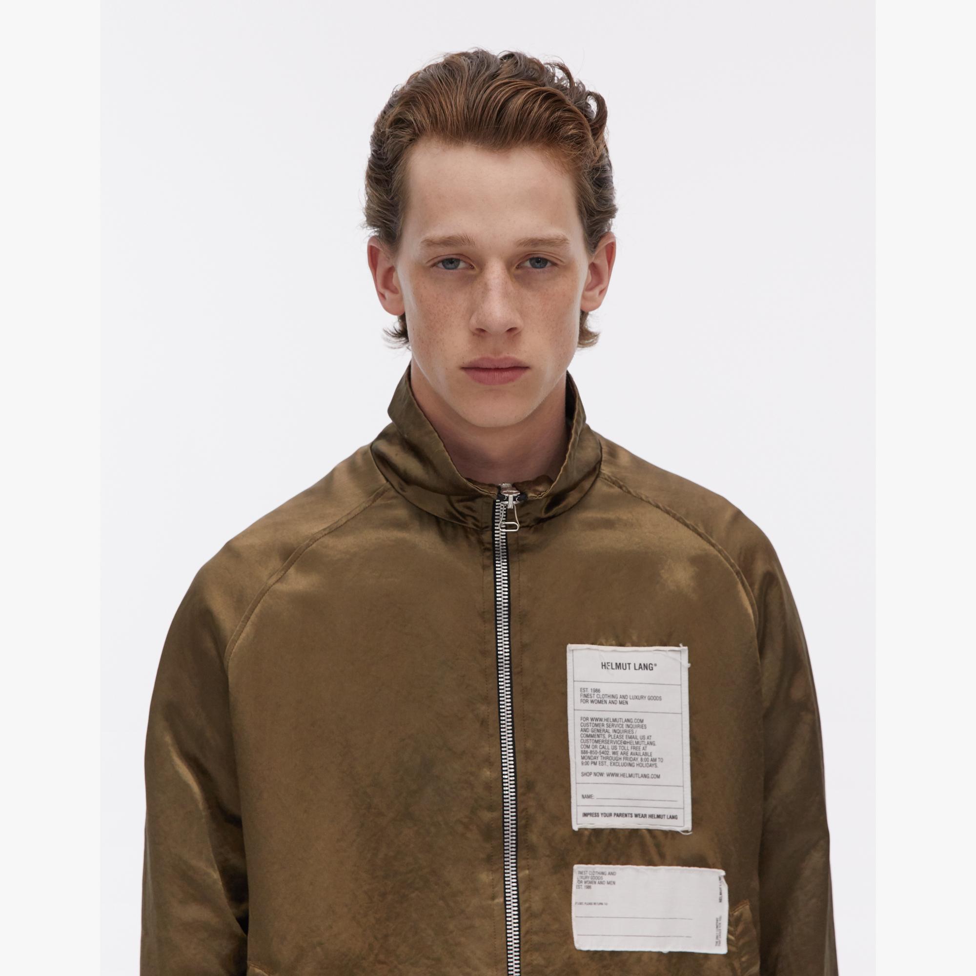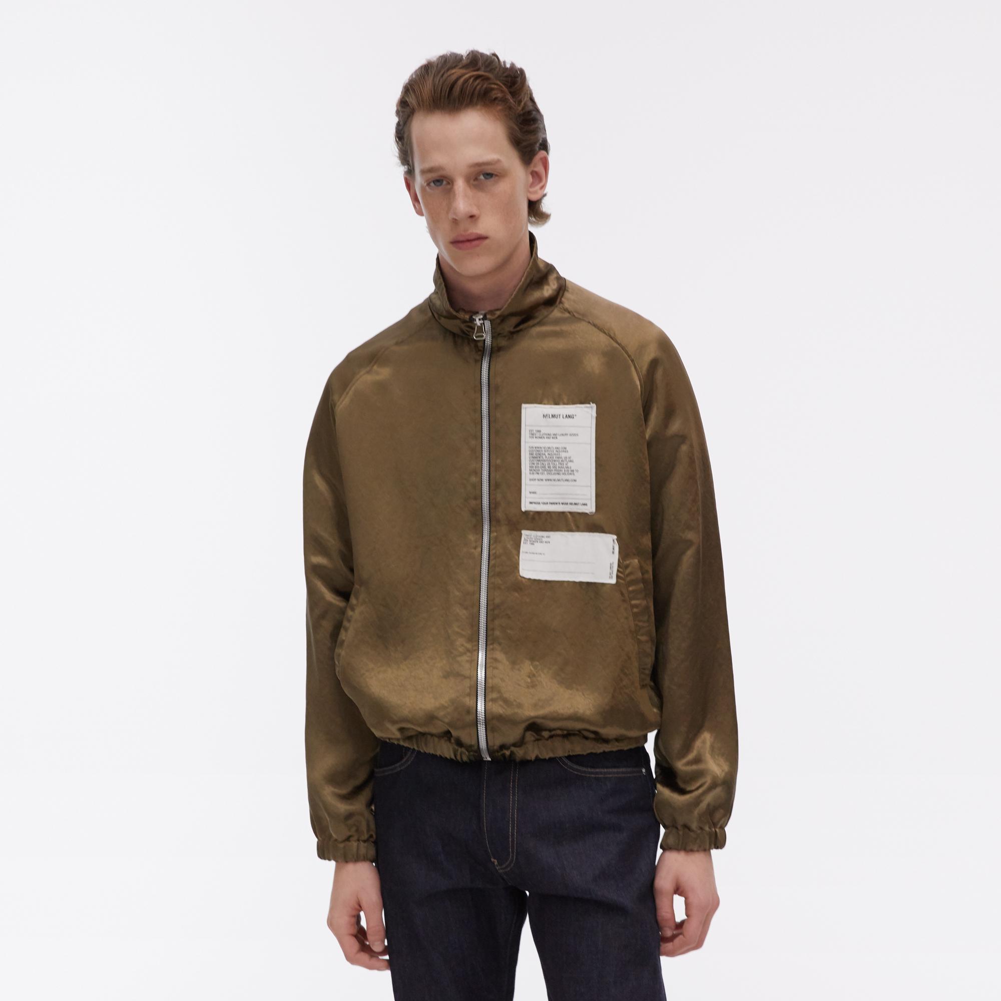 The Helmut Lang Patch Twill Warm Up Jacket is a modern zip-front jacket with twill patches and stretch hem and cuffs