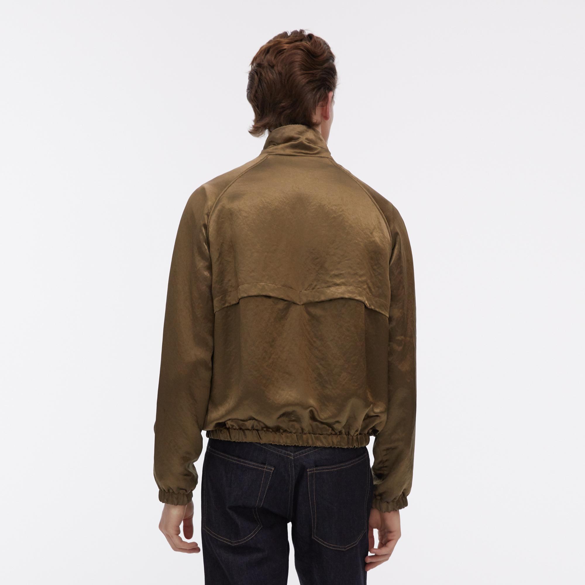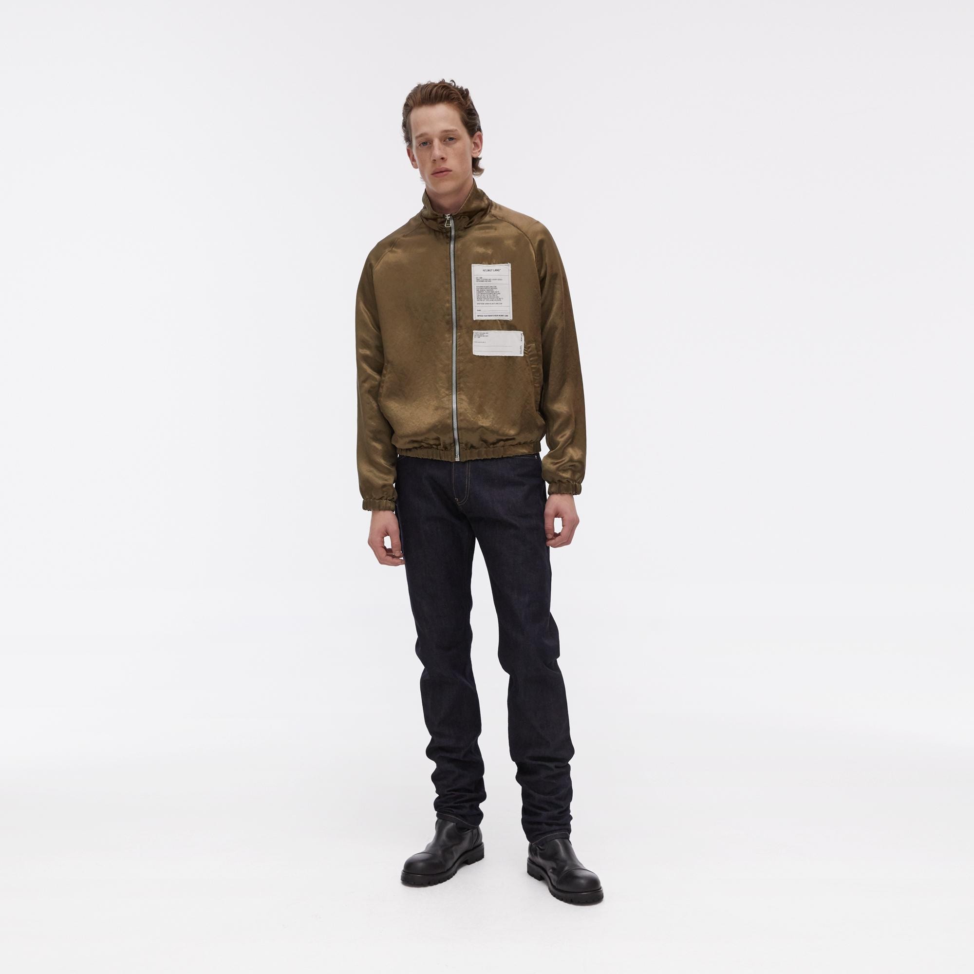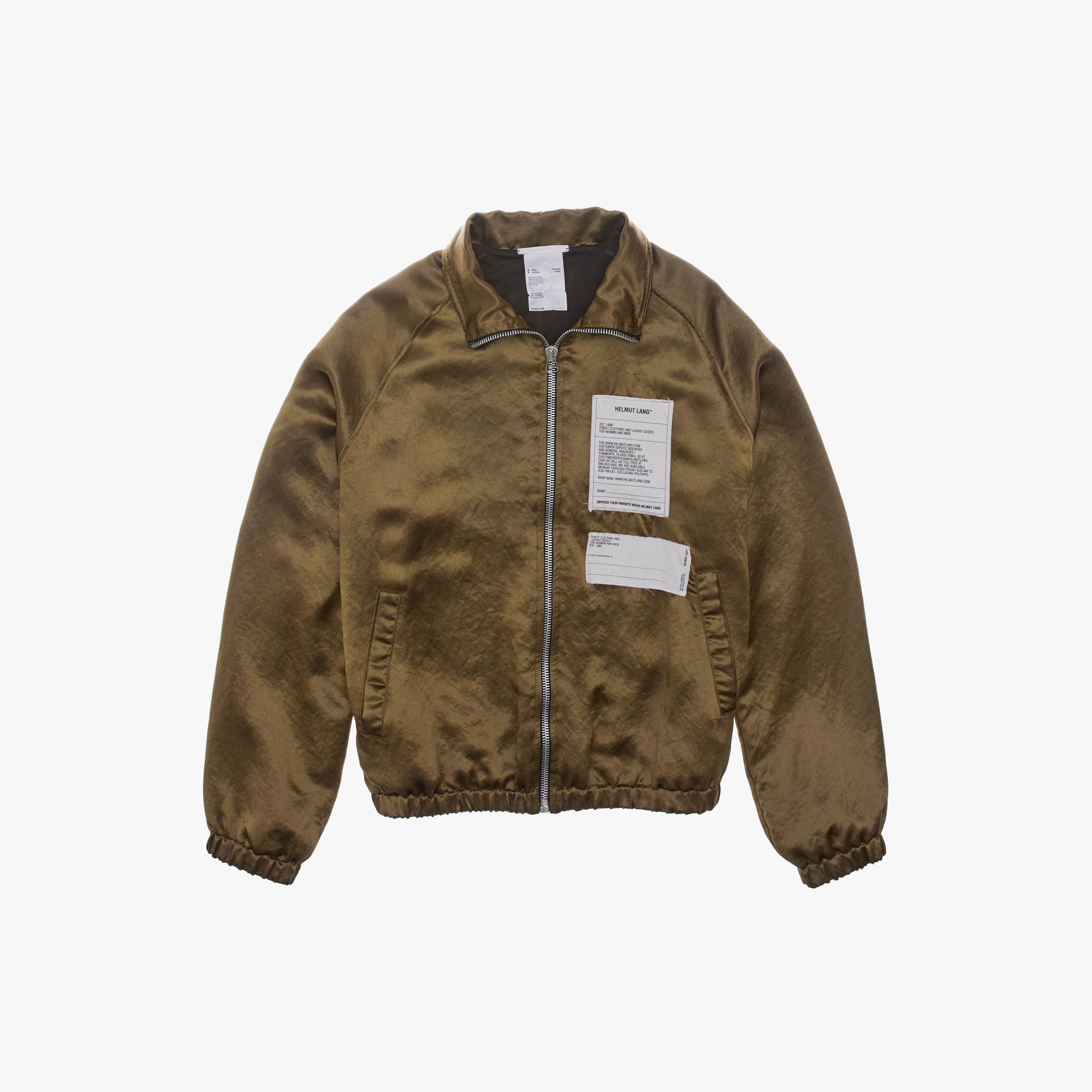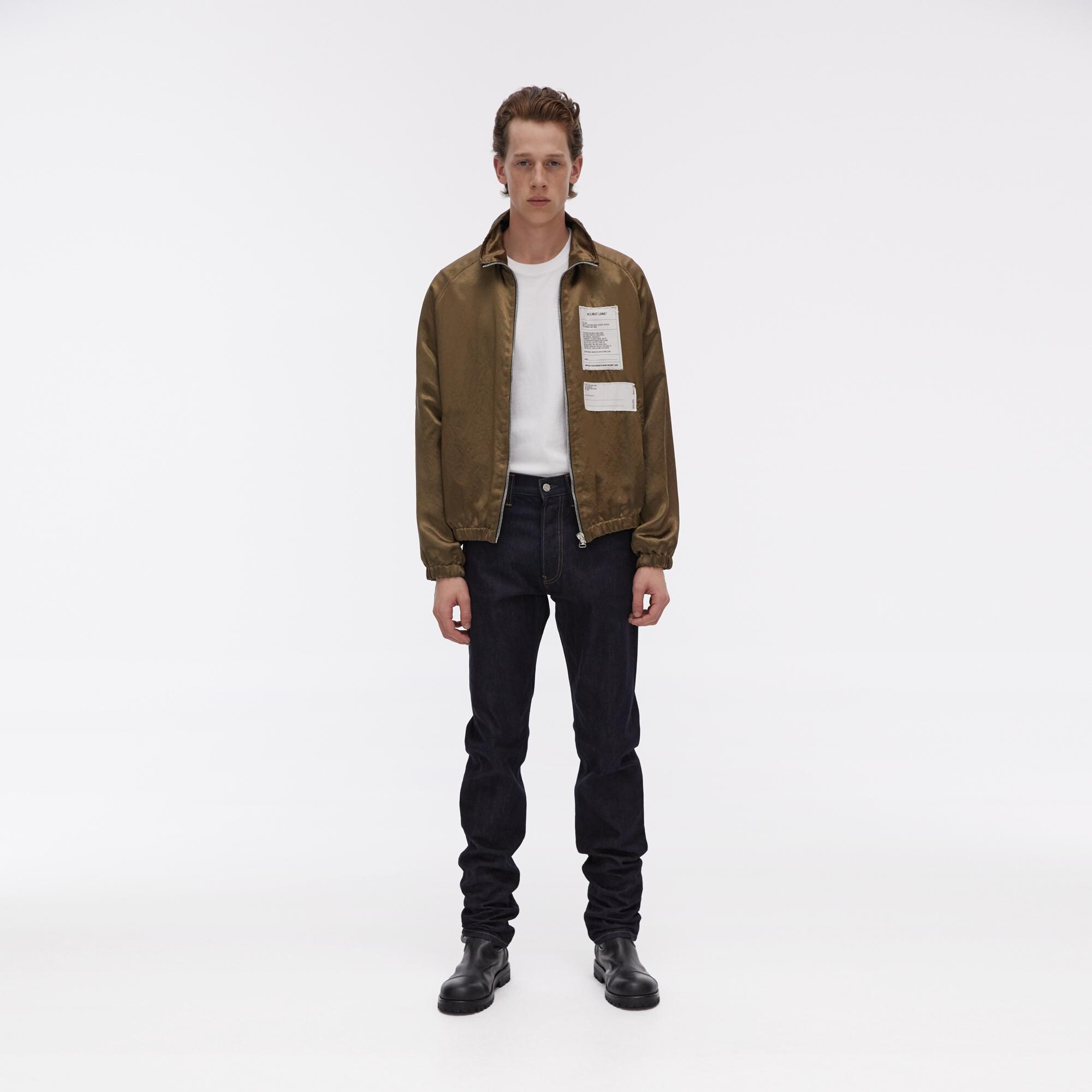 The Helmut Lang Patch Twill Warm Up Jacket is a modern zip-front jacket with twill patches and stretch hem and cuffs