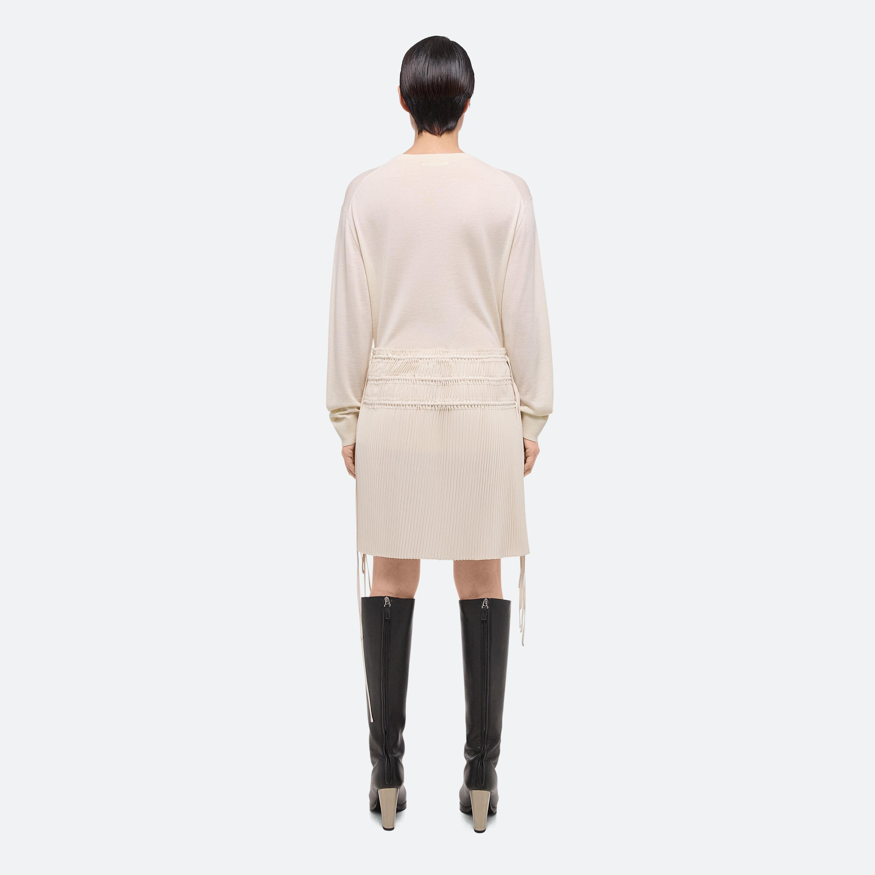 Pleated skirt in satin twill with triple drawstring ties around the hips.