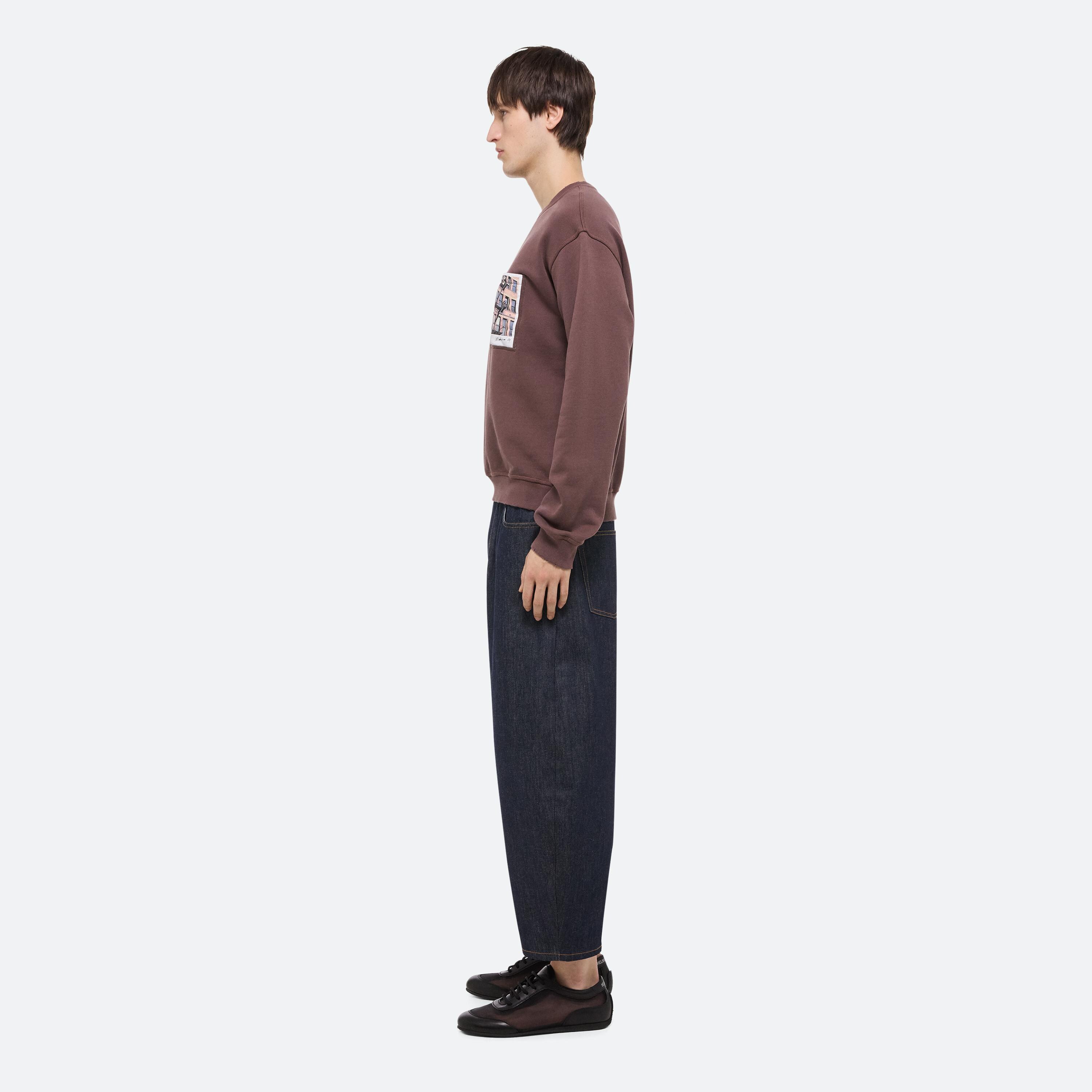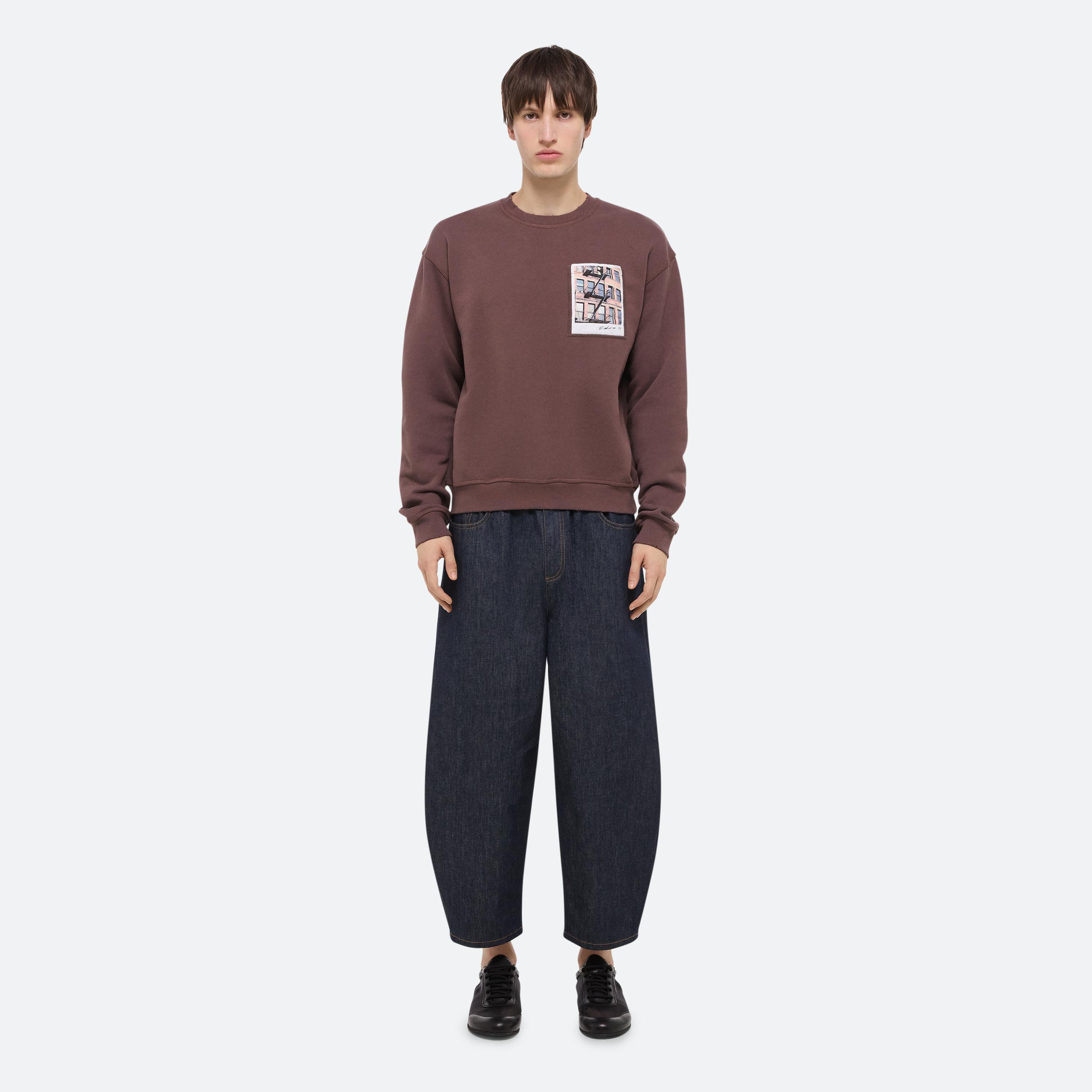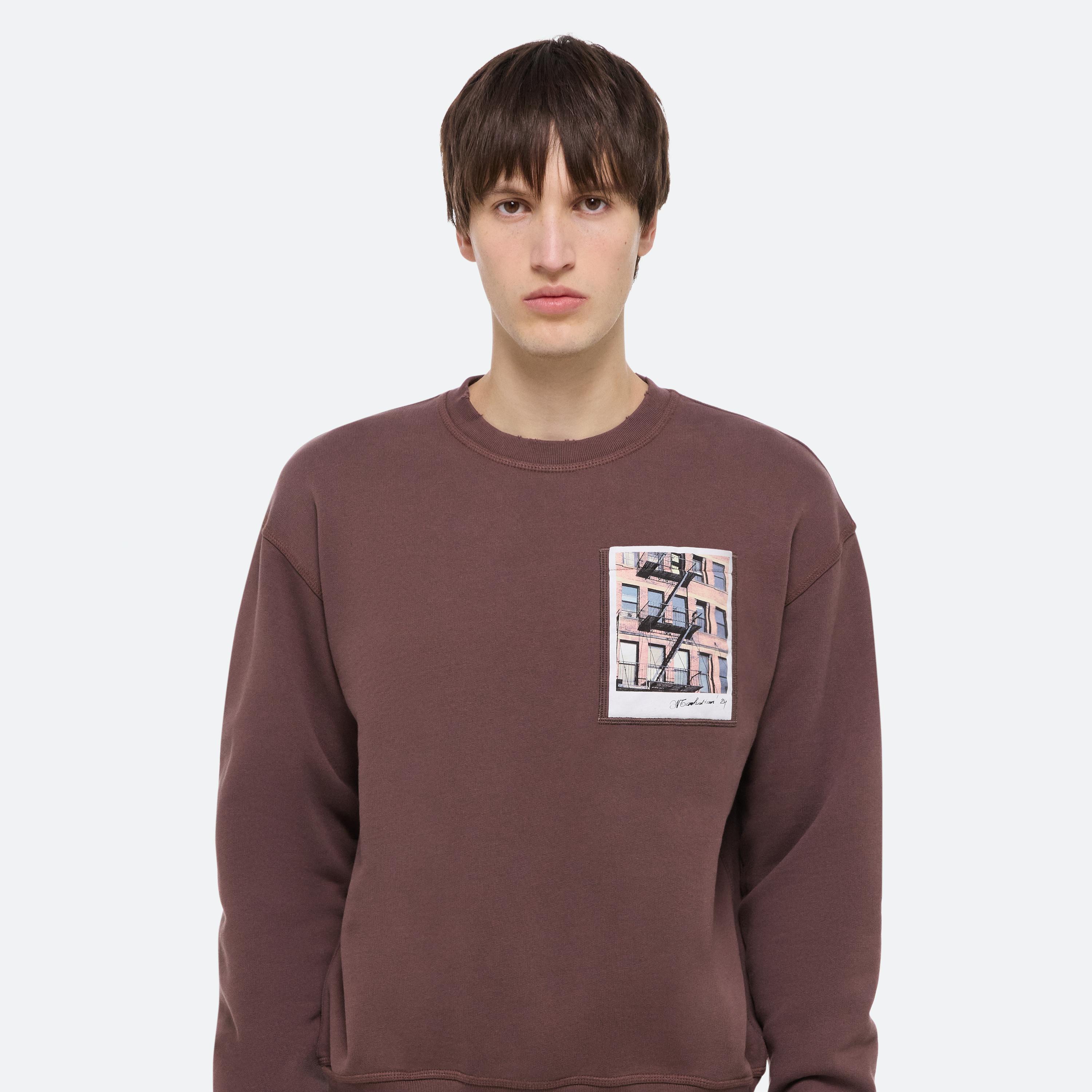 Crewneck sweatshirt with a photograph of the city shot by Peter Do, Helmut Lang’s Creative Director, on the chest pocket. Finished with an enzyme wash and gentle distressing to create the feel of a long-time favorite.