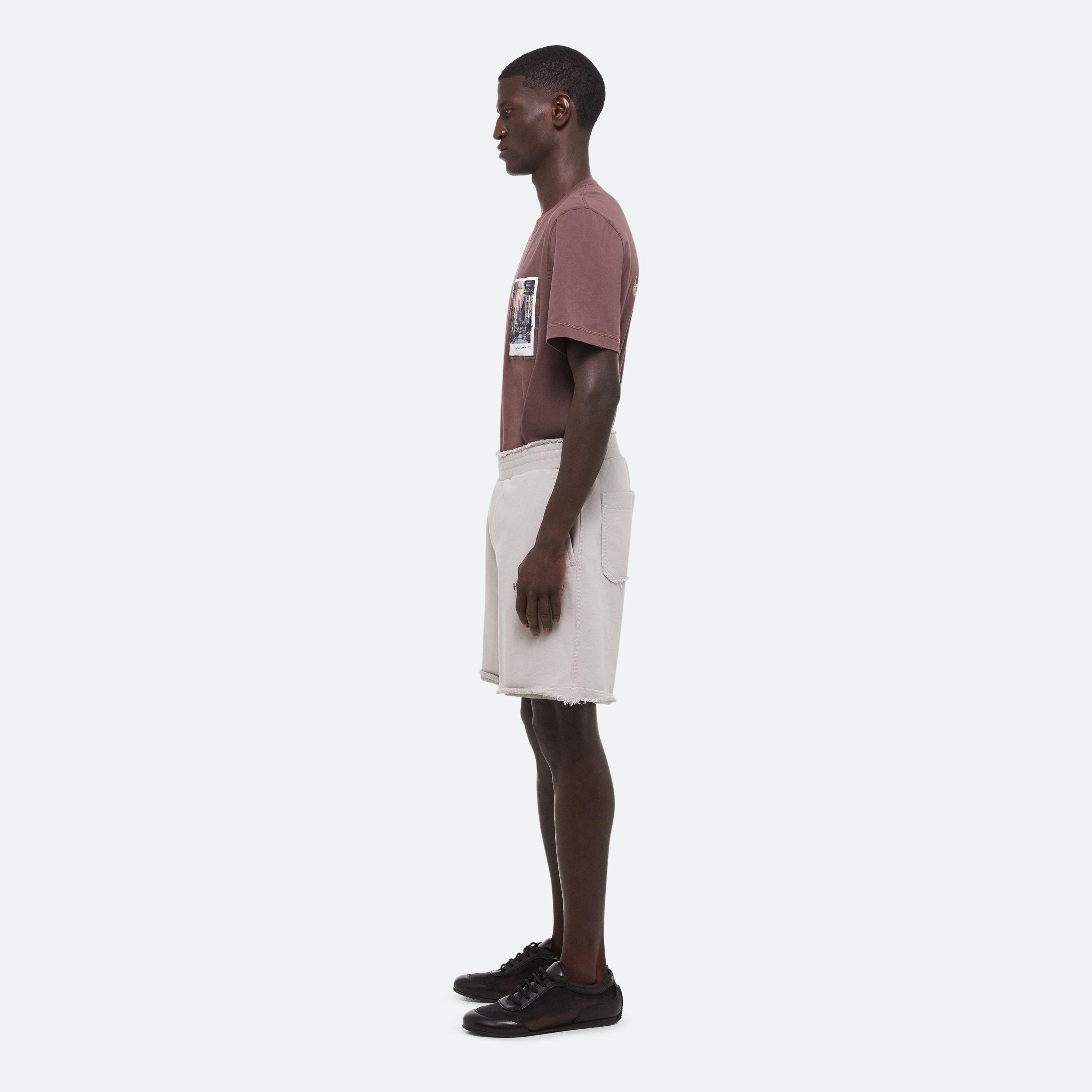 Cotton terry shorts with logo text on leg. Gentle distressing creates the feeling of a long-time favorite.