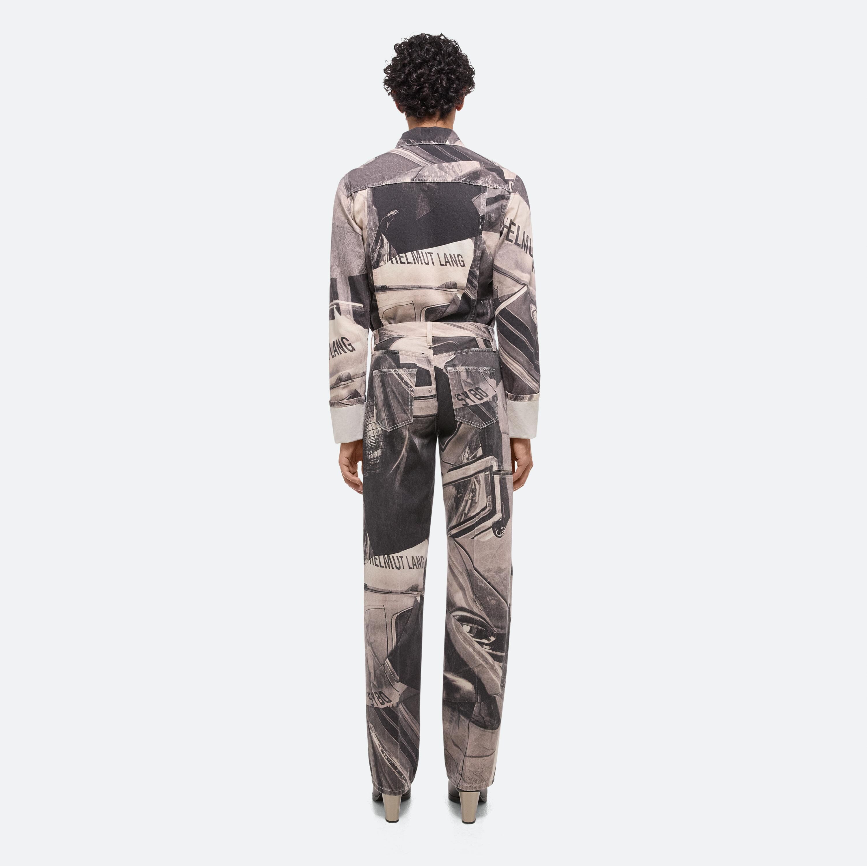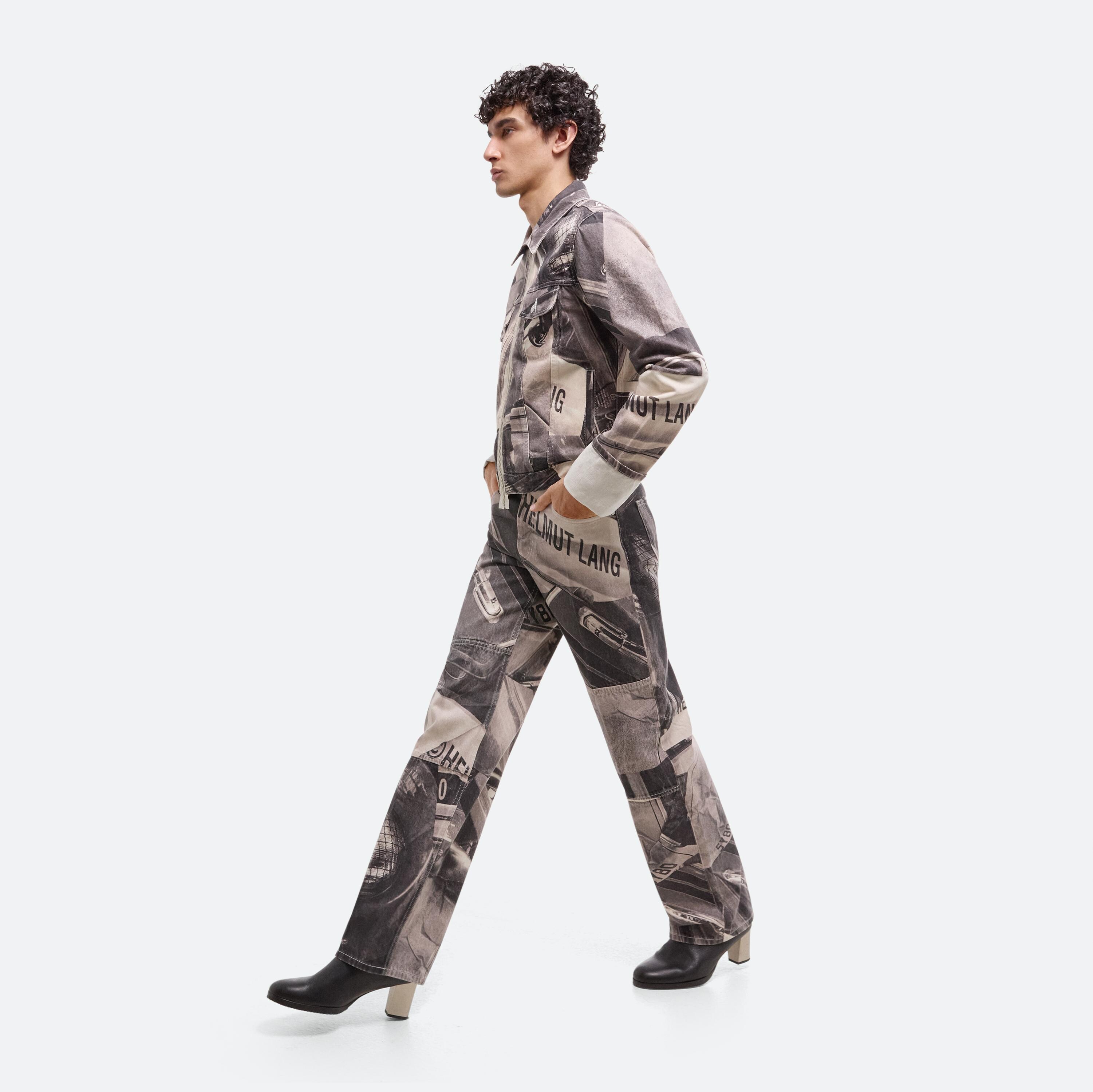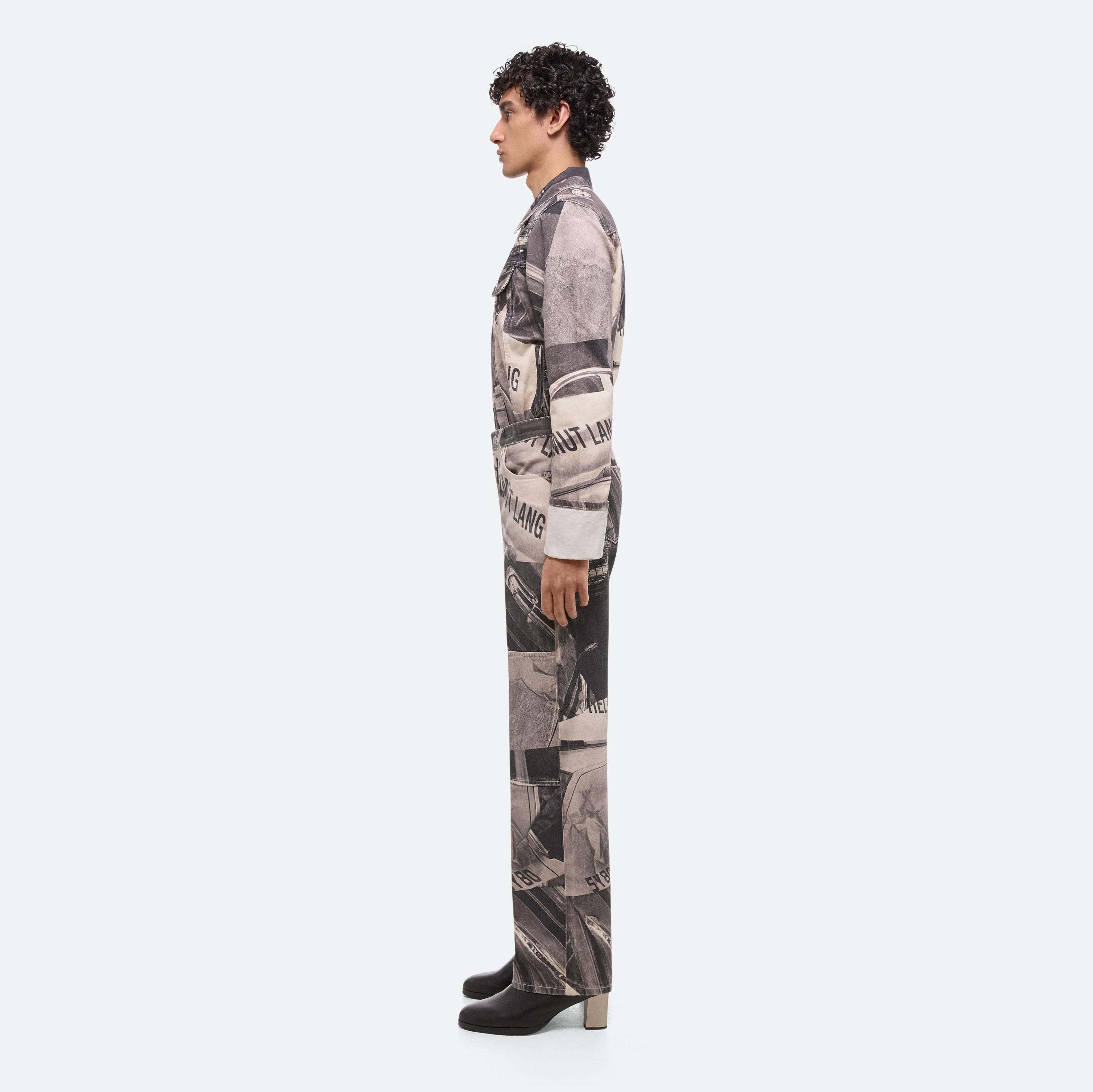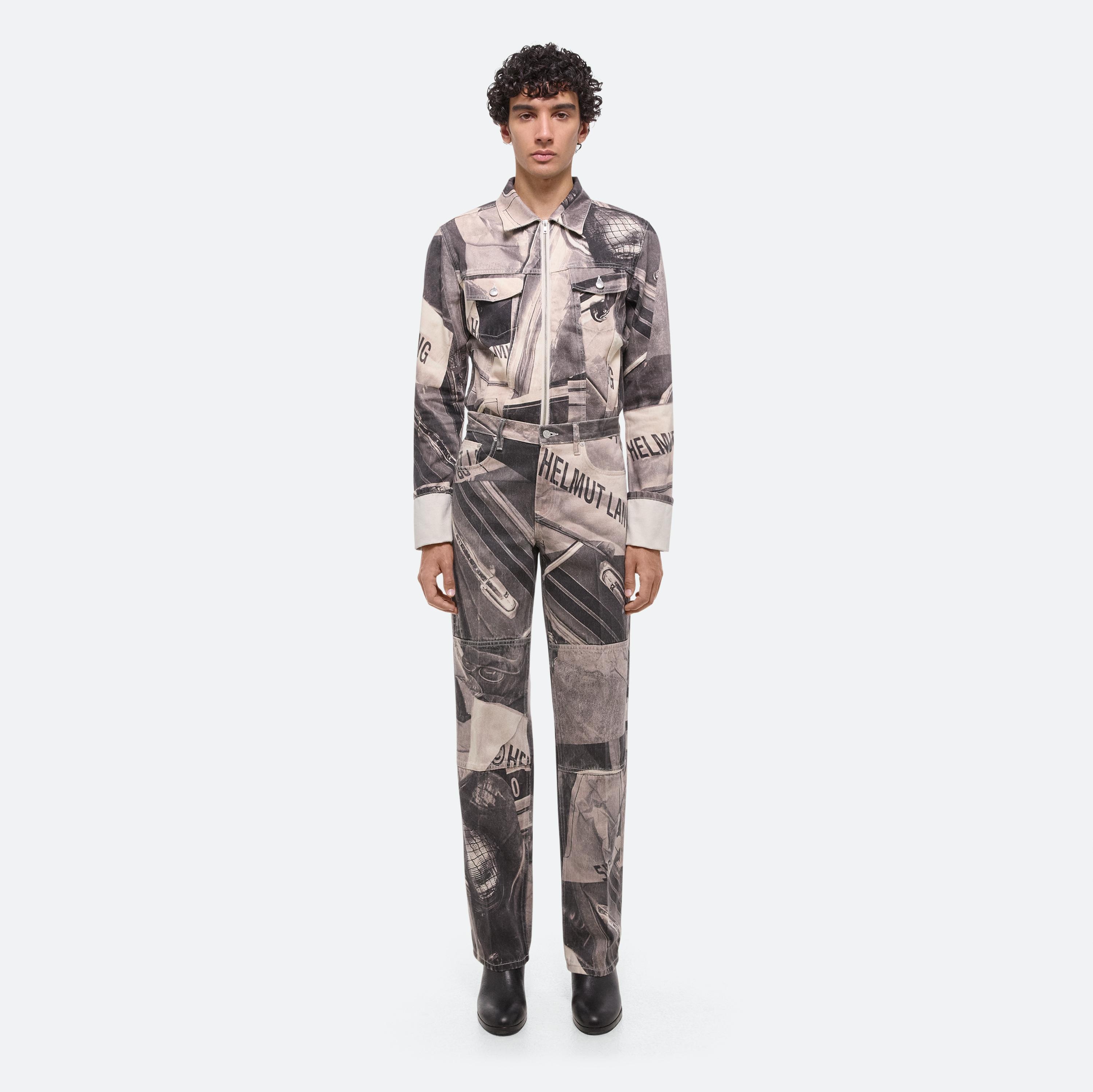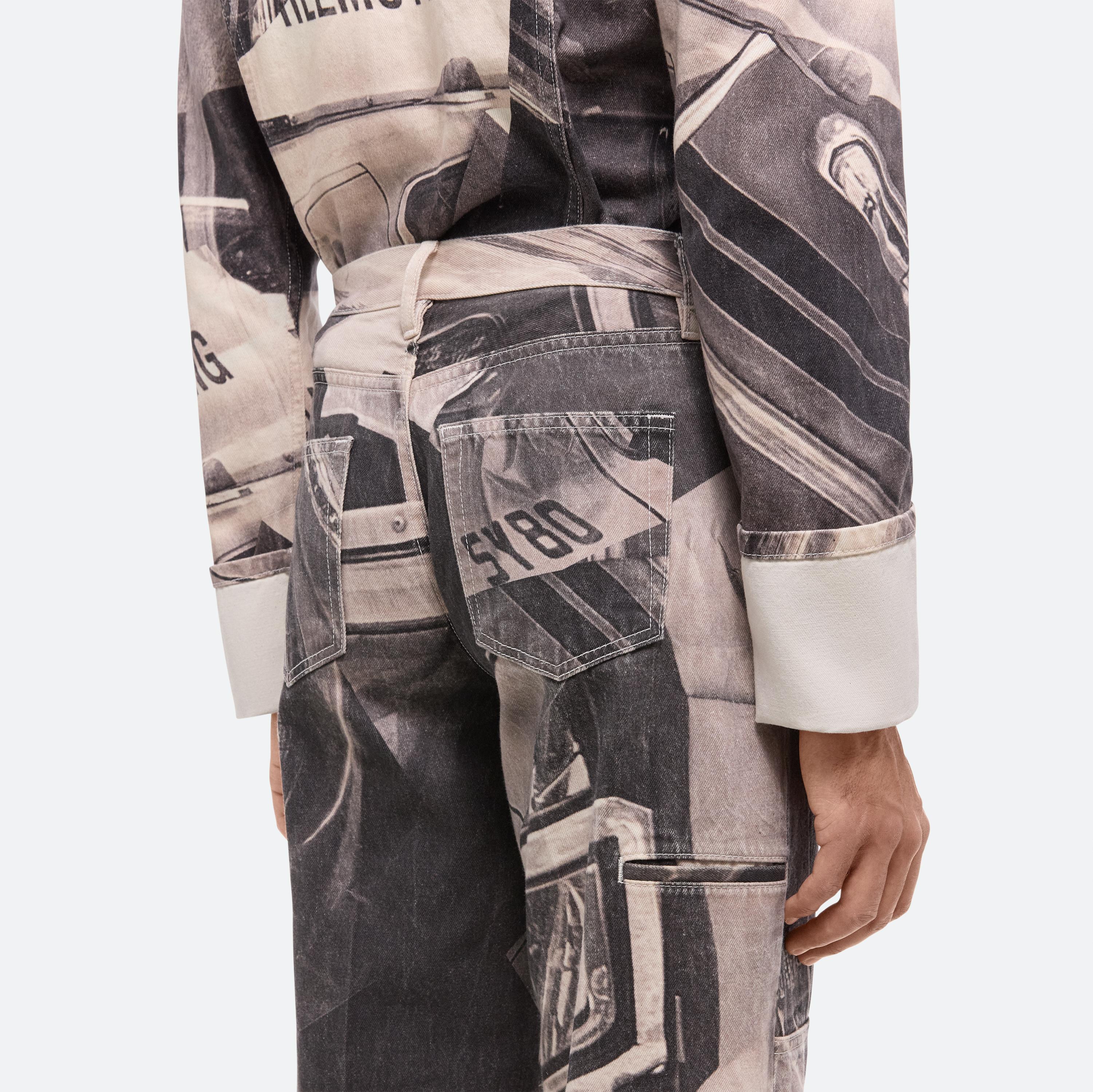 Relaxed fit denim carpenter jeans featuring classic utilitarian details. Printed with a custom car graphic developed by our design studio.