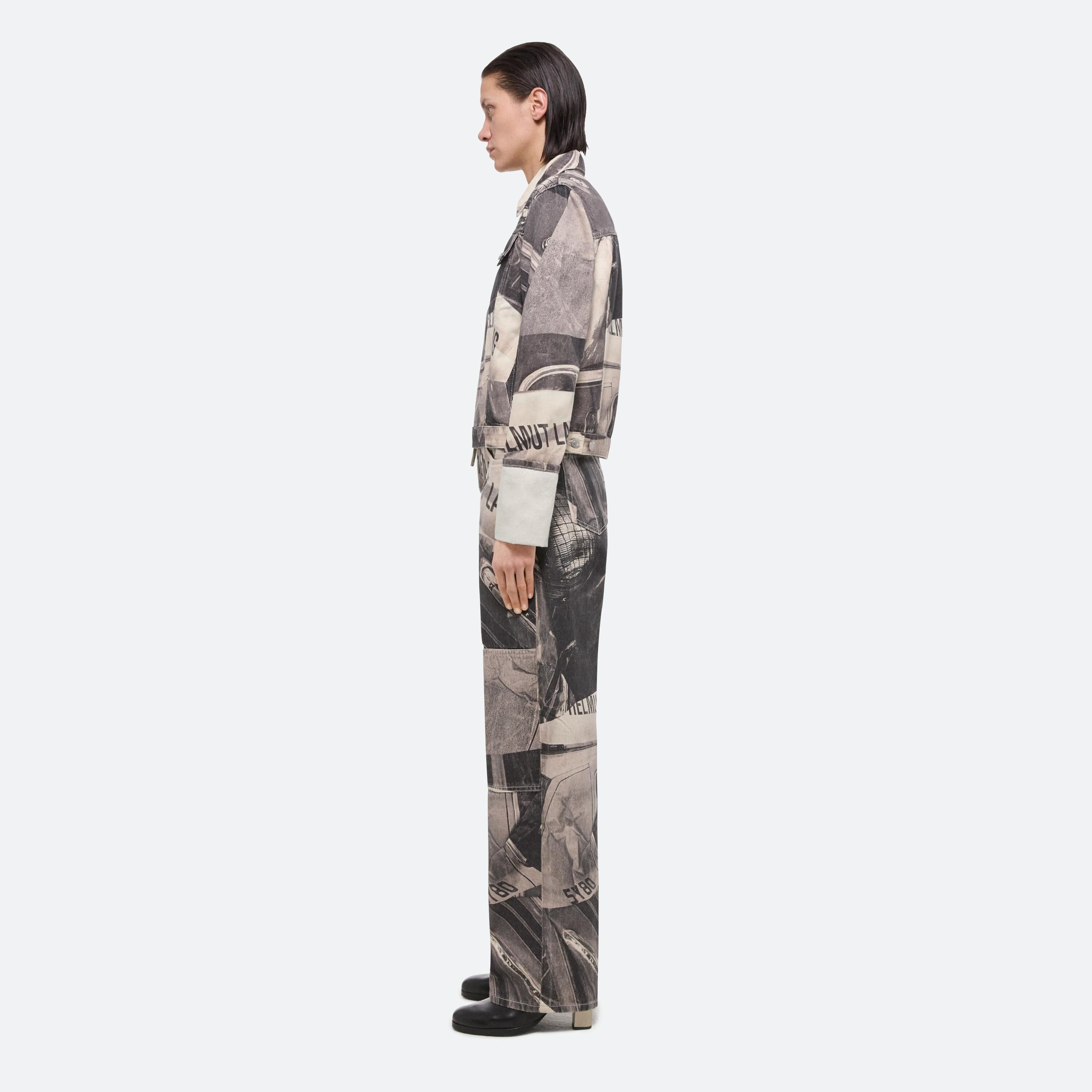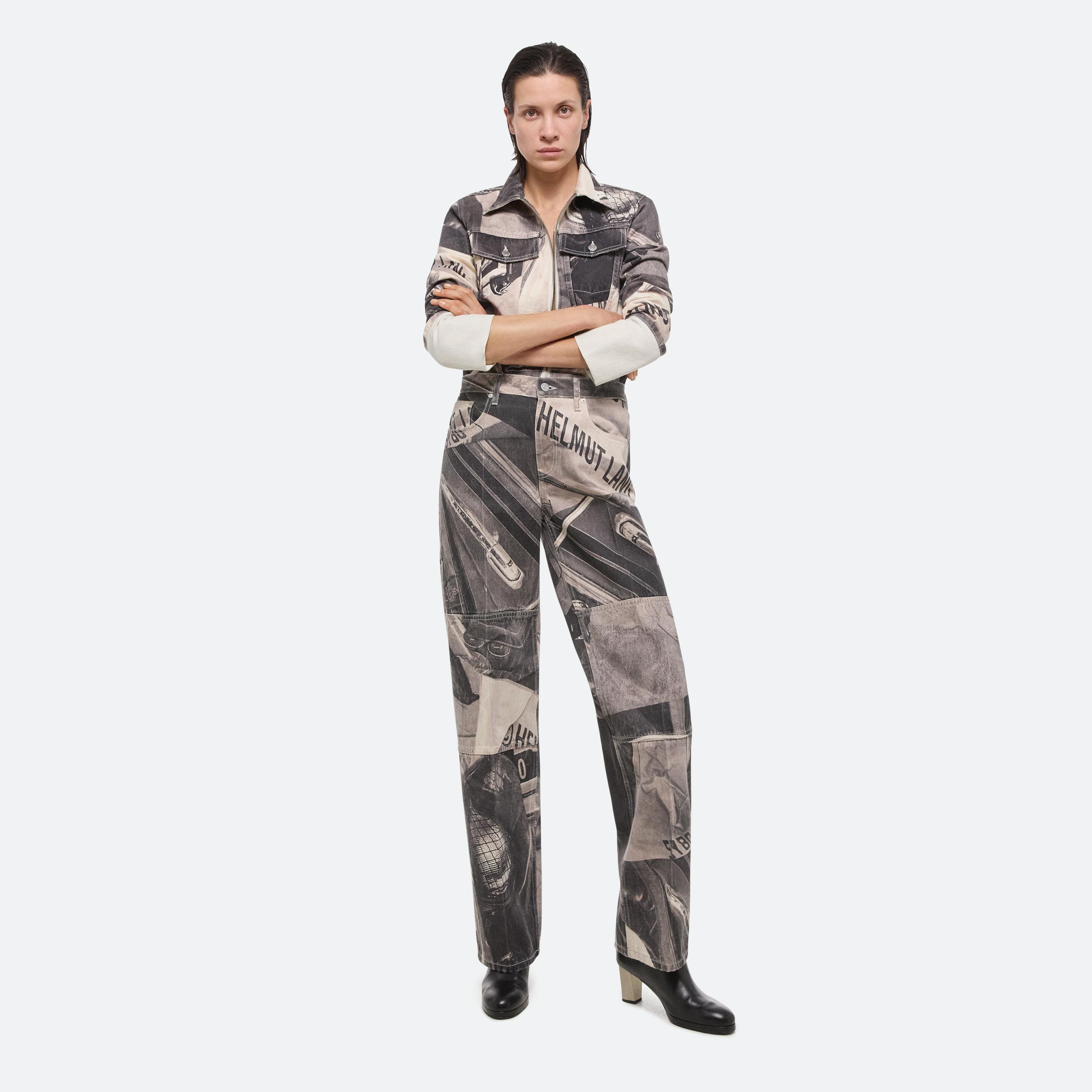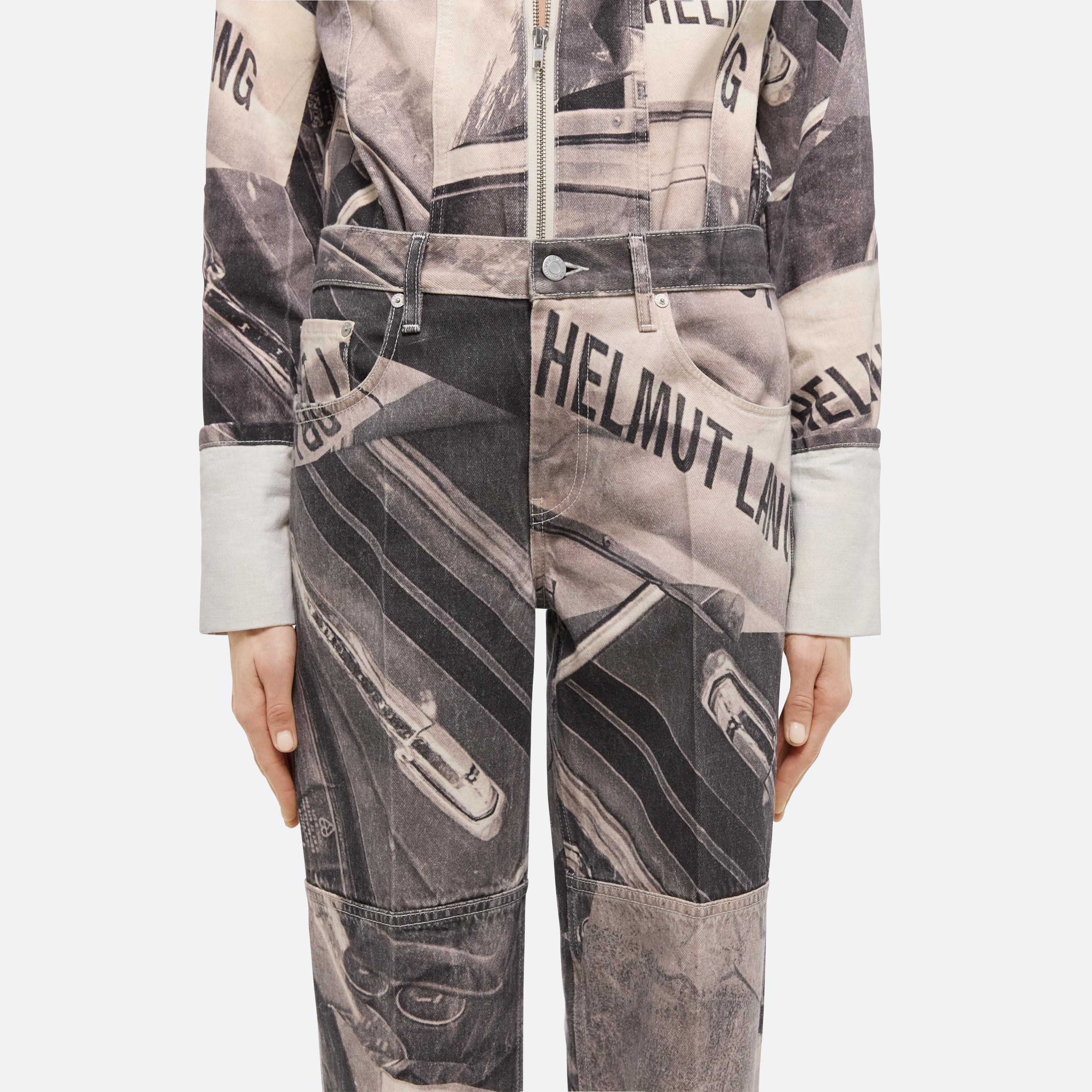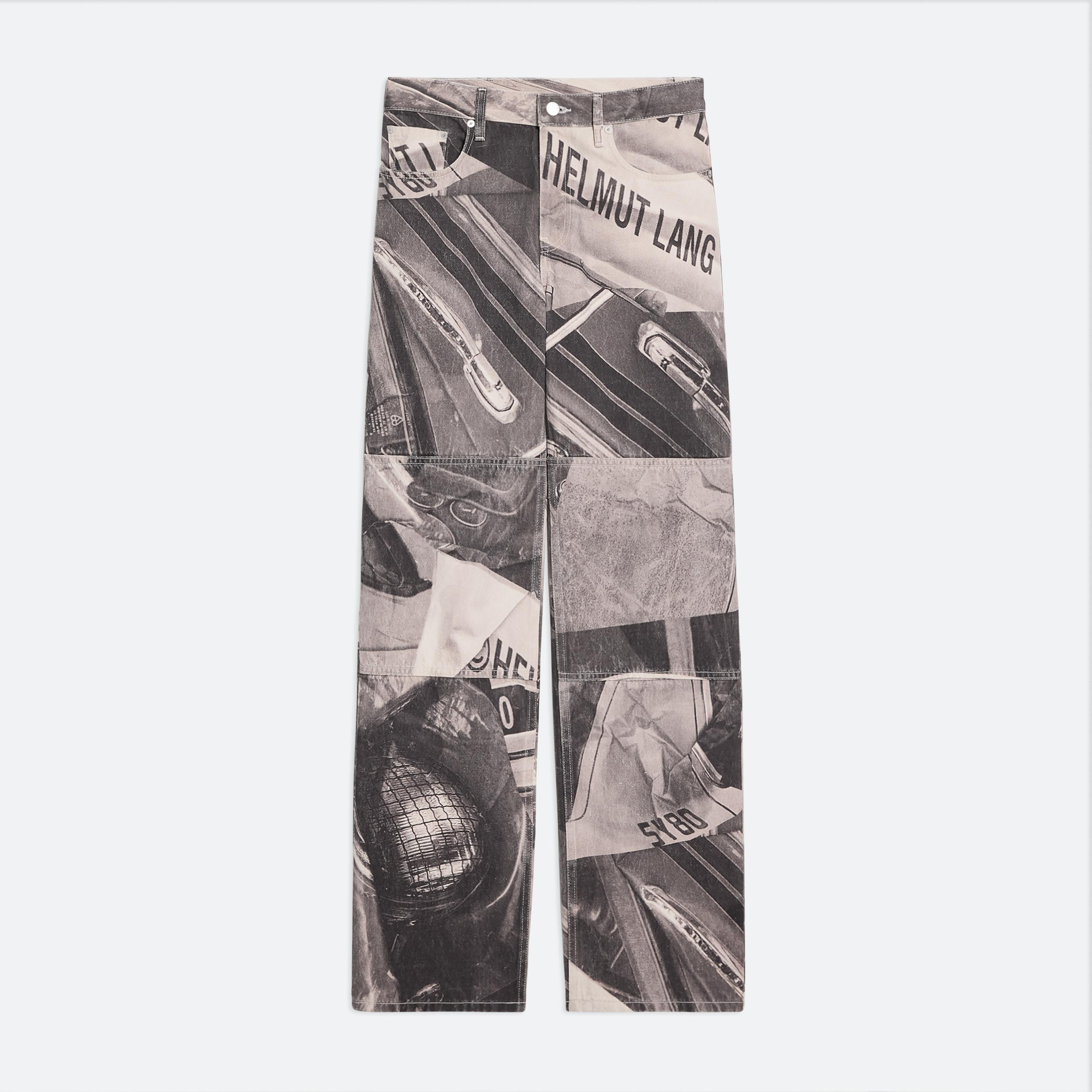 Relaxed fit denim carpenter jeans featuring classic utilitarian details. Printed with a custom car graphic developed by our design studio.
