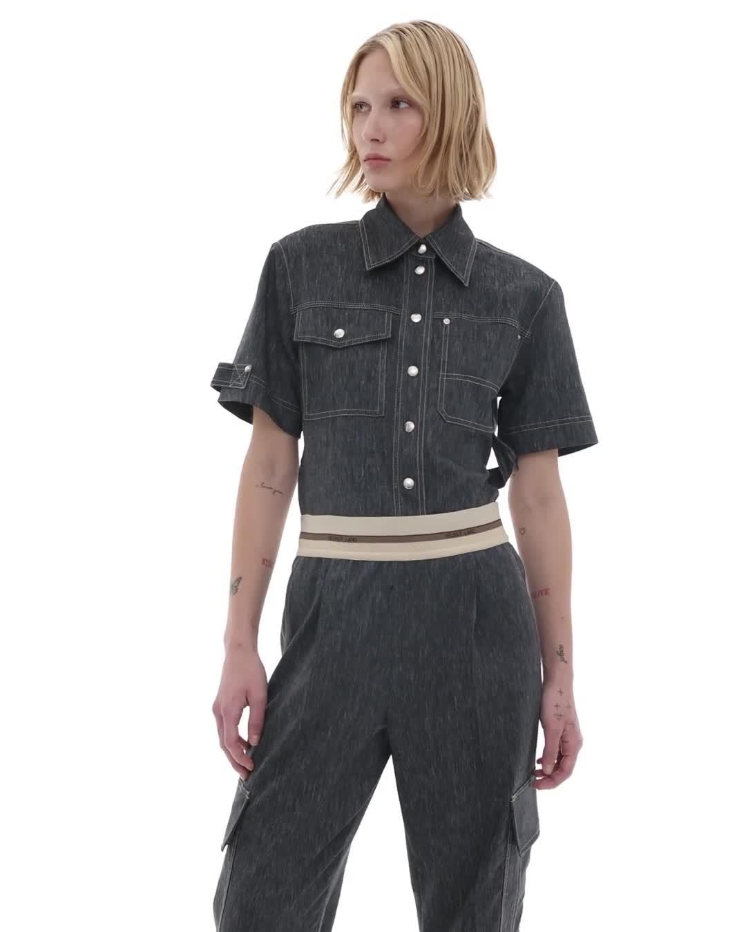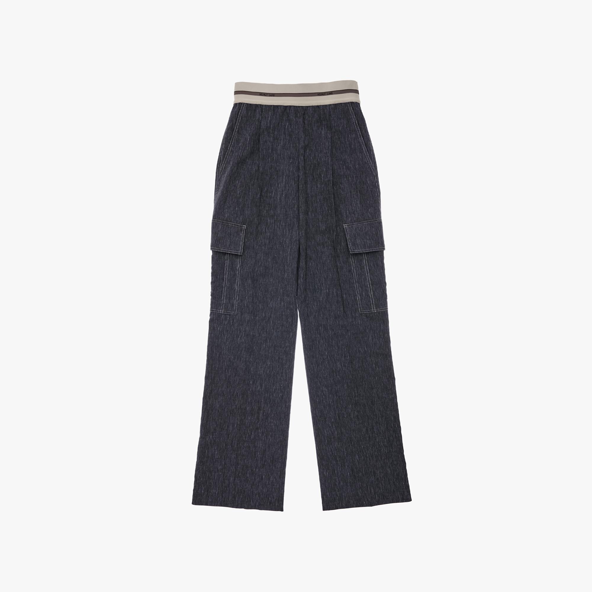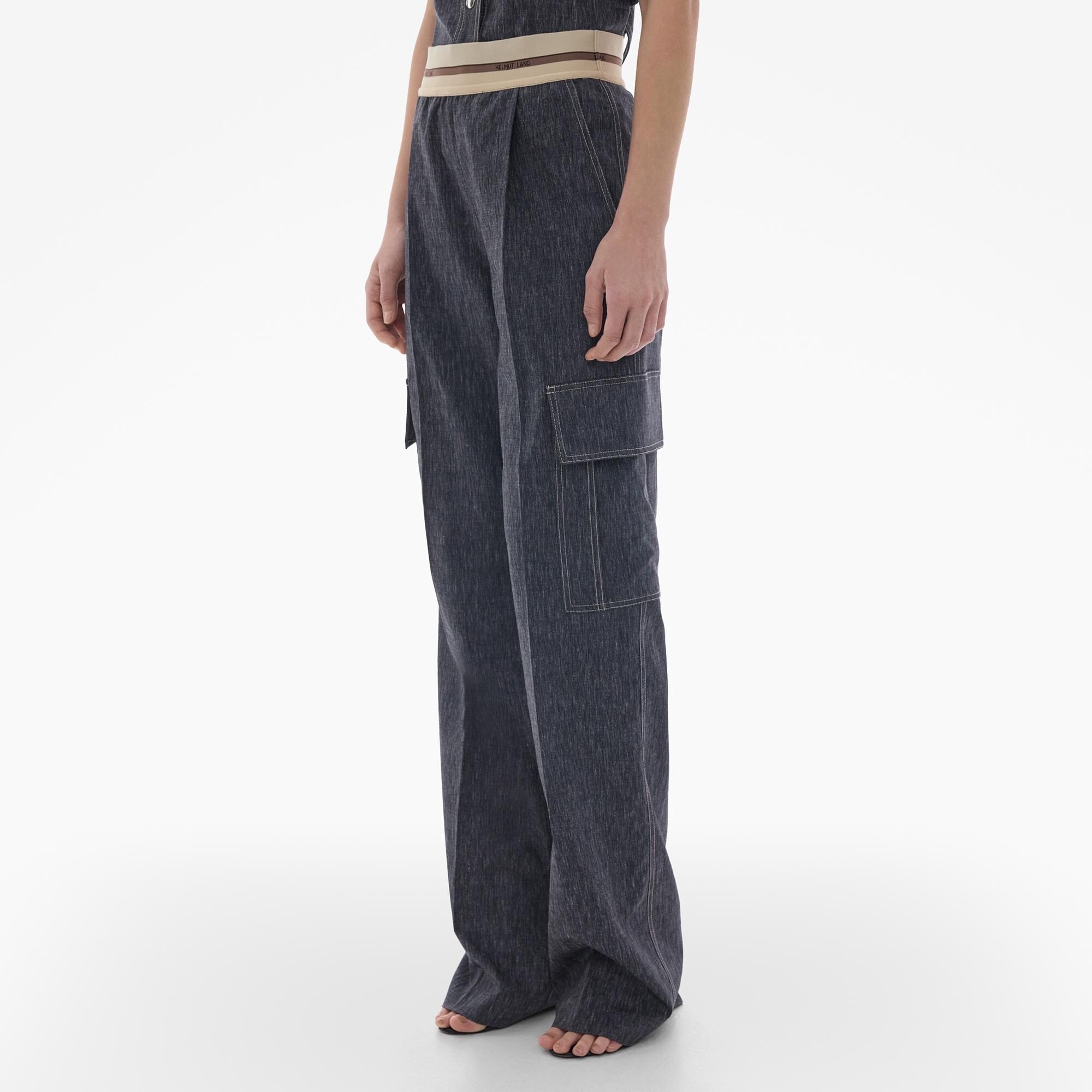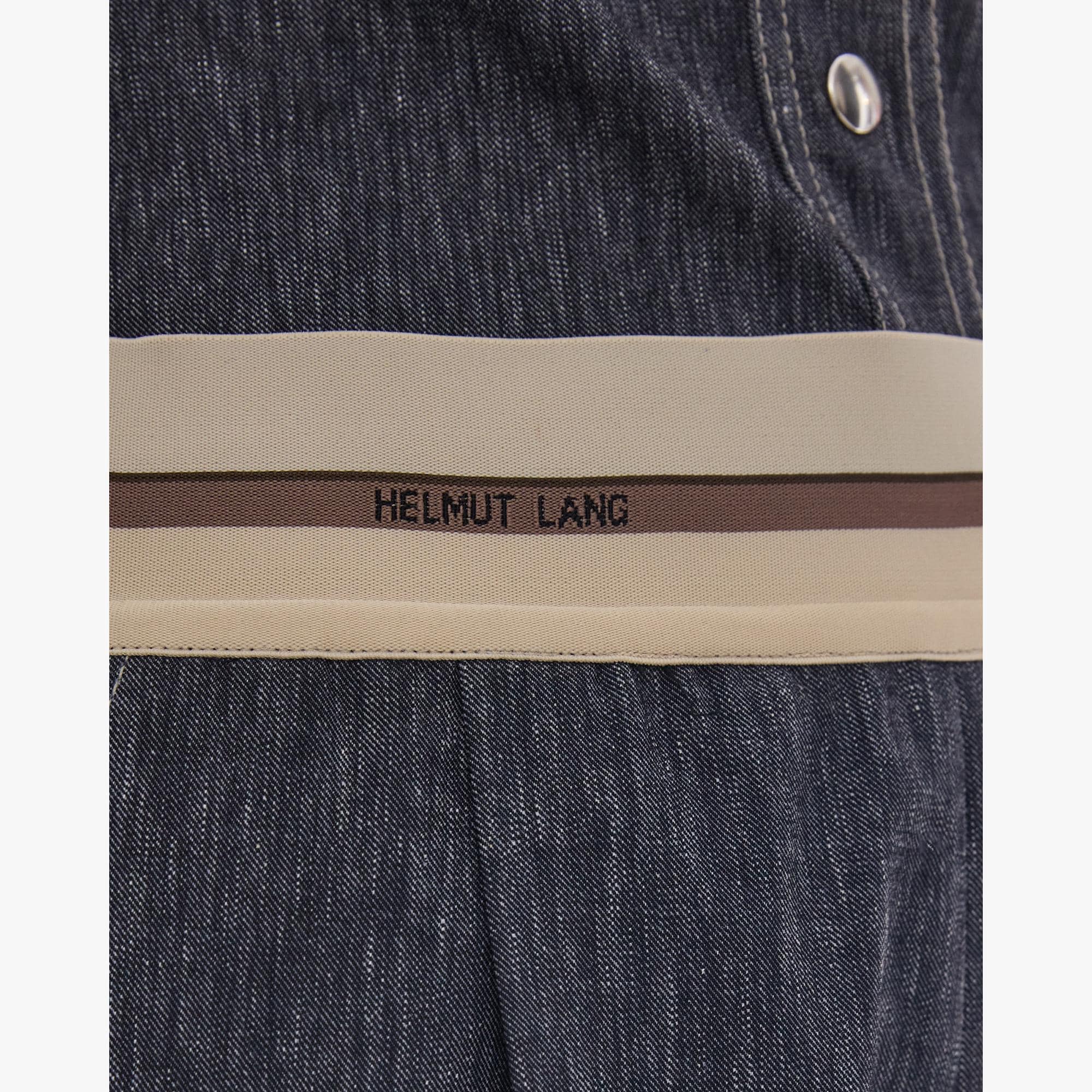 The Helmut Lang Pull-On Pant is a wide-leg style in a blended stretch linen twill with a drawstring elasticized waistband, side zip, and cargo pockets.