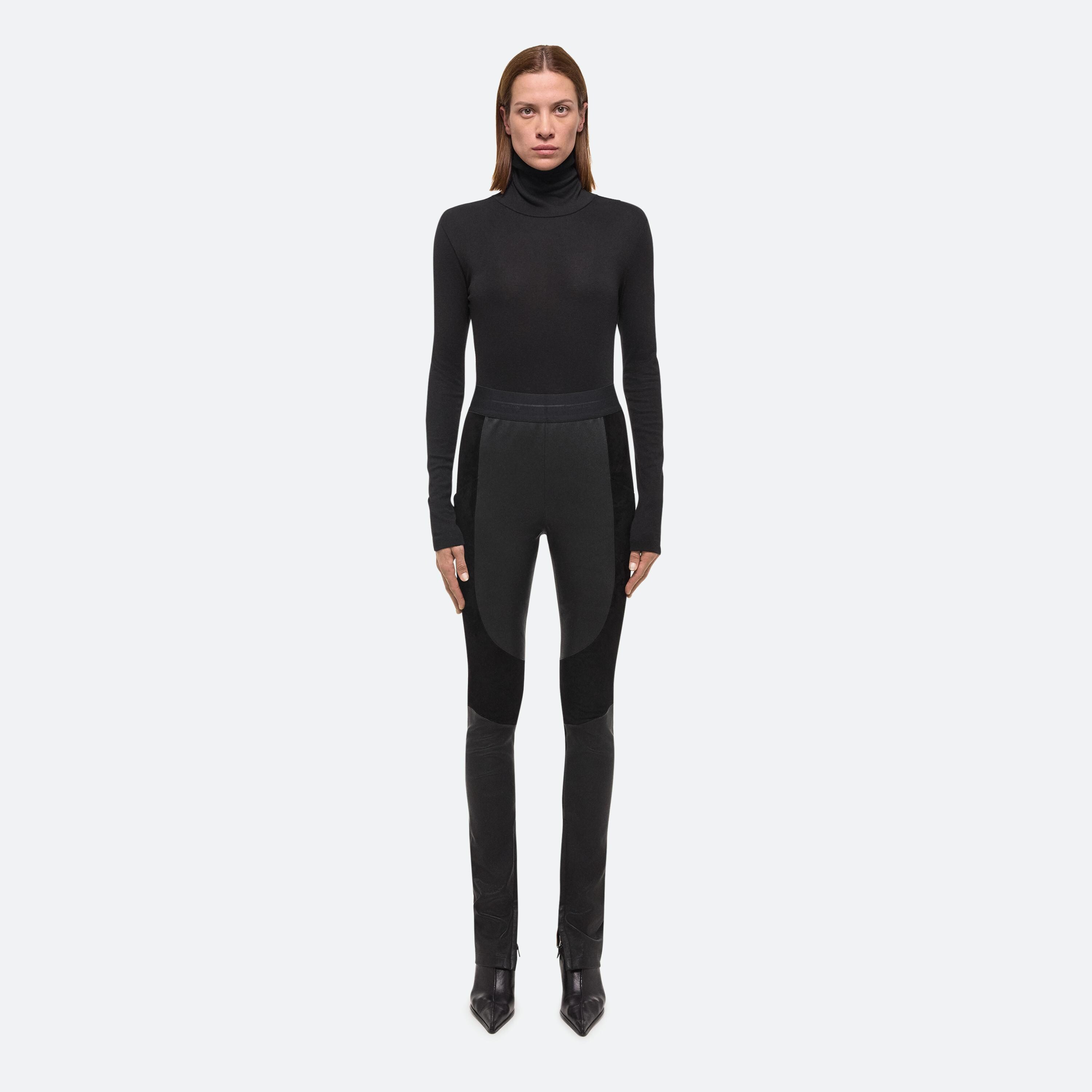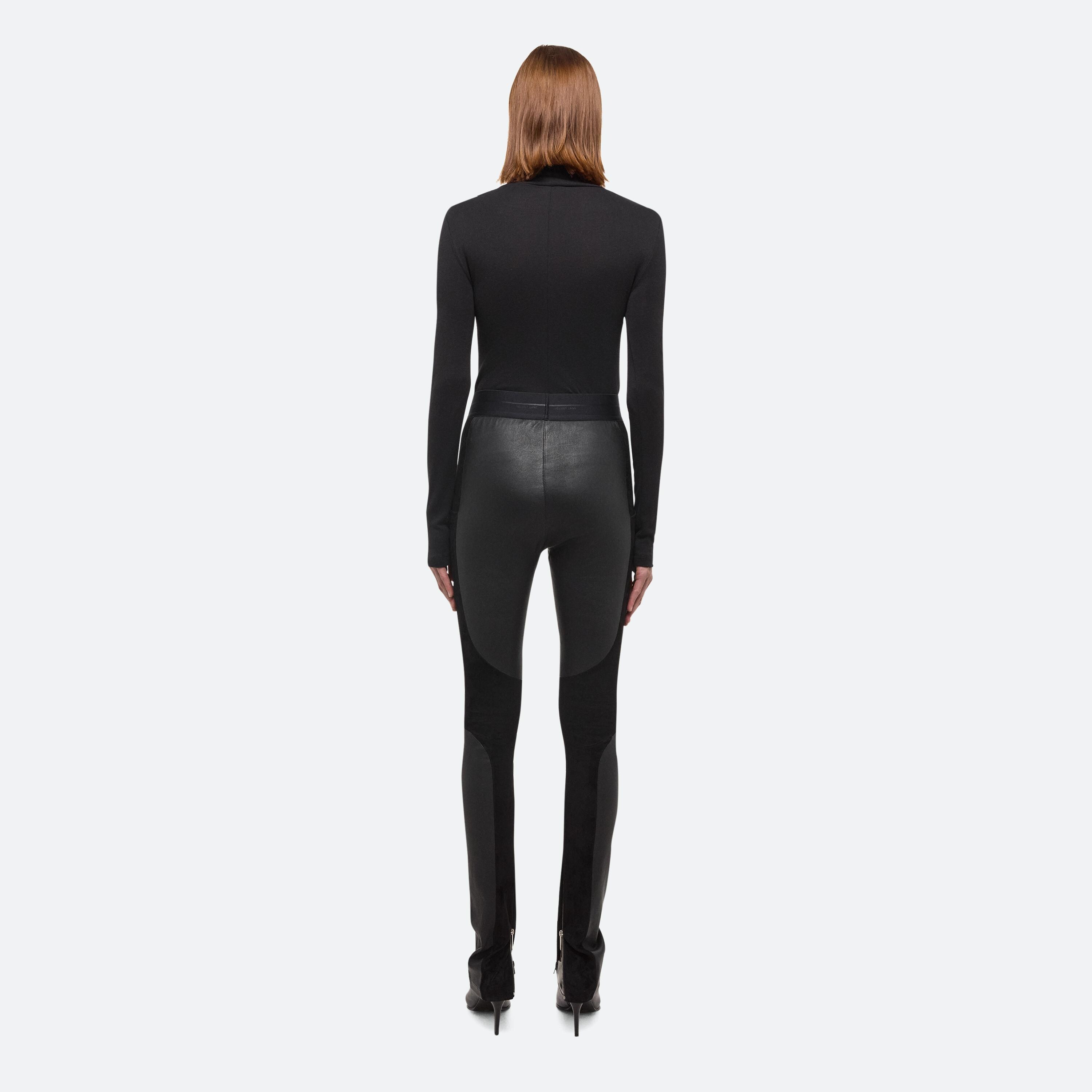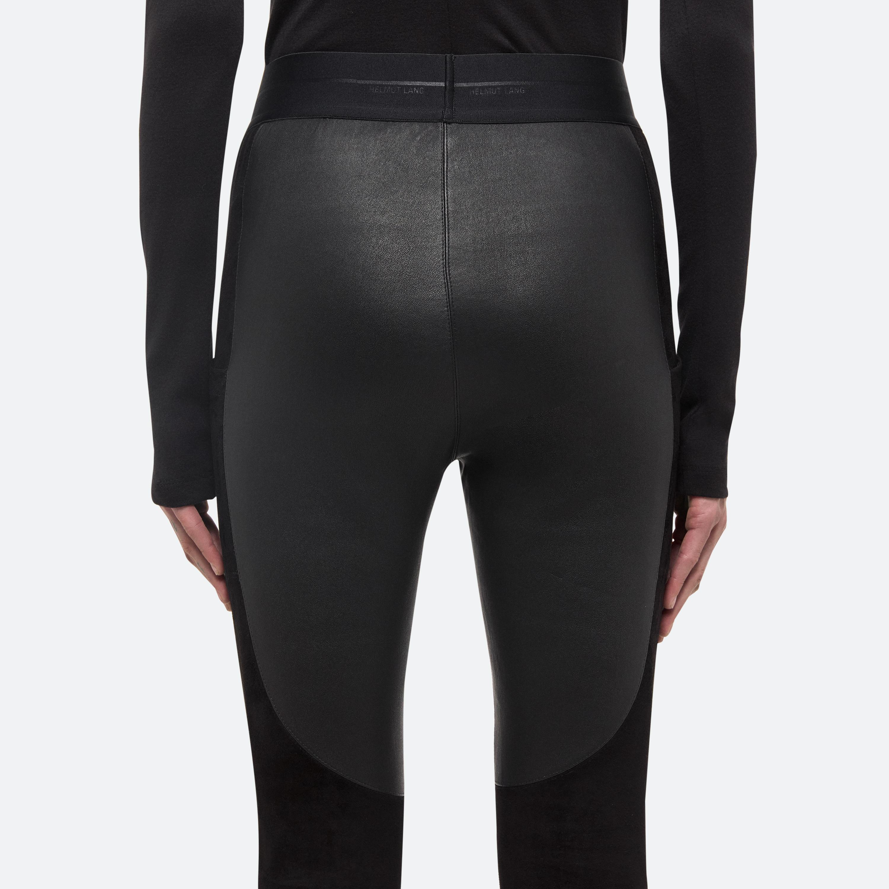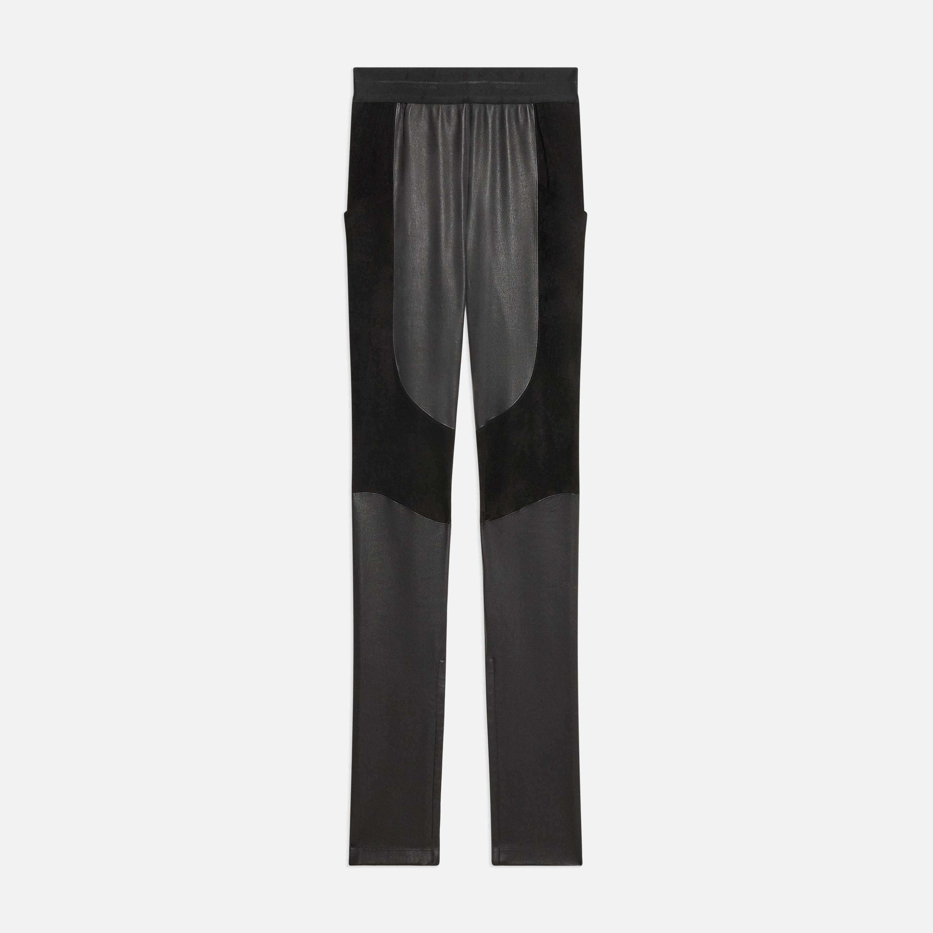 Stretch leather legging with contrasting suede panels inspired by performance athleticwear.