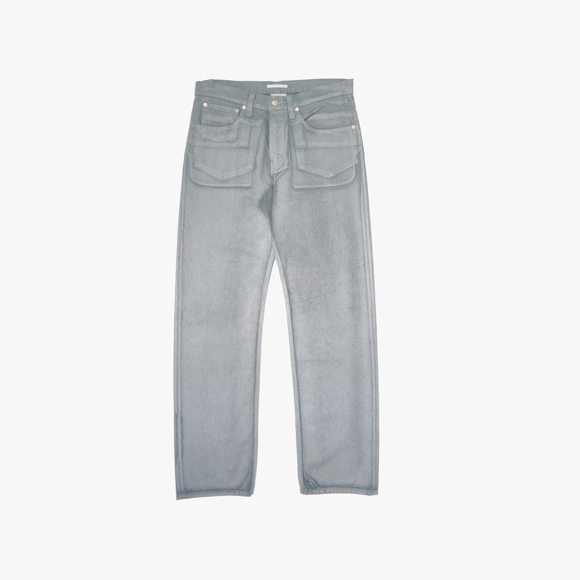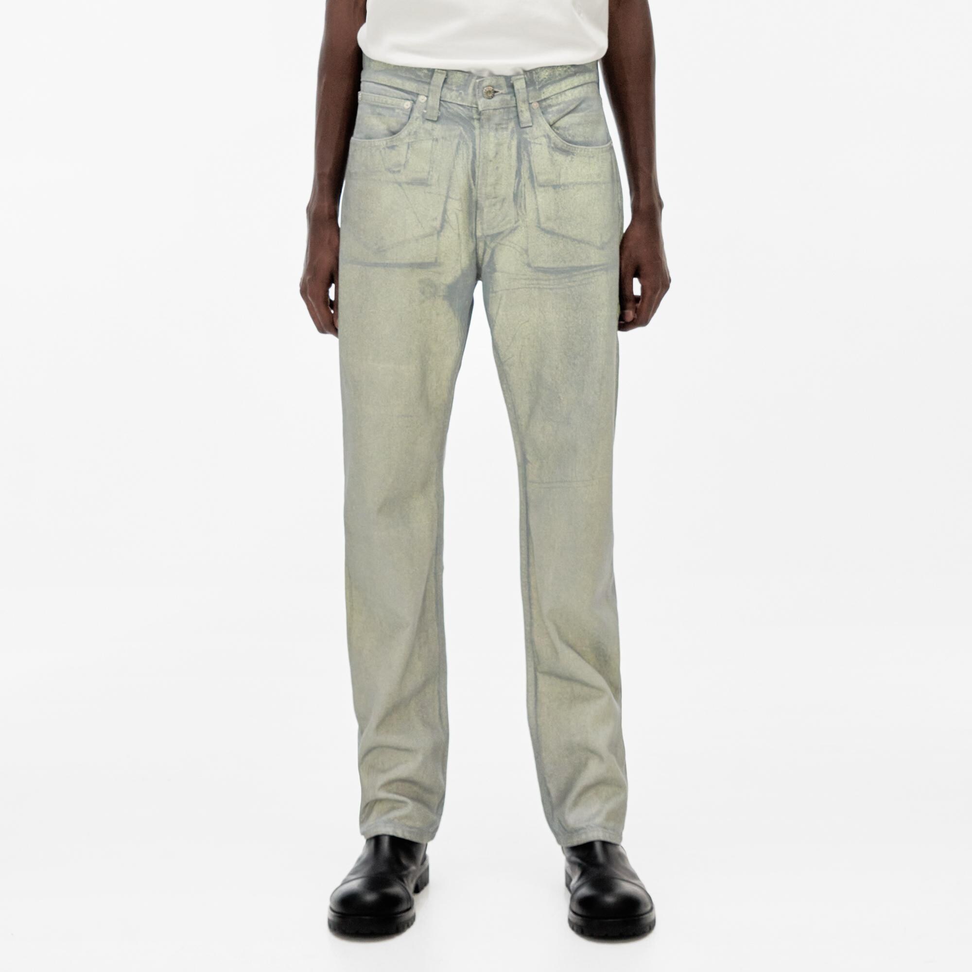 The Helmut Lang Reflective Masc Lo Easy Jeans are 100% cotton denim jeans with a low rise and easy, straight leg