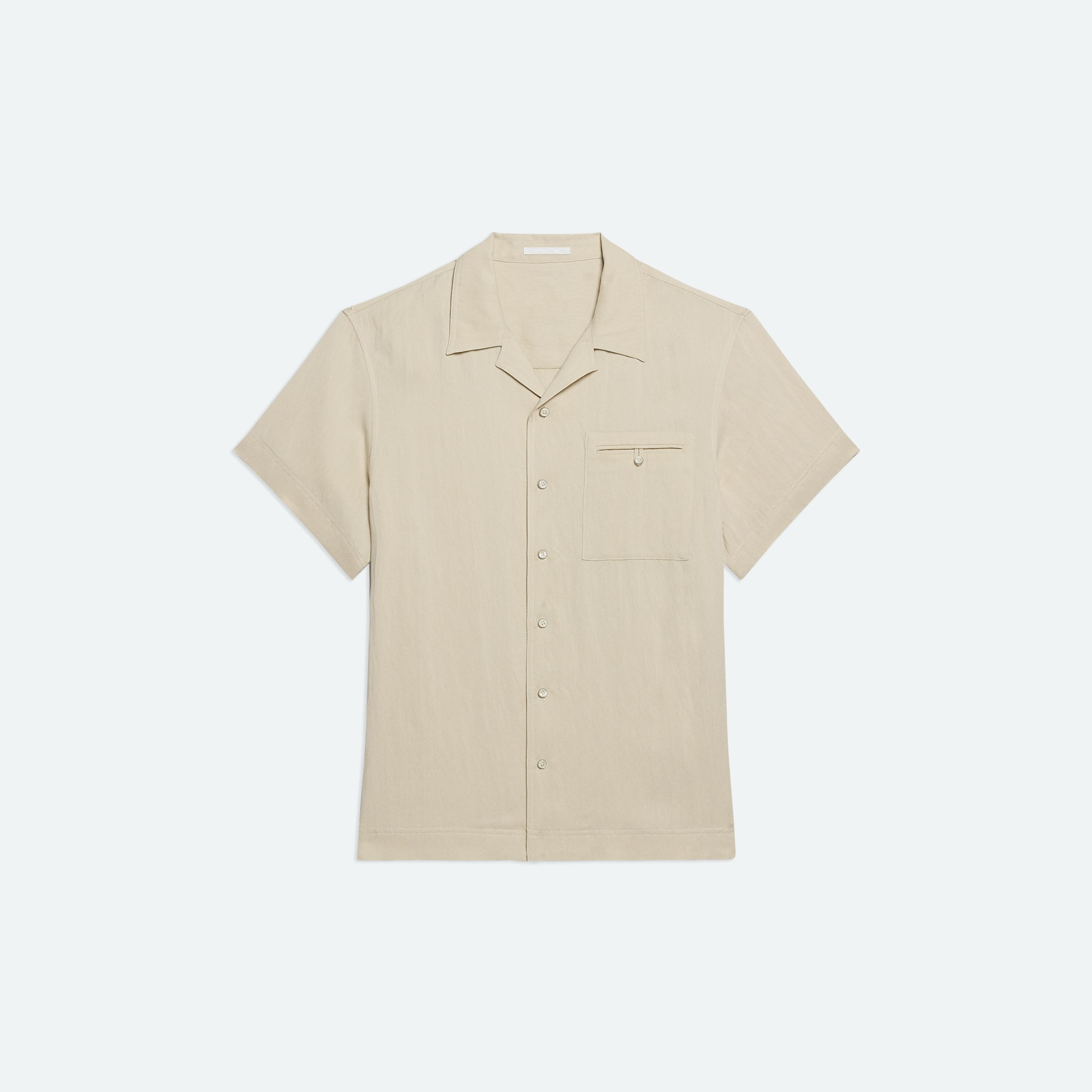Pull-on short in washed tencel twill. Fluid fabric and relaxed fit offer lightweight comfort with a refined finish.