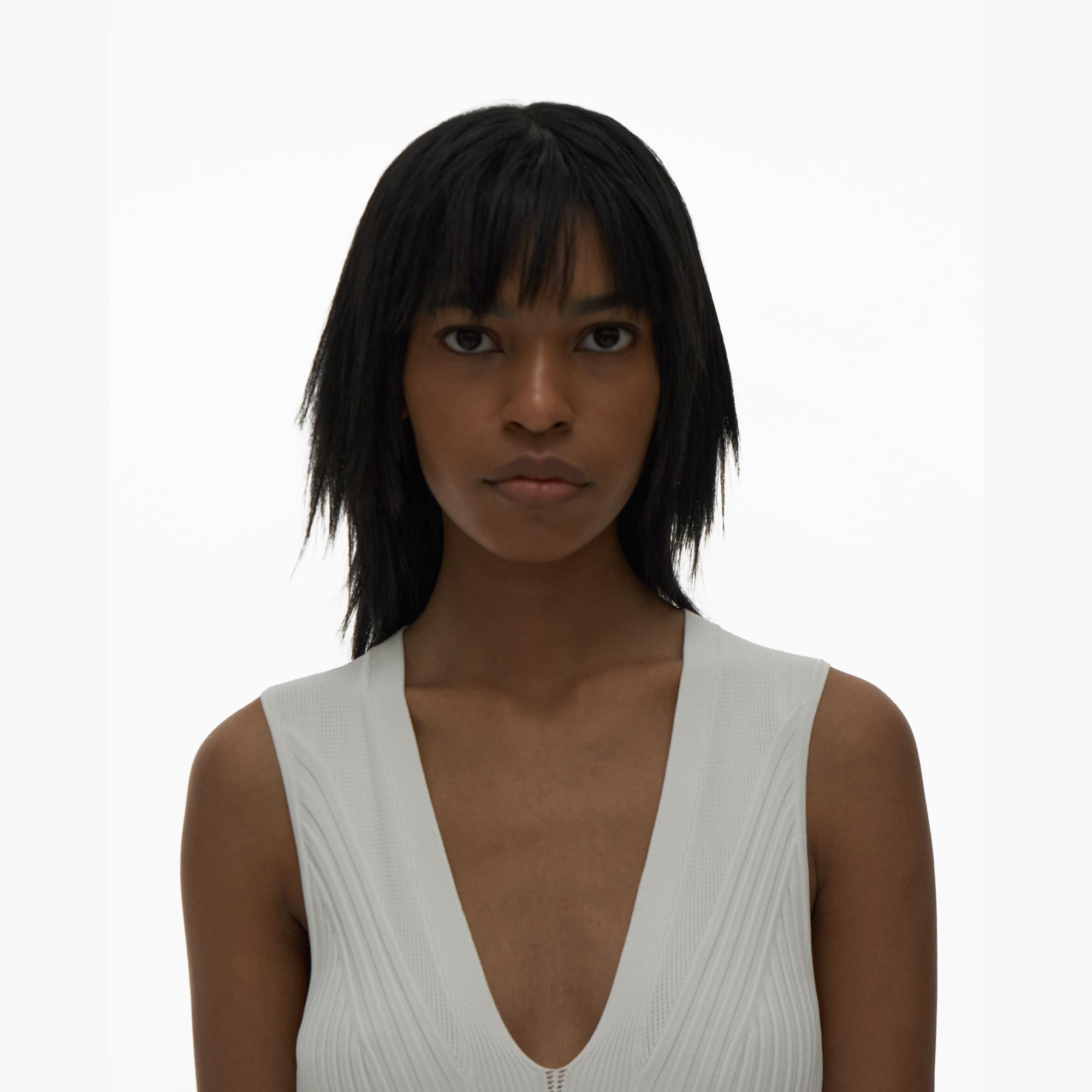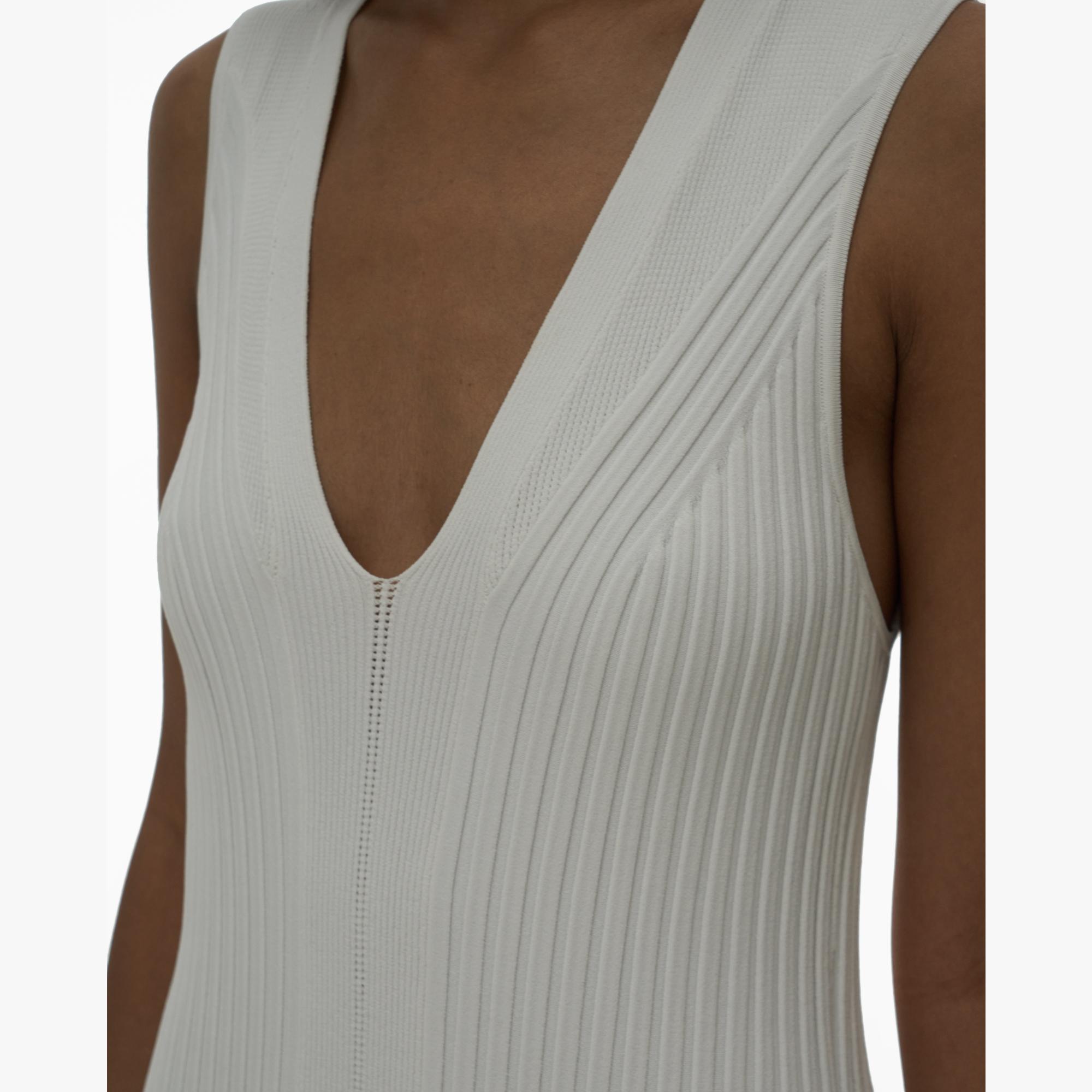 The Helmut Lang Ribbed Tank Dress is designed in a ribbed viscose that contours to the body. It's a sleeveless style with a V-neckline and midi-length.
