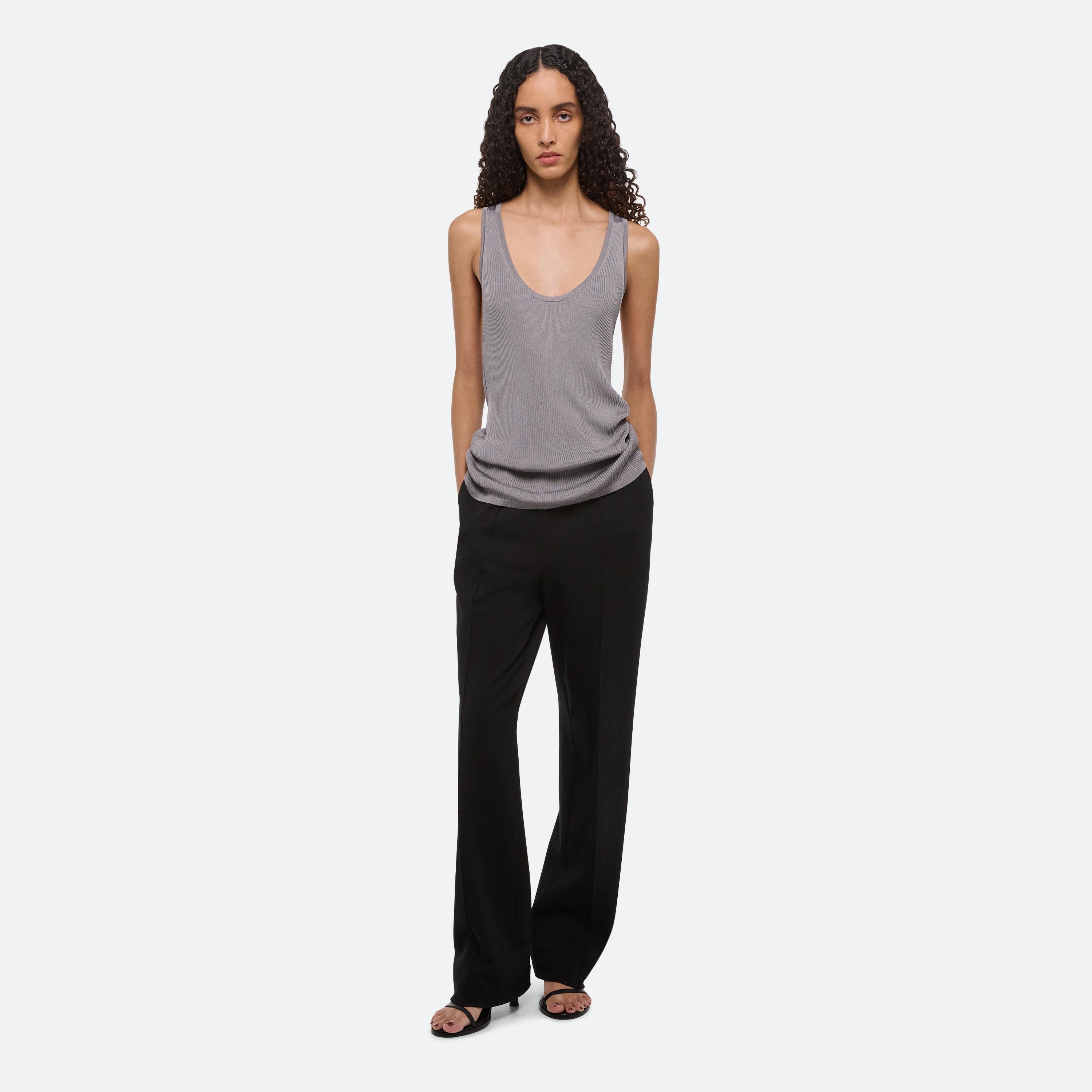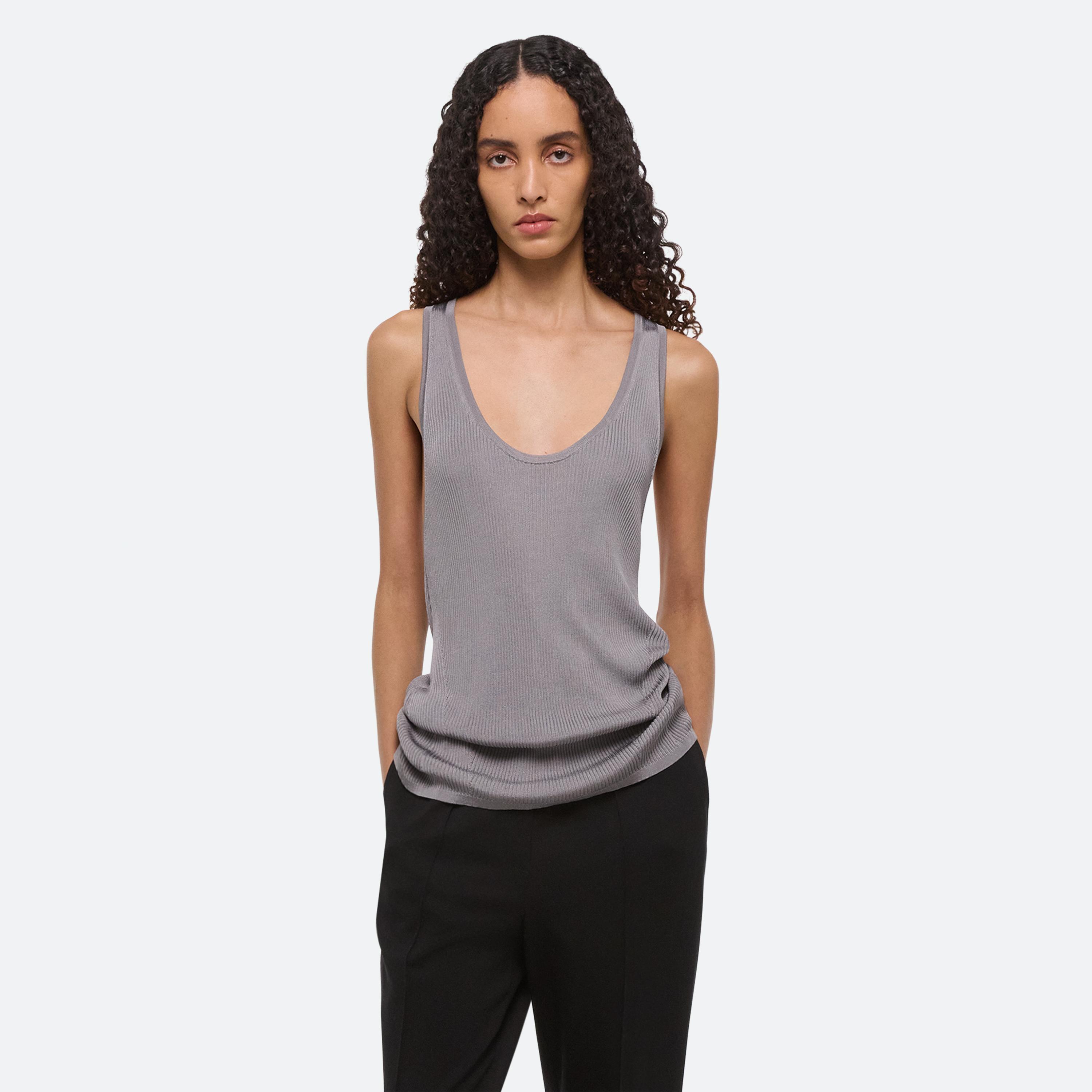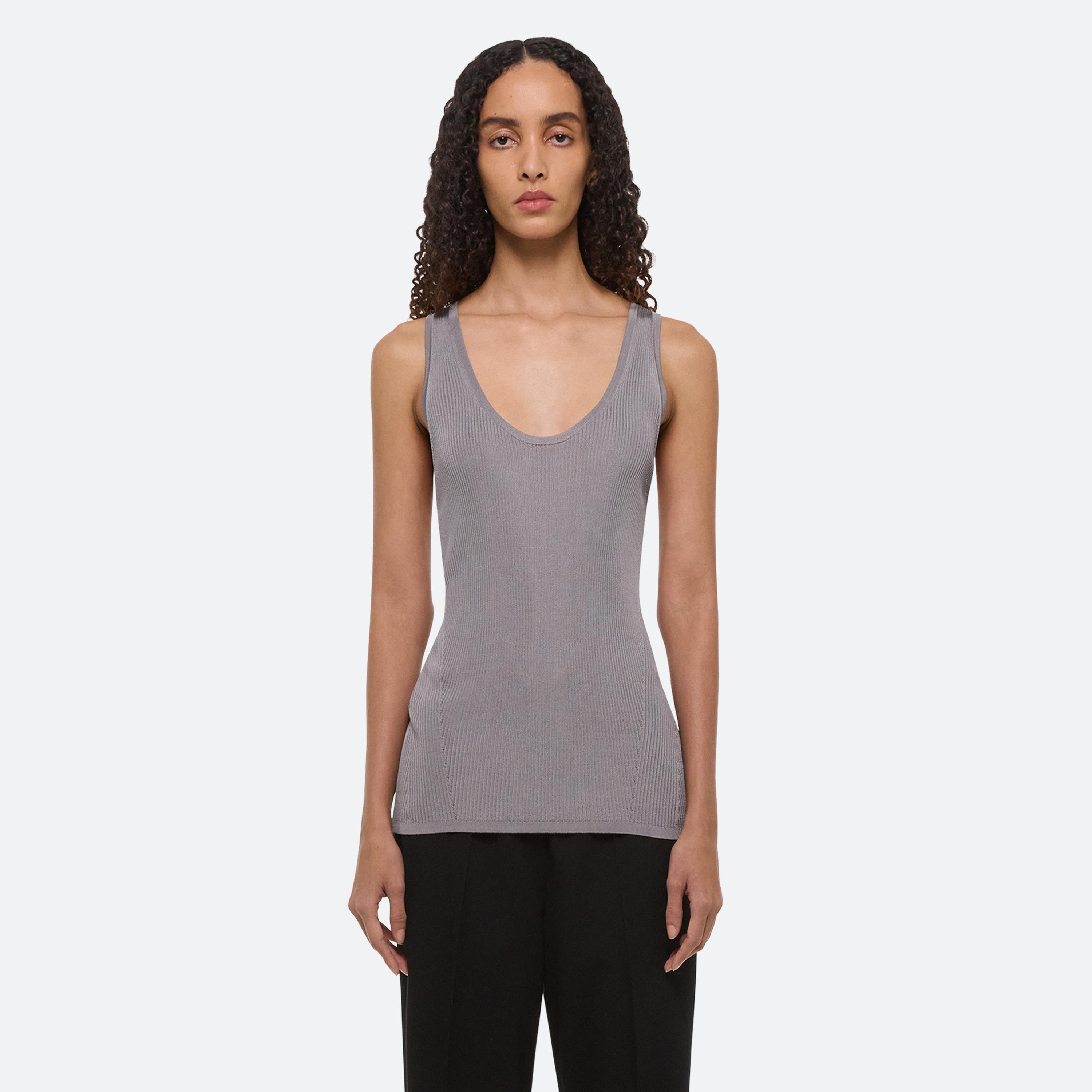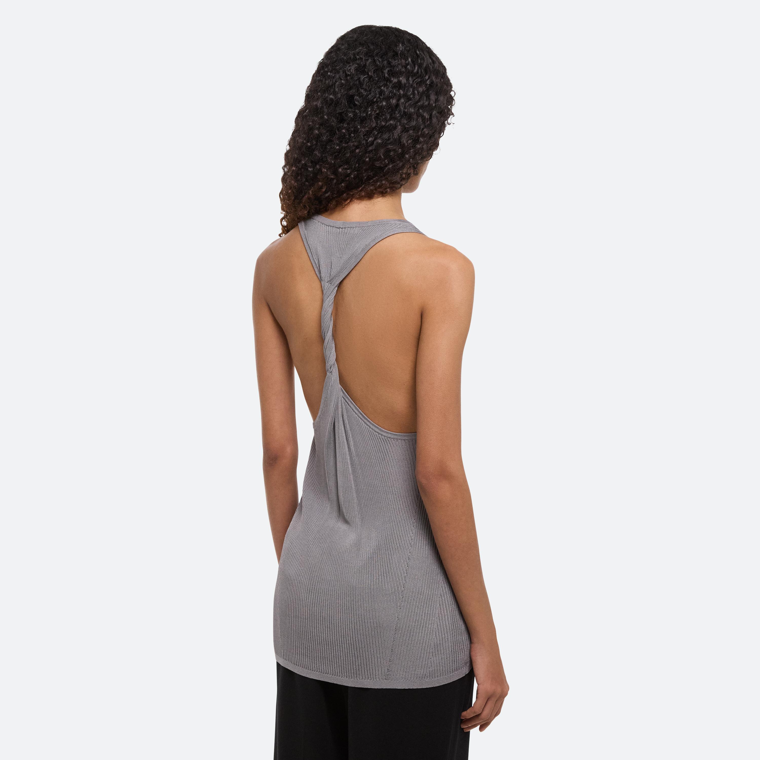 Scoop-neck tank in viscose rib. Slim fit with a twisted racer-cut back.