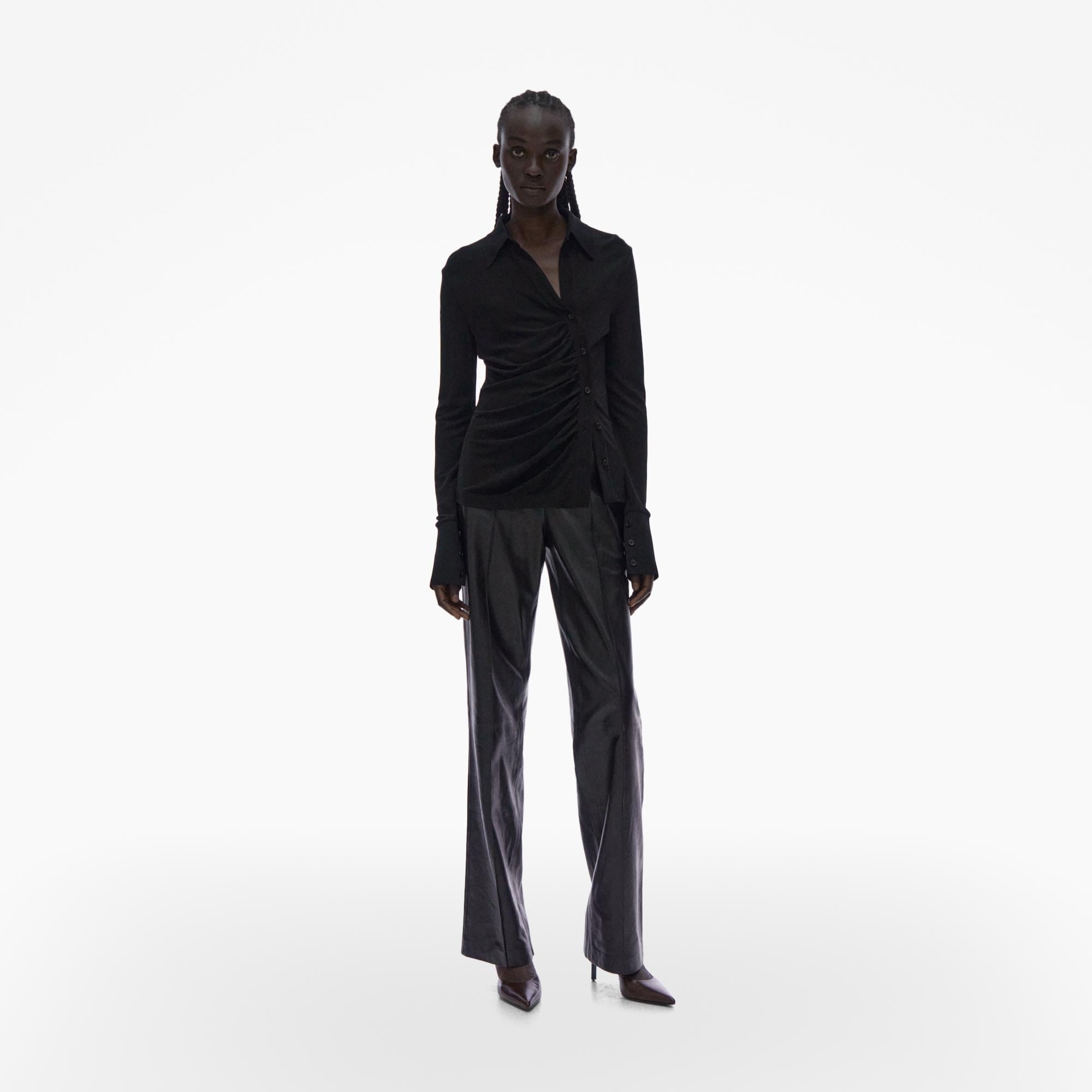 The Helmut Lang Shirt is a long-sleeve style in lightweight viscose jersey with a point collar and asymmetric button front closures.