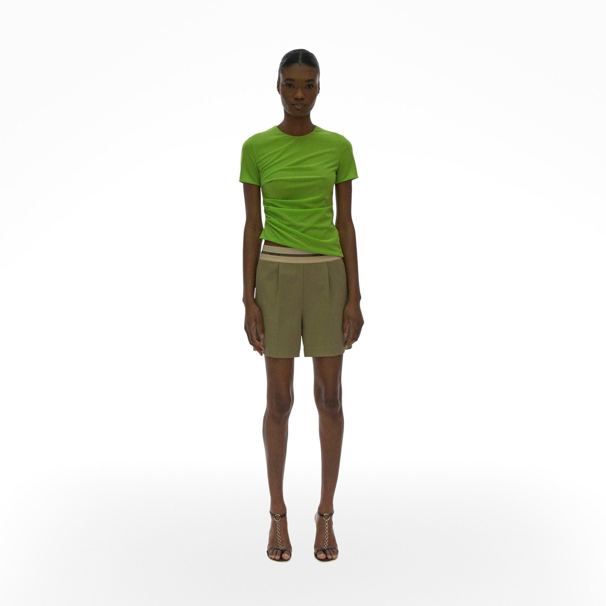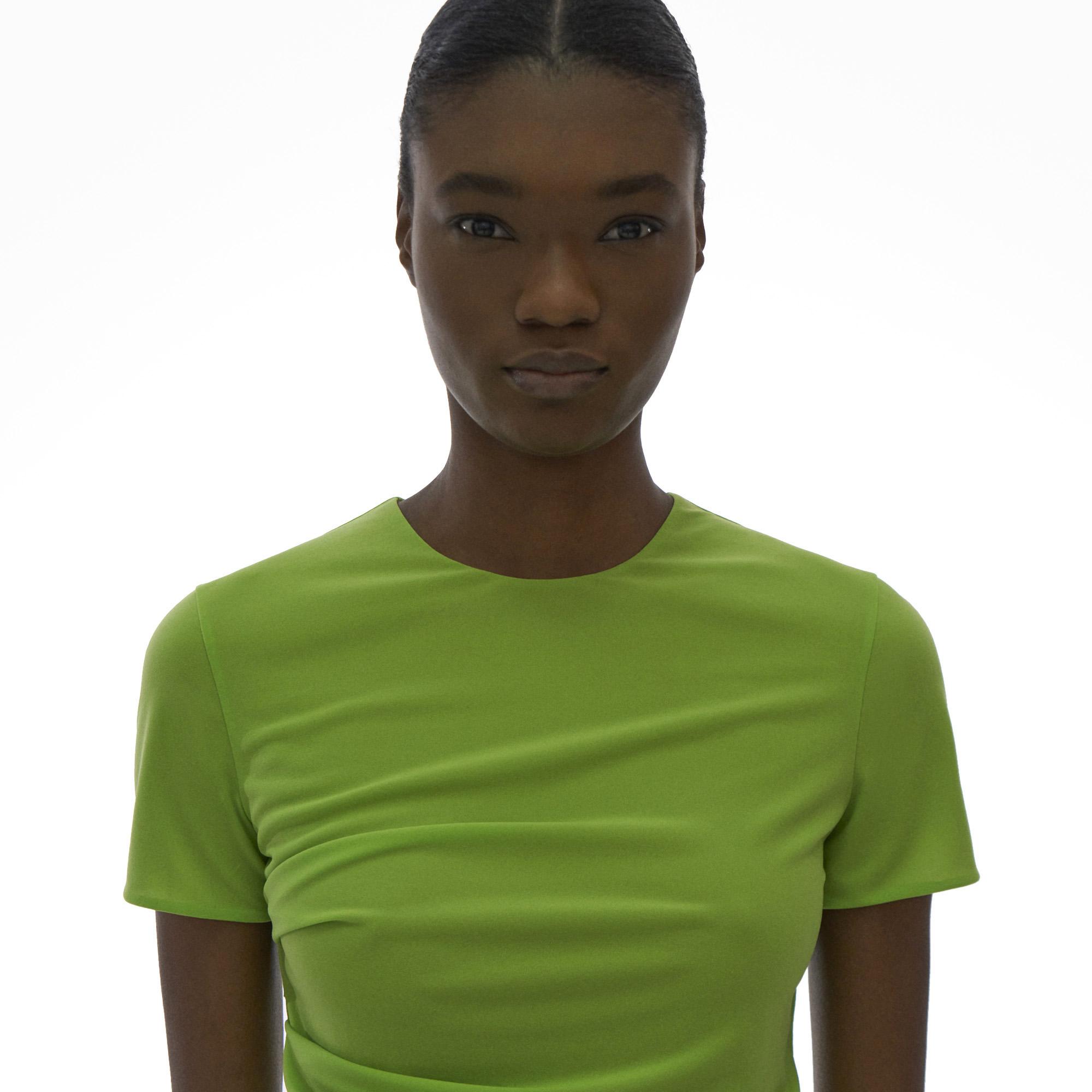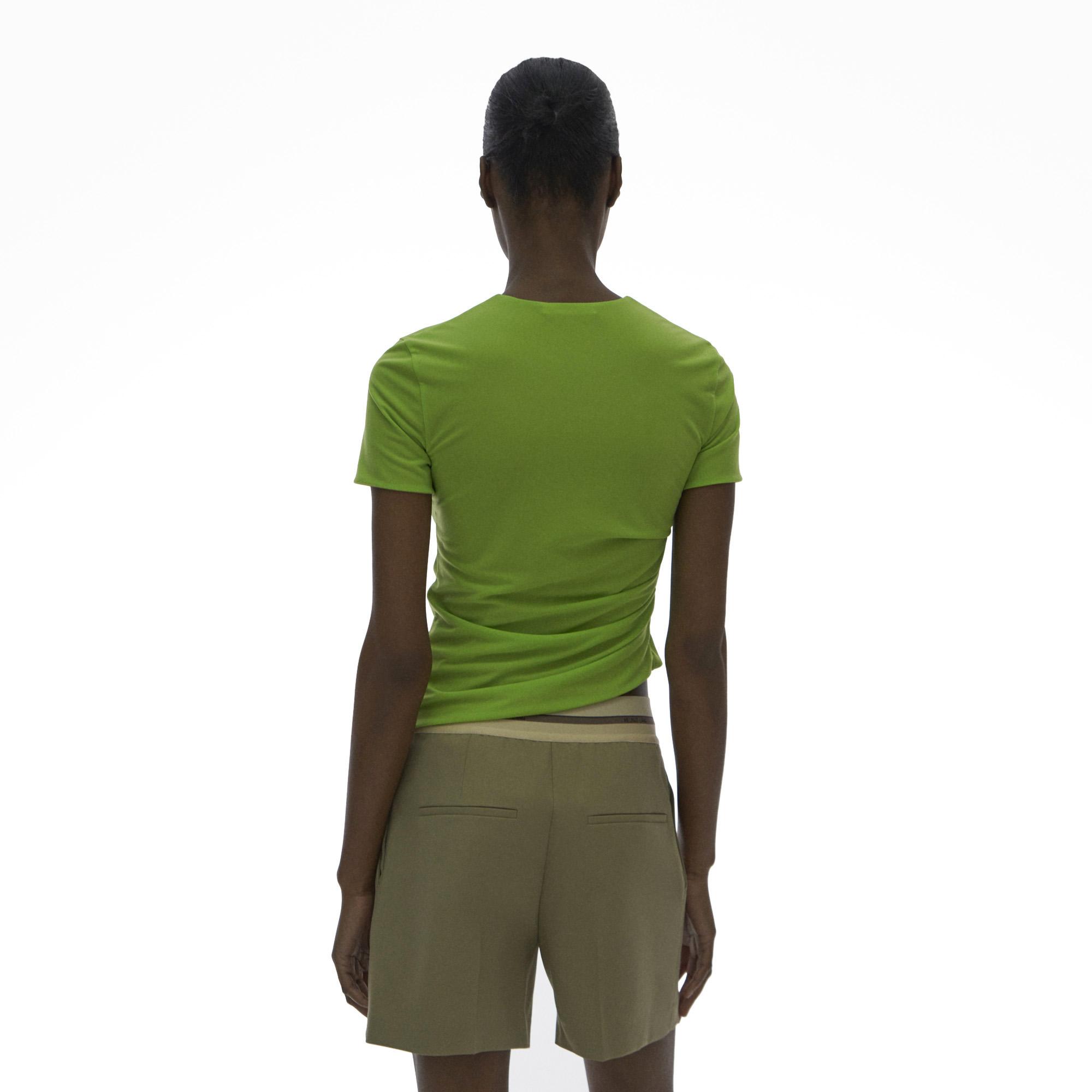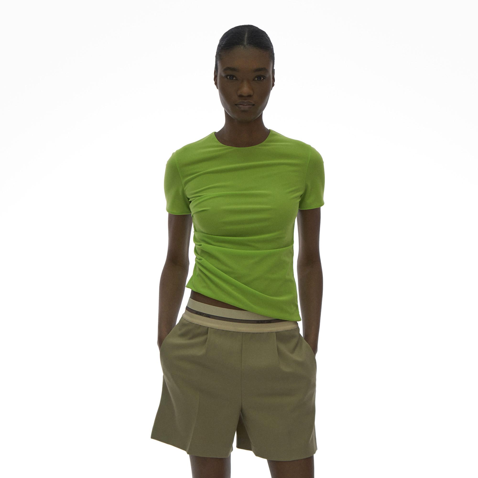 The Helmut Lang Ruched Tee is a short-sleeve crewneck tee with a reversible mesh finish.