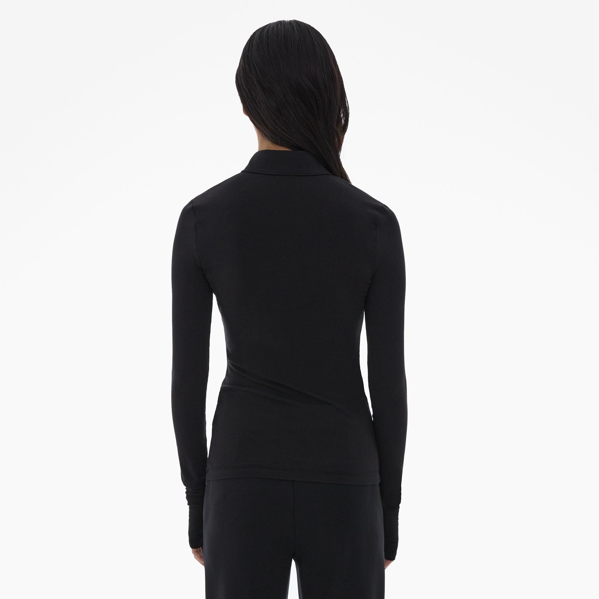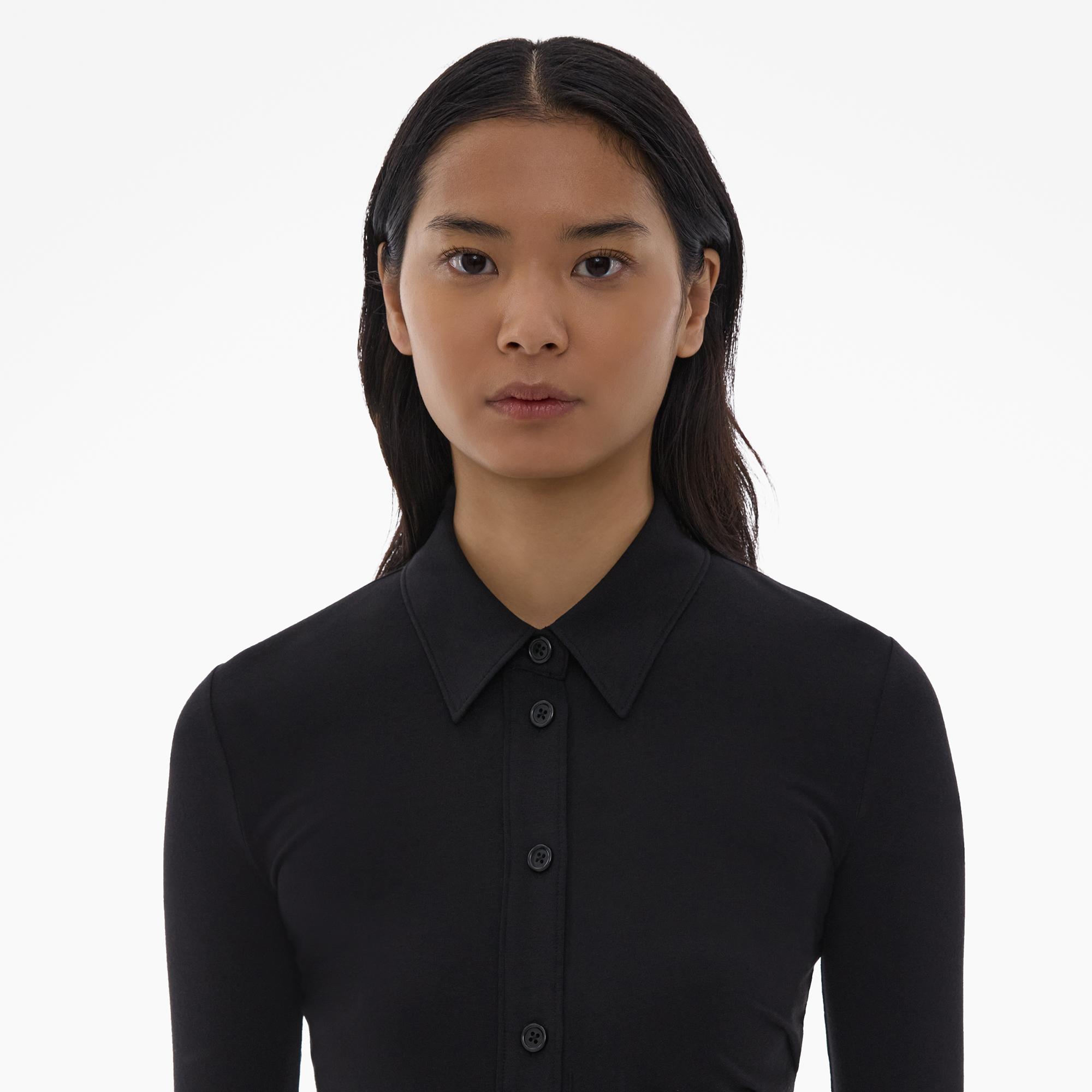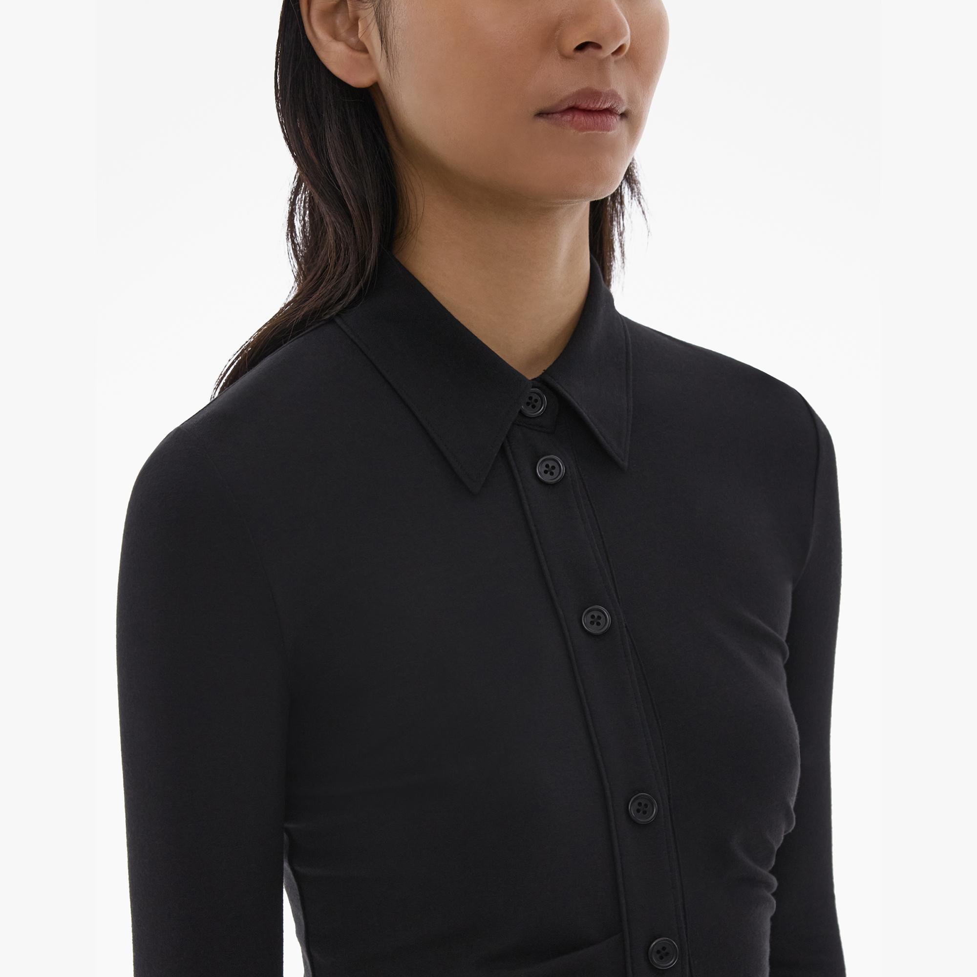 The Helmut Lang Shirt is a button-up style in a light cotton-modal jersey with a pointed collar, long sleeves and ruched details throughout.