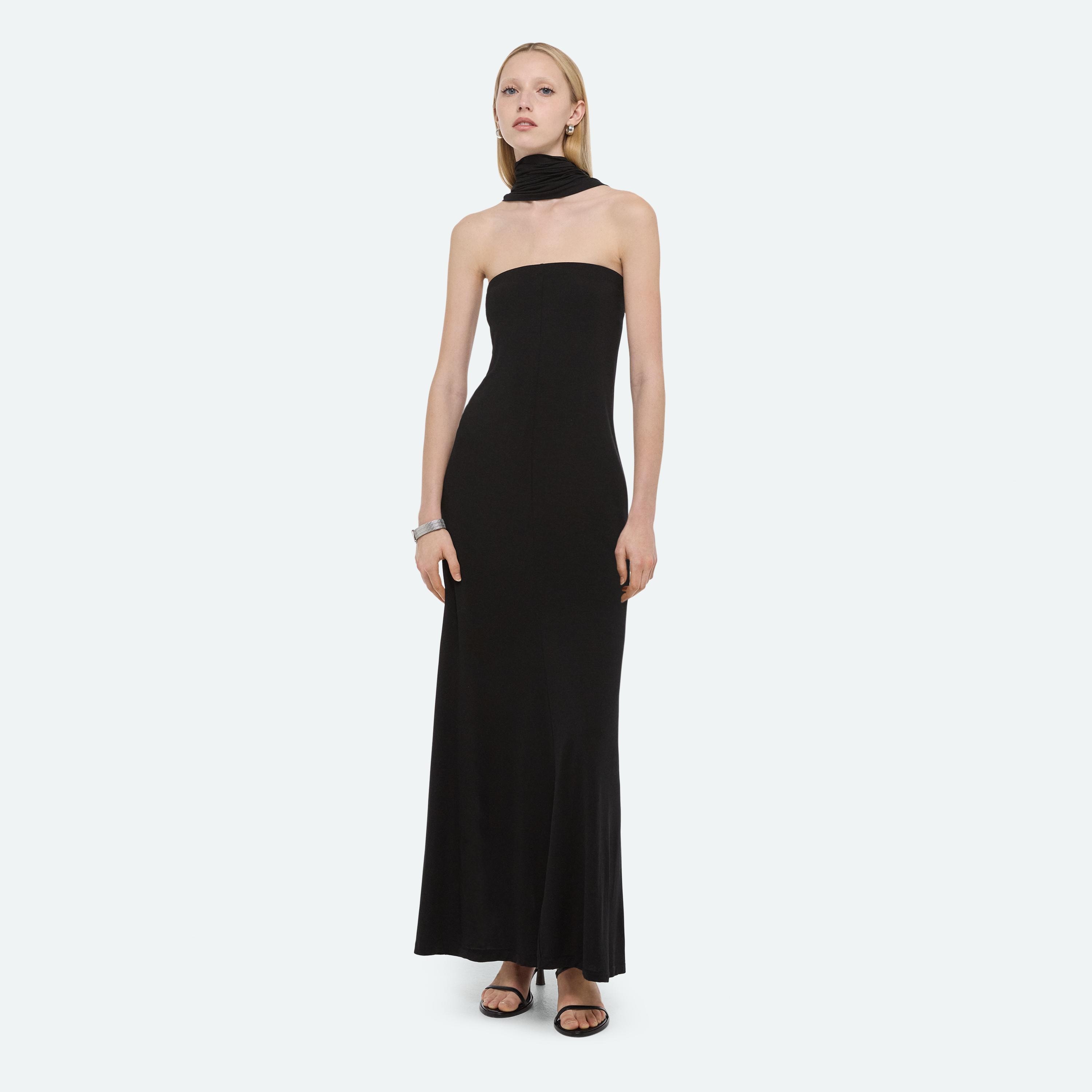 Strapless maxi dress in a soft lyocell jersey. Adjust the ruched sash to create different styles.