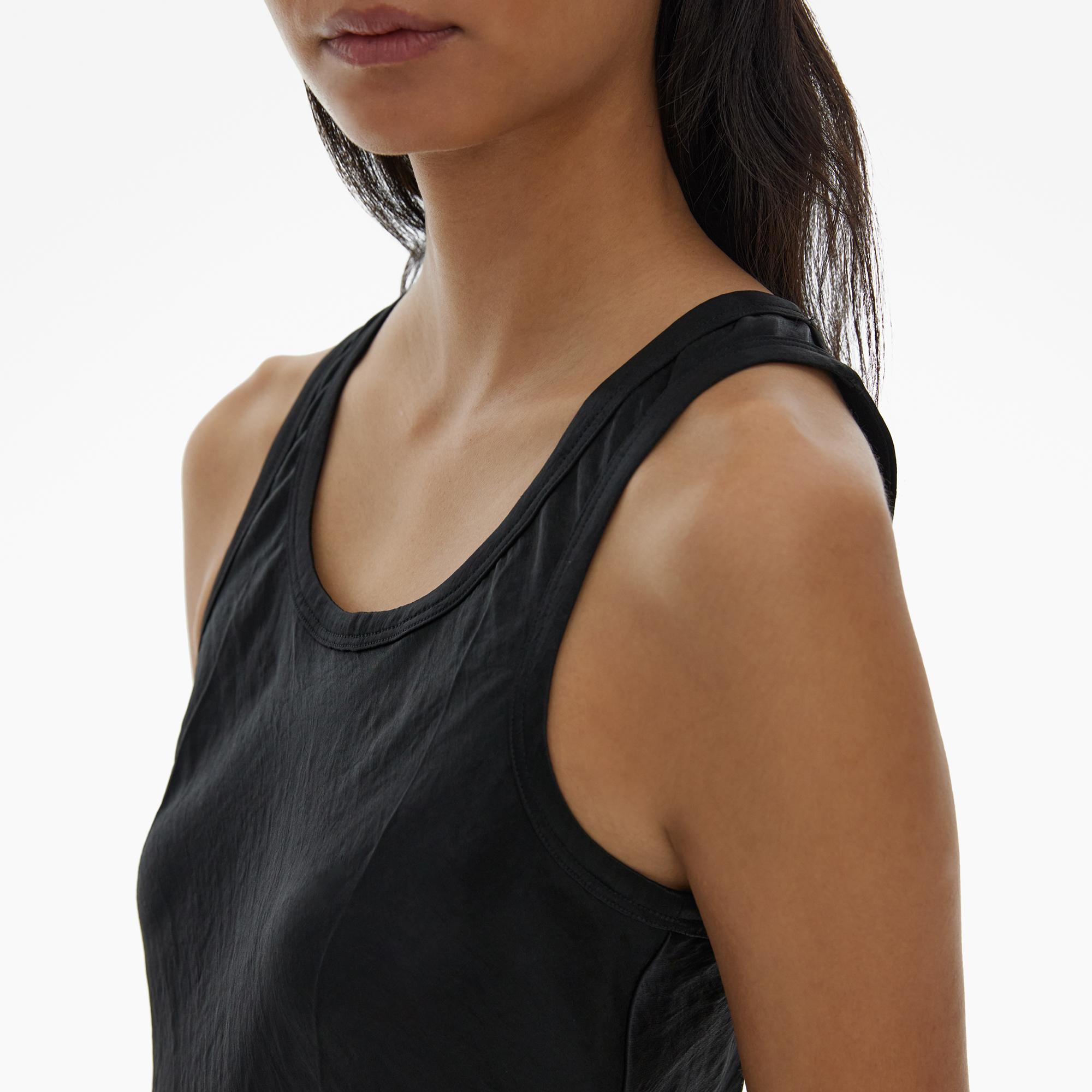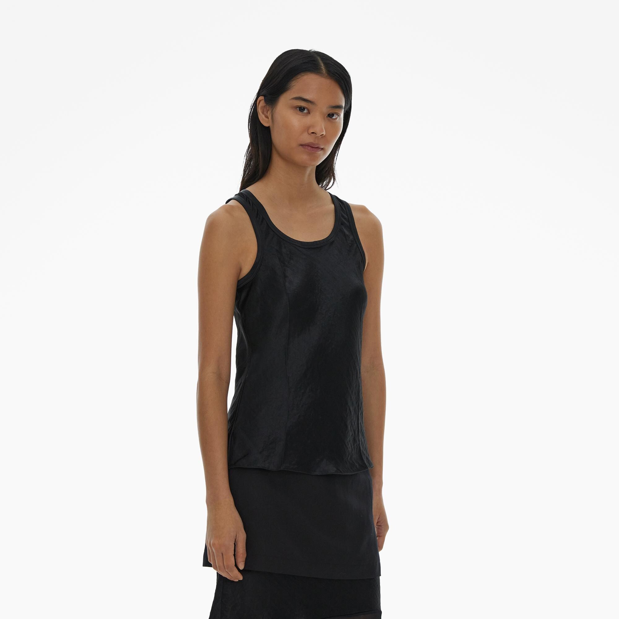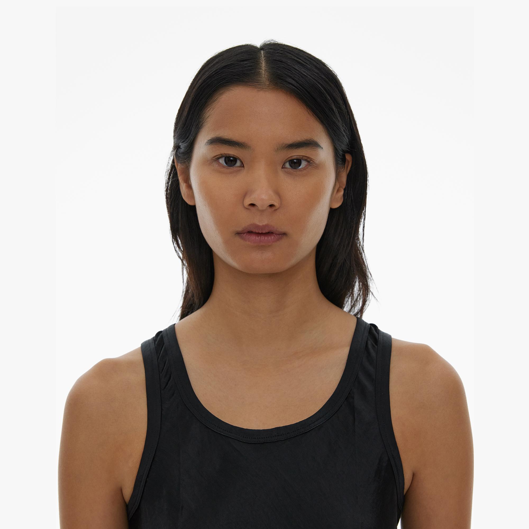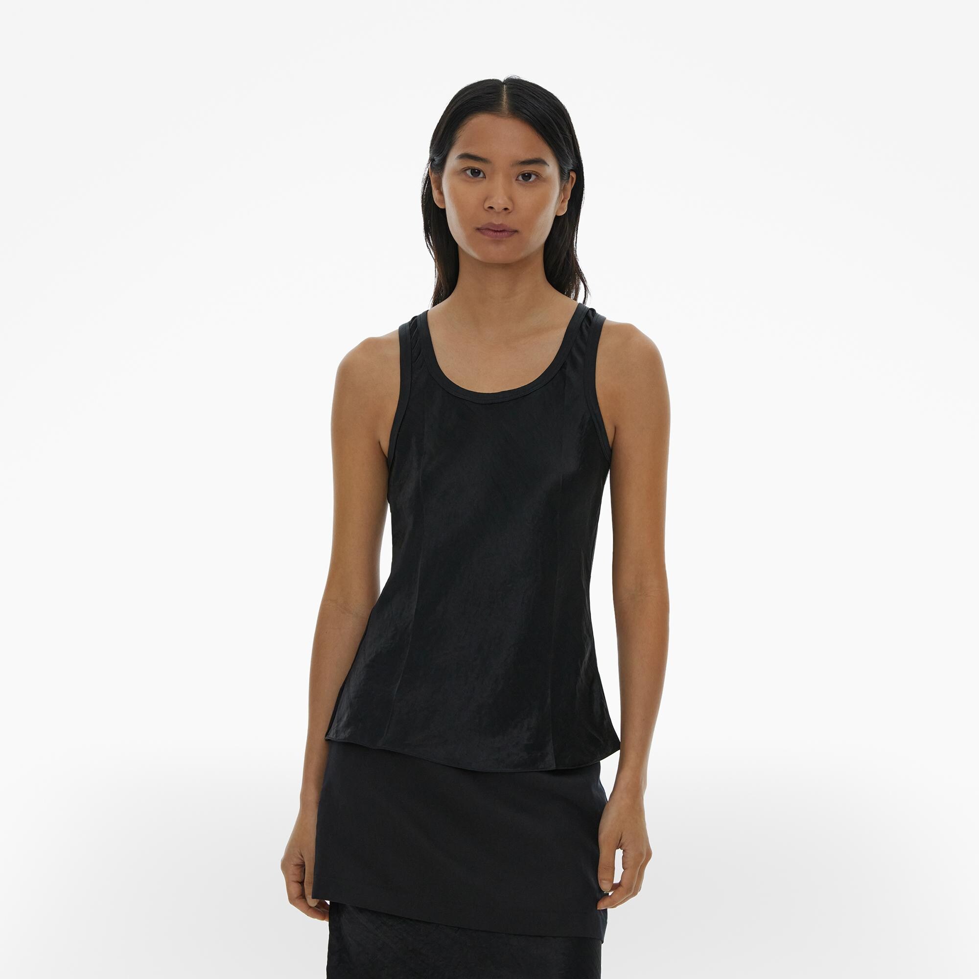 The Helmut Lang Tank Top is a relaxed sleeveless style in crinkled satin with a scooped neckline.