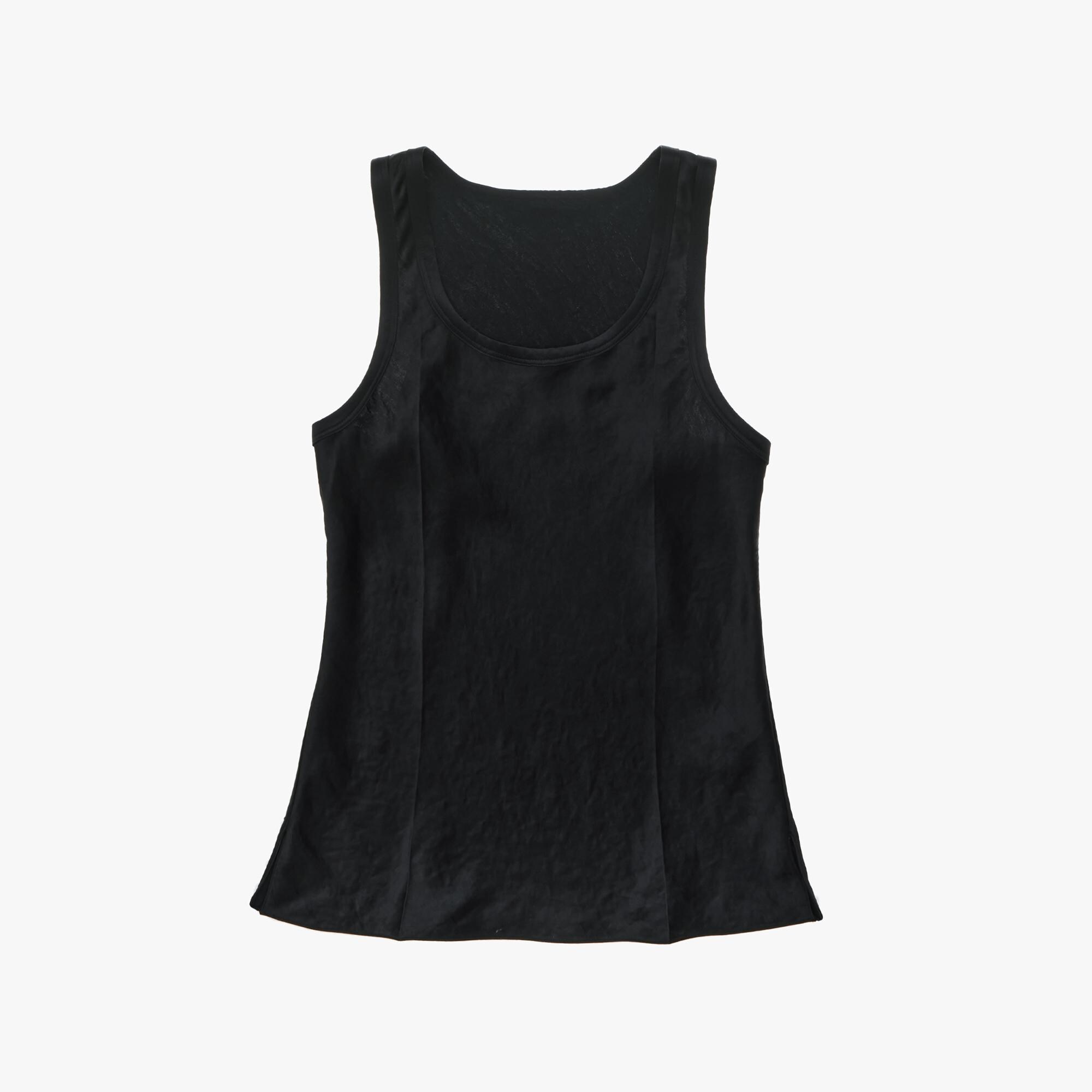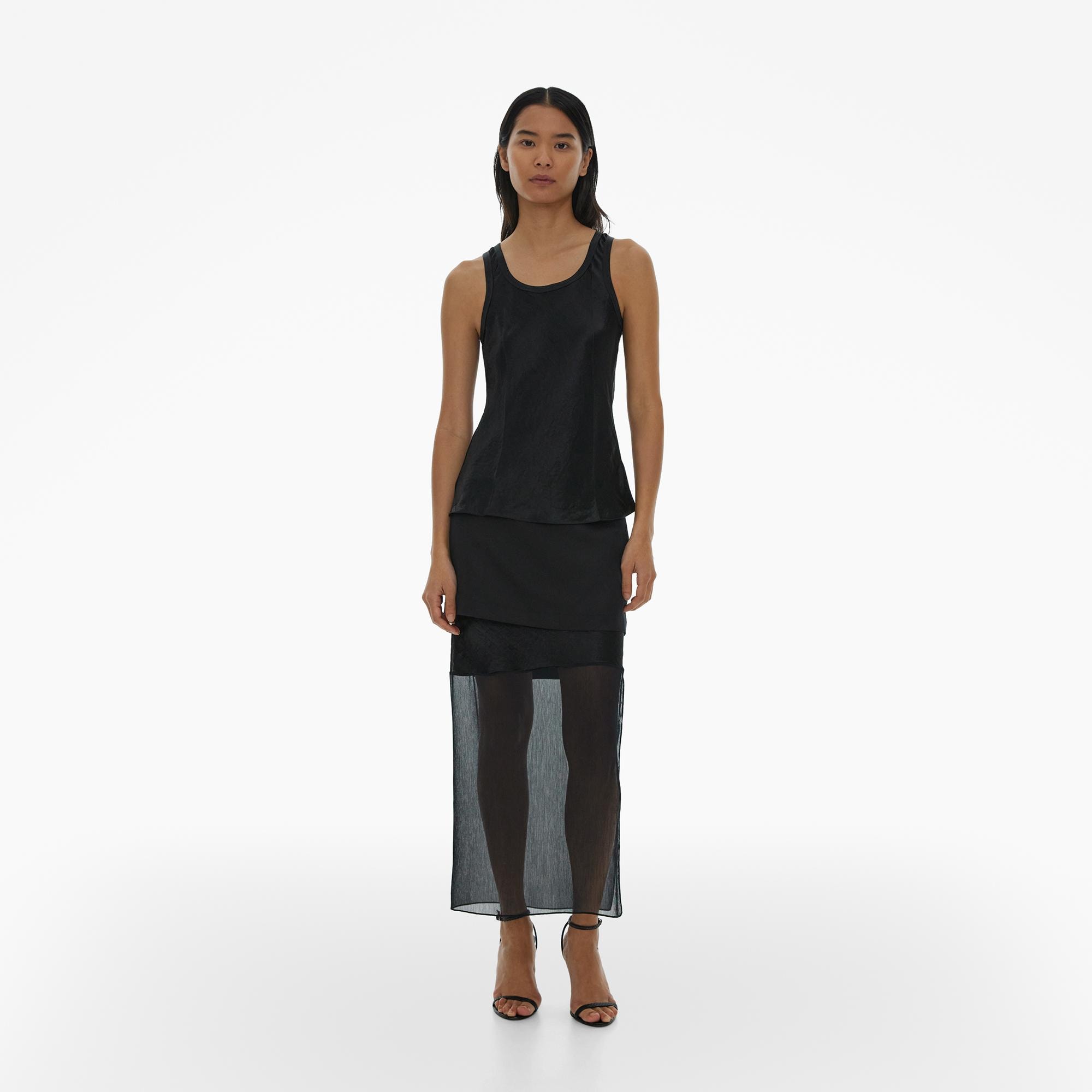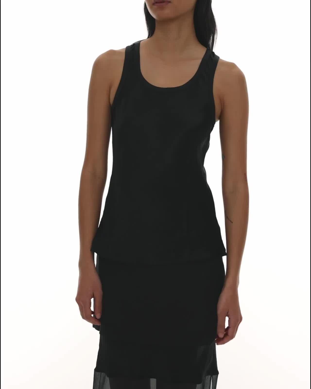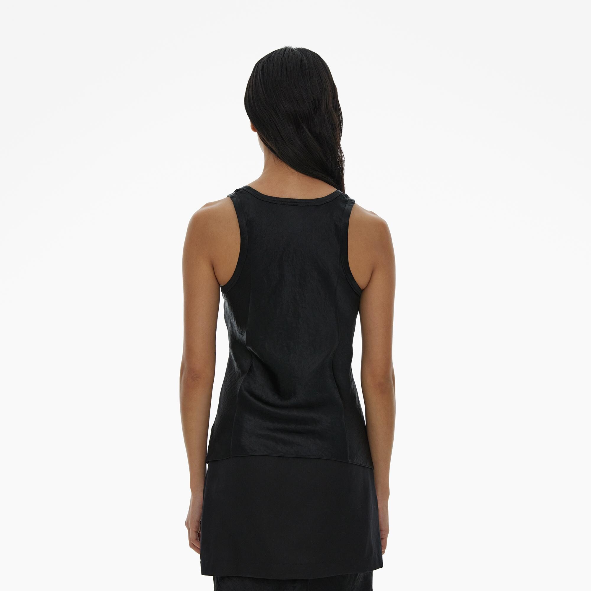 The Helmut Lang Tank Top is a relaxed sleeveless style in crinkled satin with a scooped neckline.