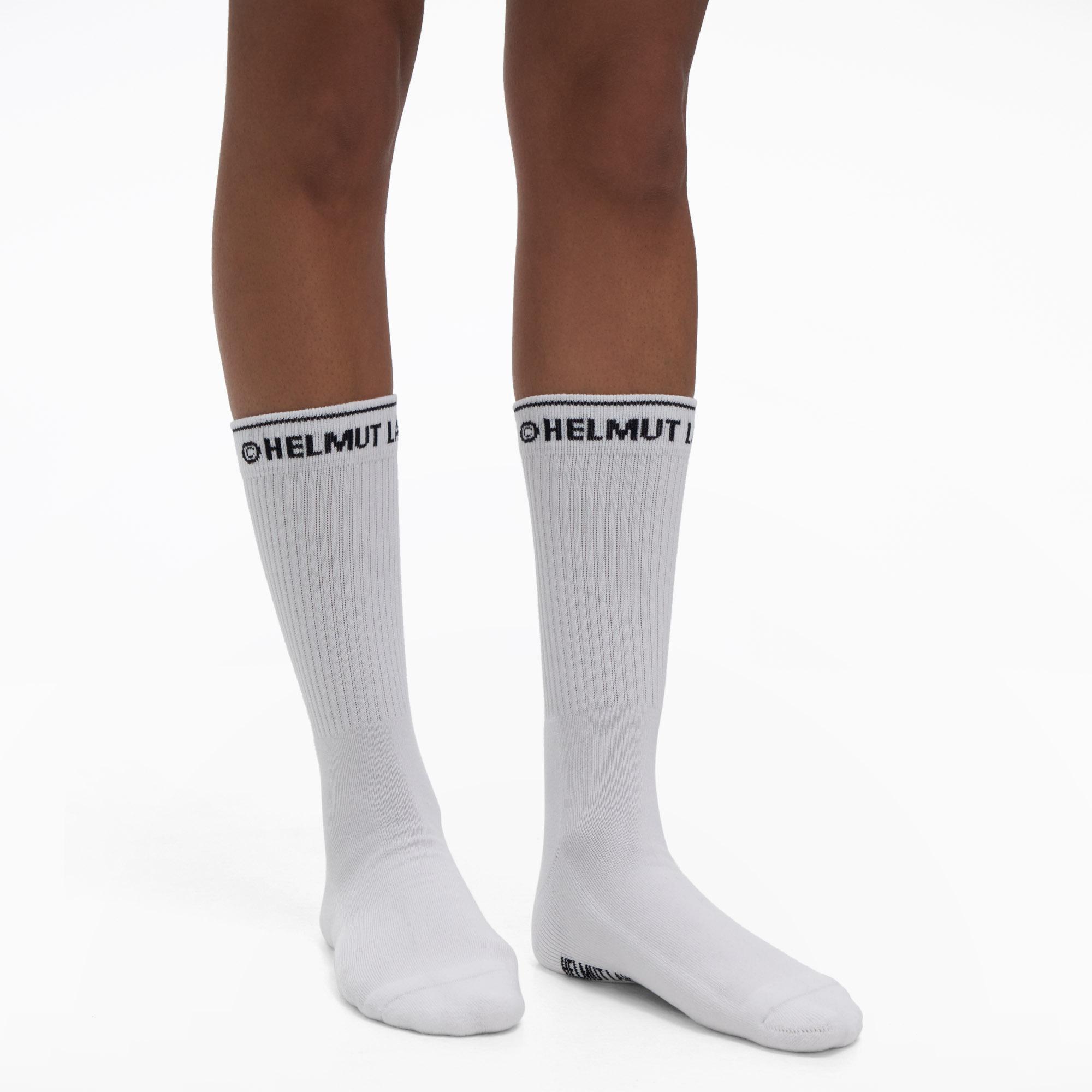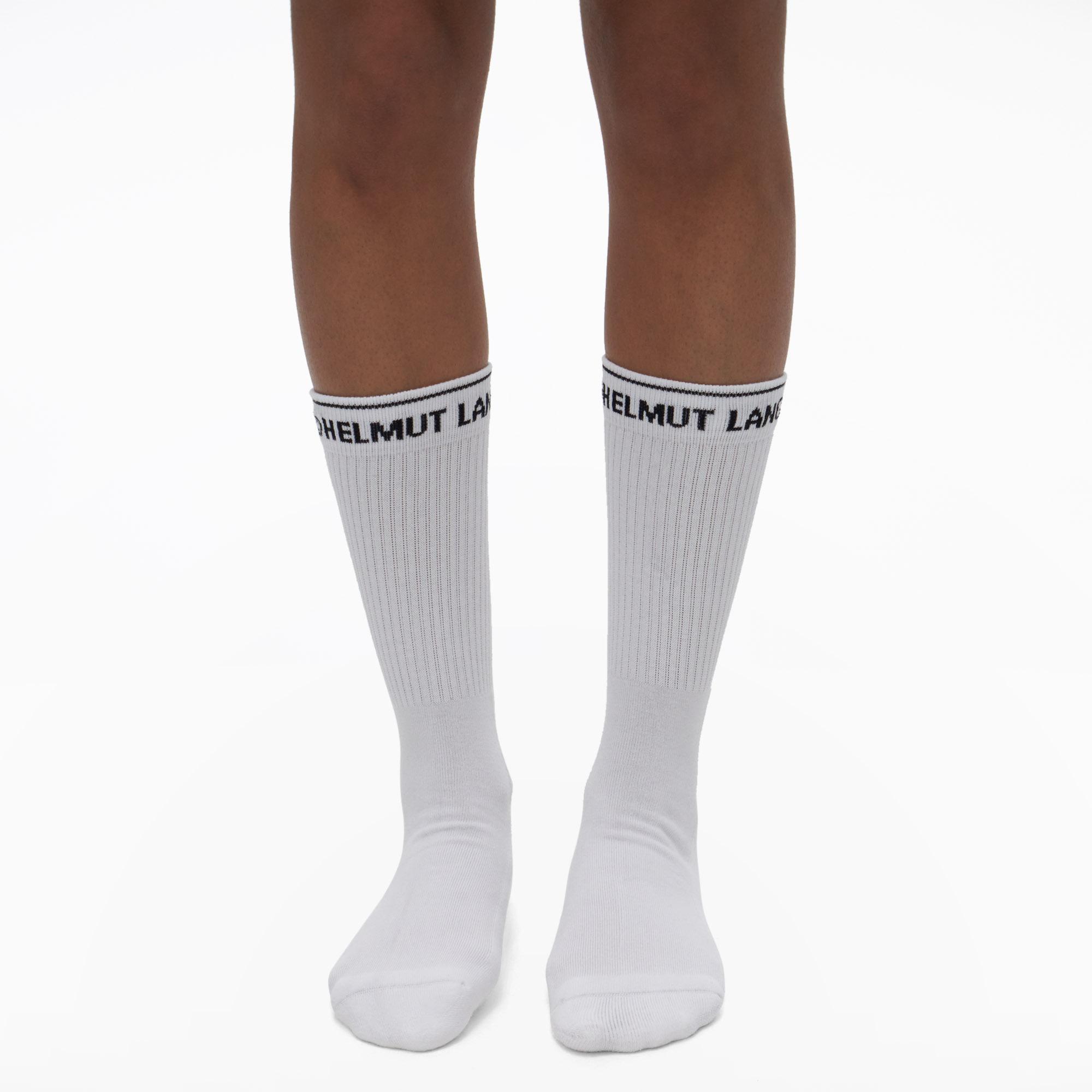 The Helmut Lang School Socks Are Cotton Crew Socks With A Graphic Text Detail.