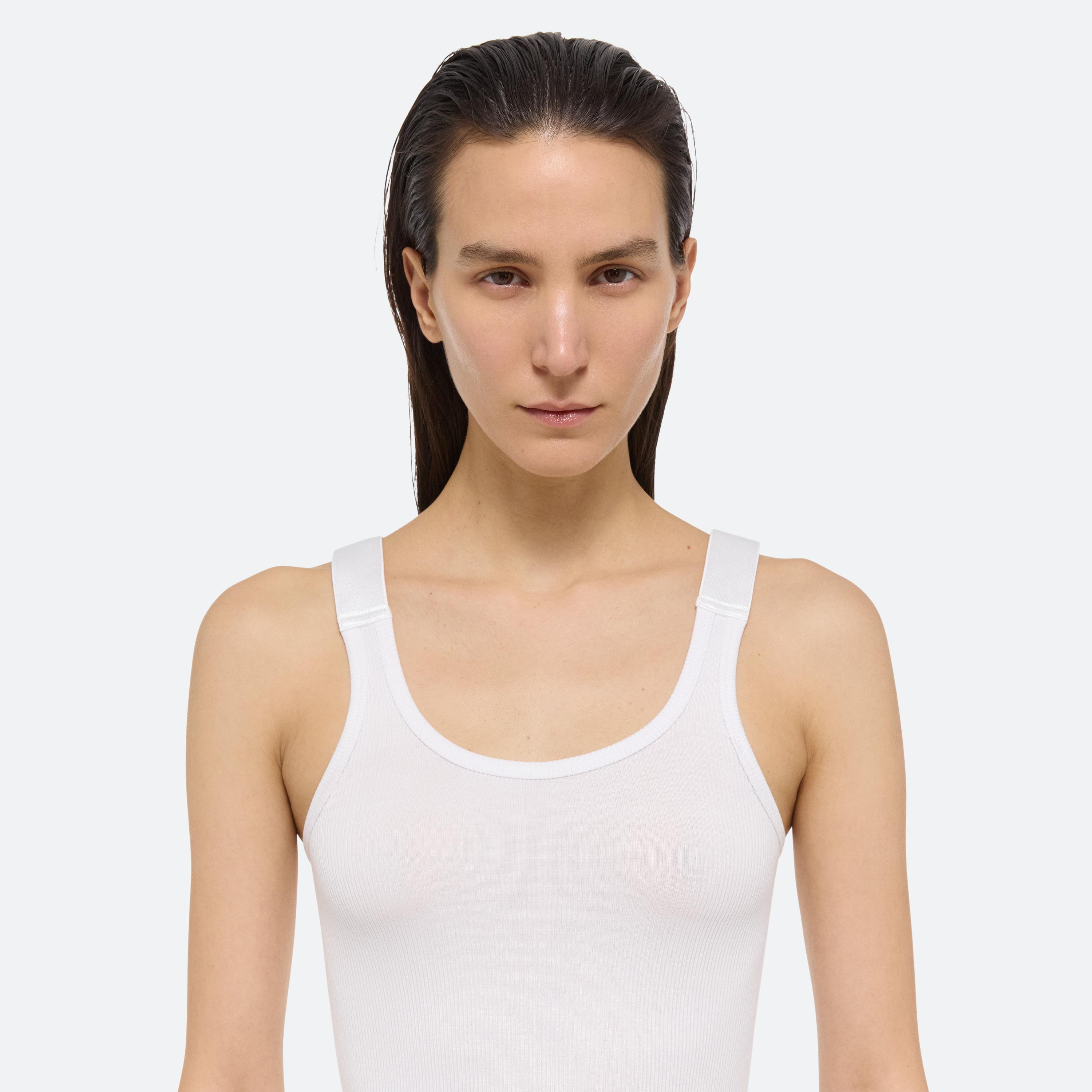 Stretch Peruvian modal tank in a supersoft ultra-fine rib with signature seatbelt strap detail at shoulder.