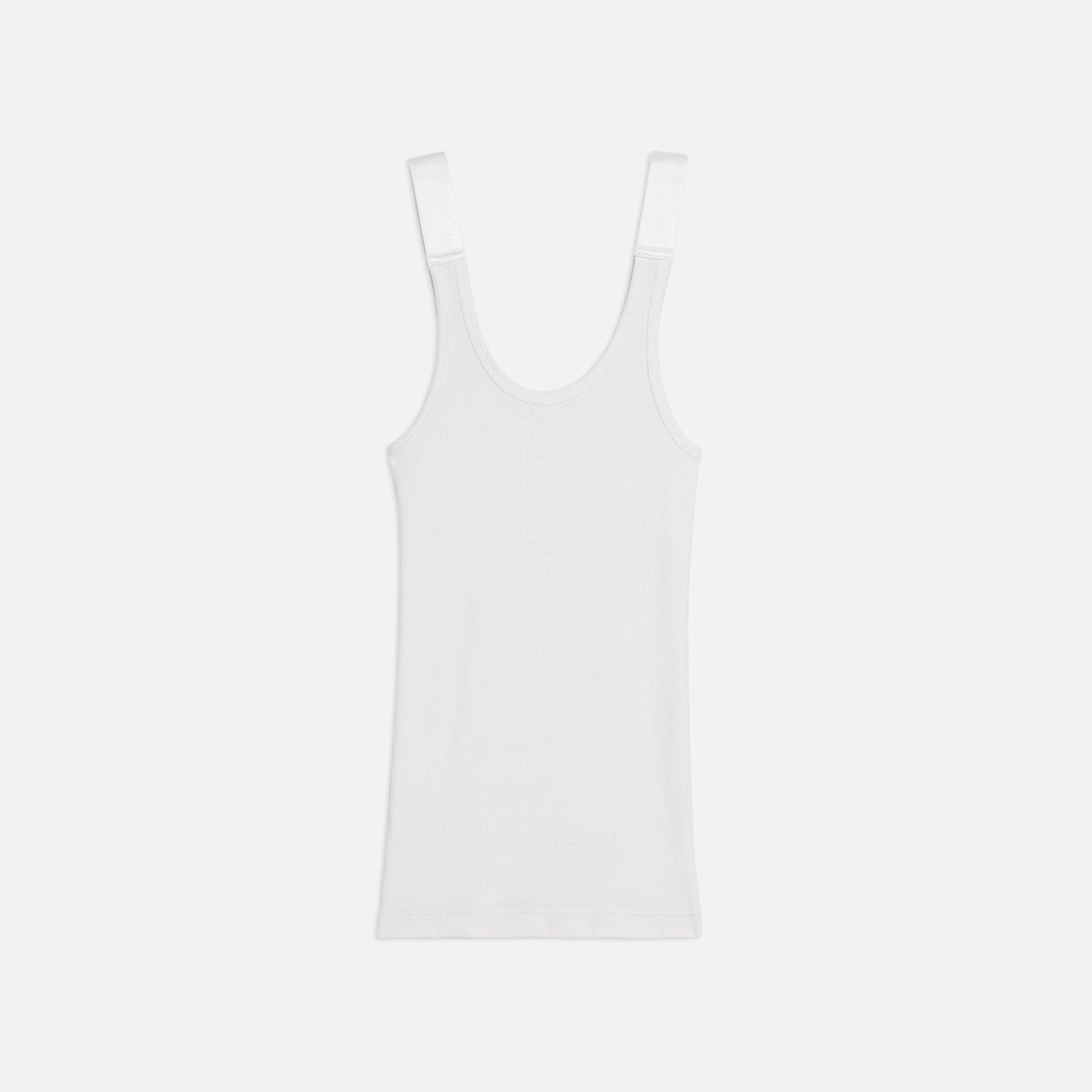 Stretch Peruvian modal tank in a supersoft ultra-fine rib with signature seatbelt strap detail at shoulder.