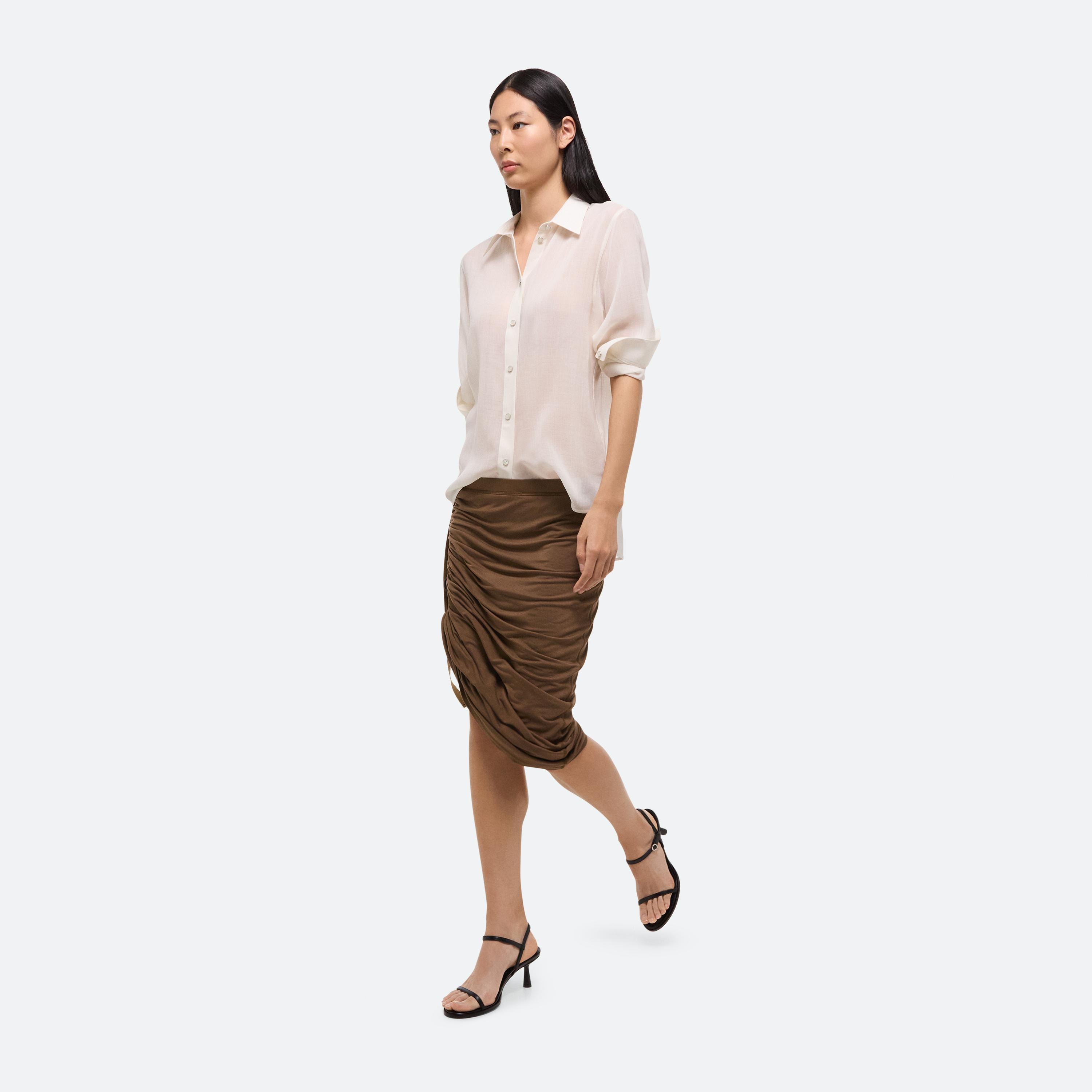 Classic shirt in lightweight wool chiffon. Matches the Sheer Double-Pleated Pants.
