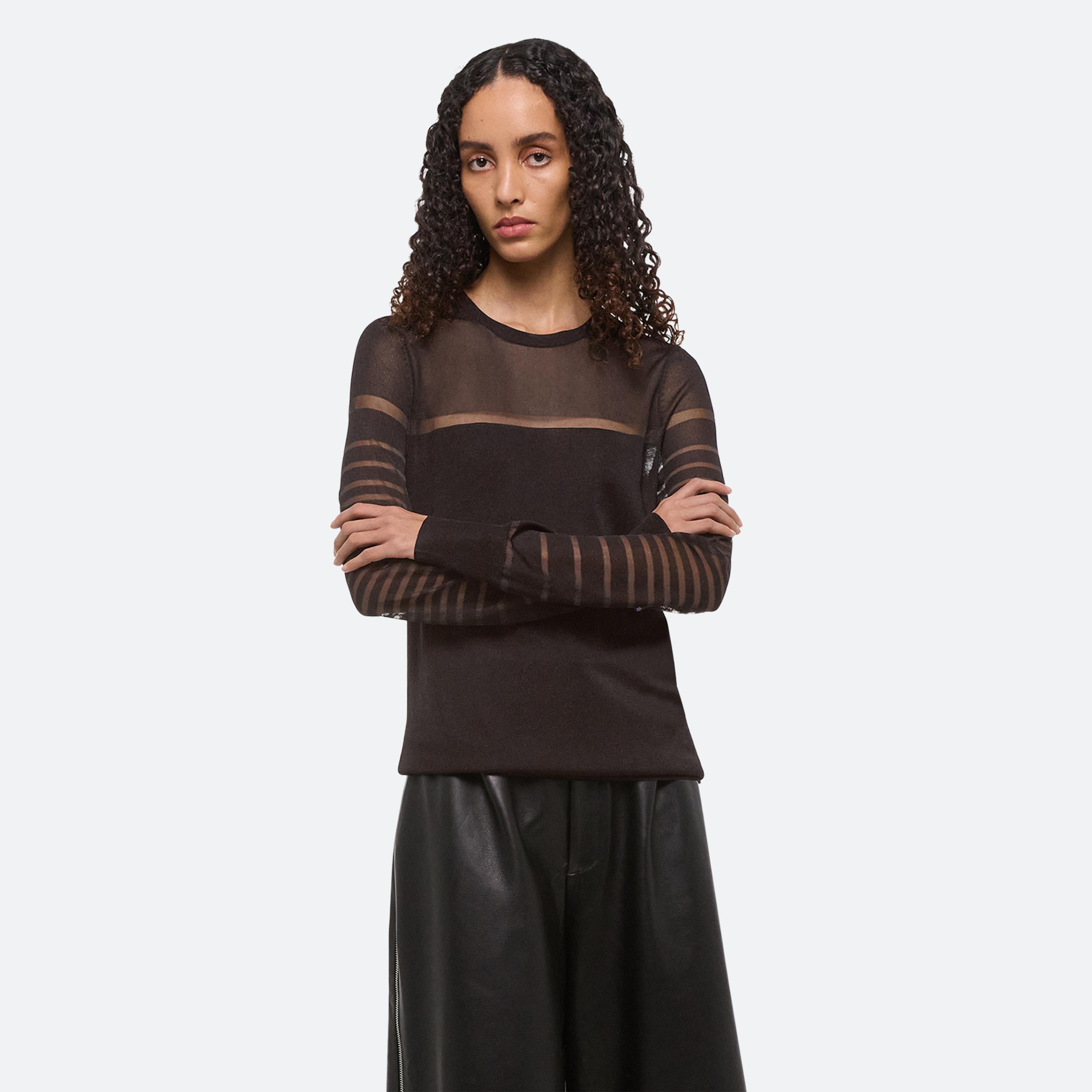 Crewneck tee with sheer stripe detail in a lightweight viscose knit.