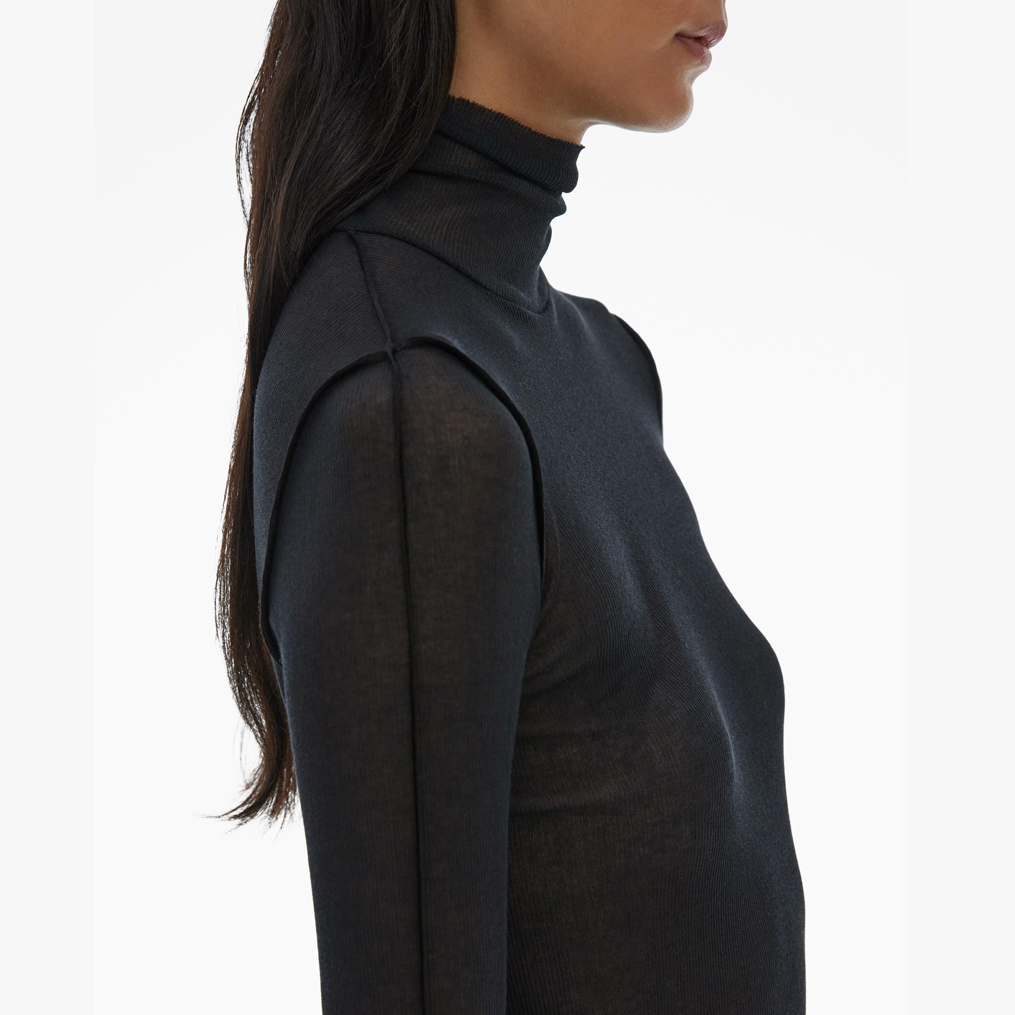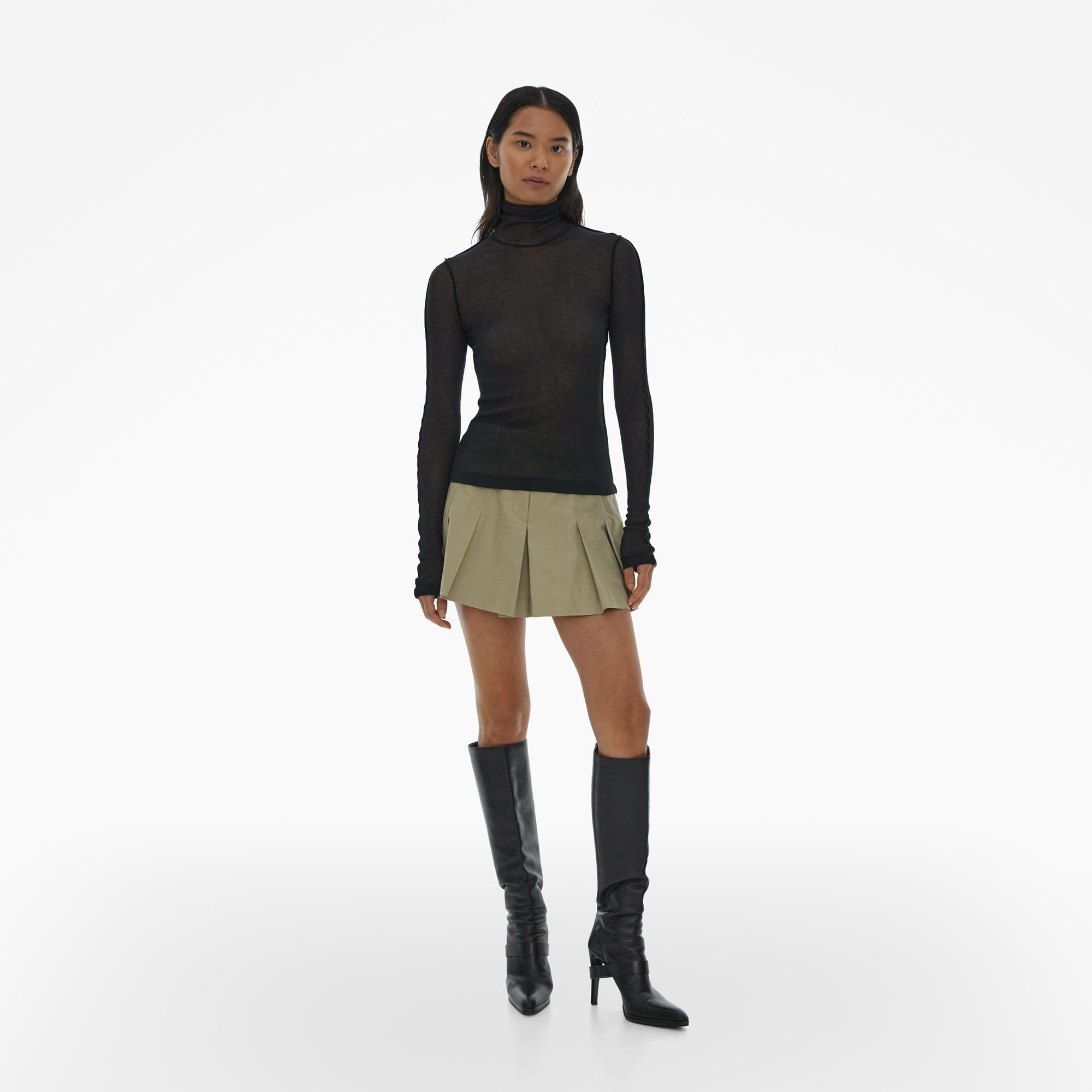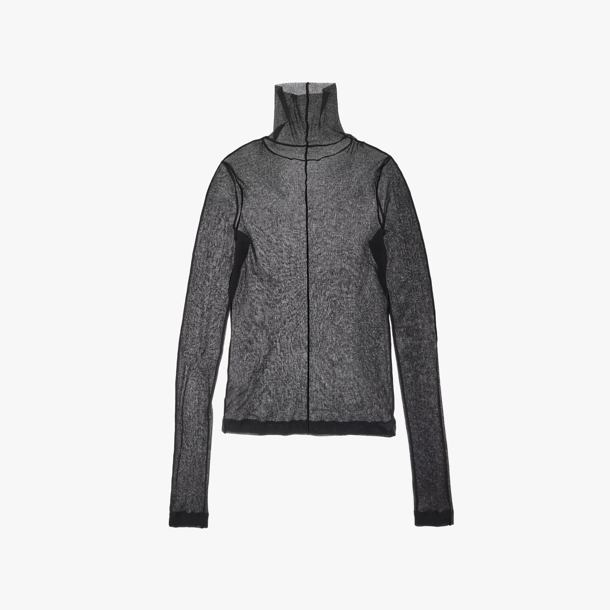 The Helmut Lang Turtleneck is a slim-fitting style in semi-sheer ribbed cotton blend with long sleeves.