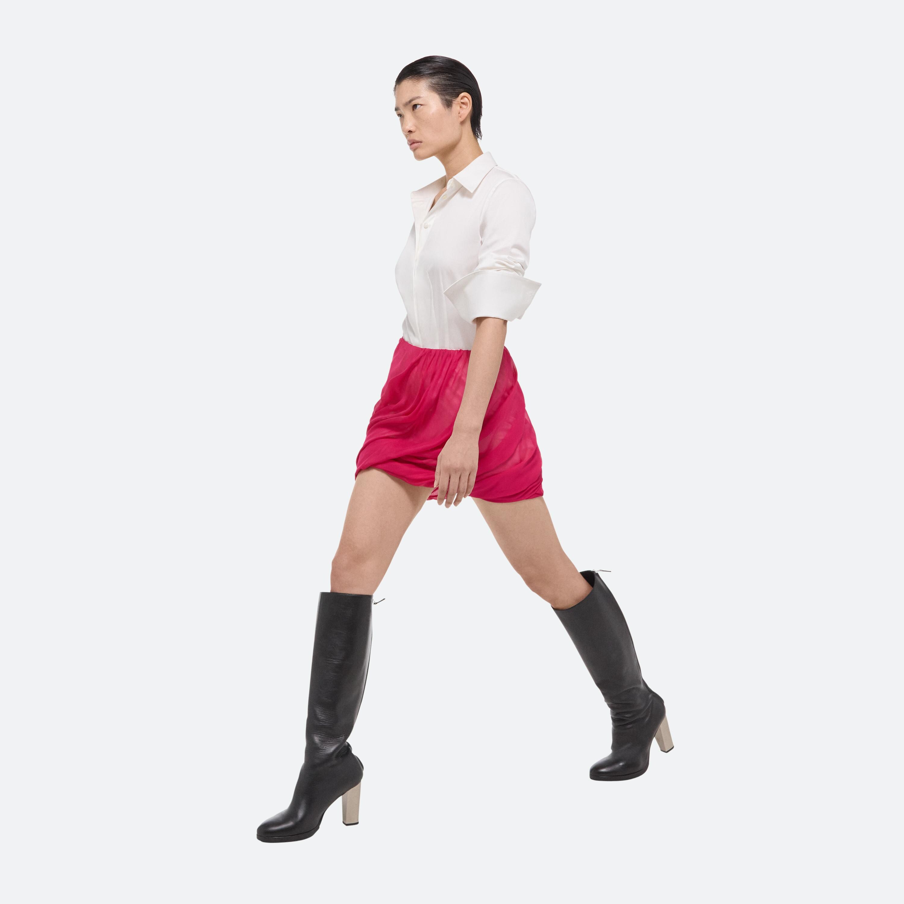 Bubble mini skirt in translucent silk. Voluminous cut with a high-waist that flows into a bubble hem. Lined in cotton jersey.